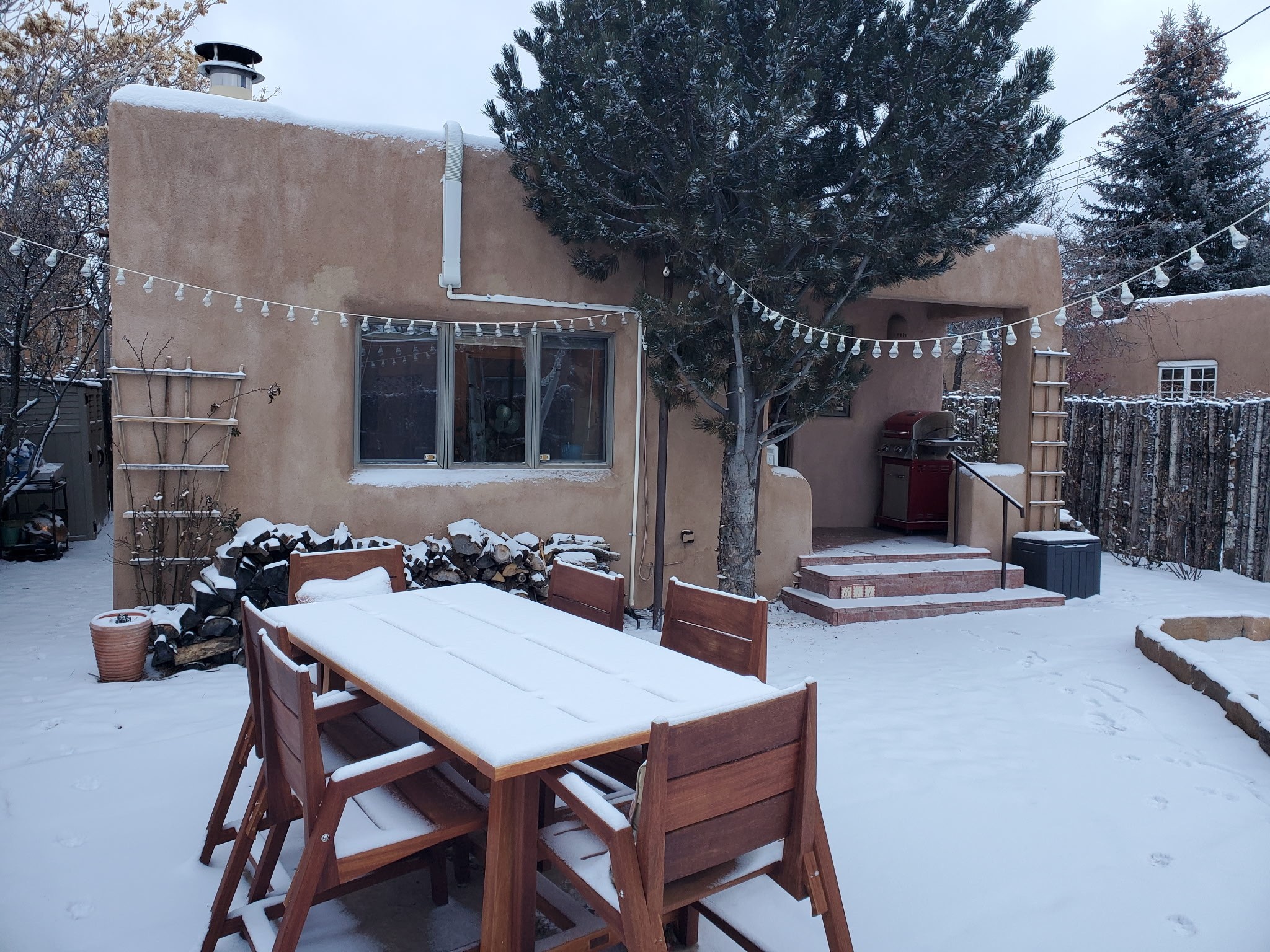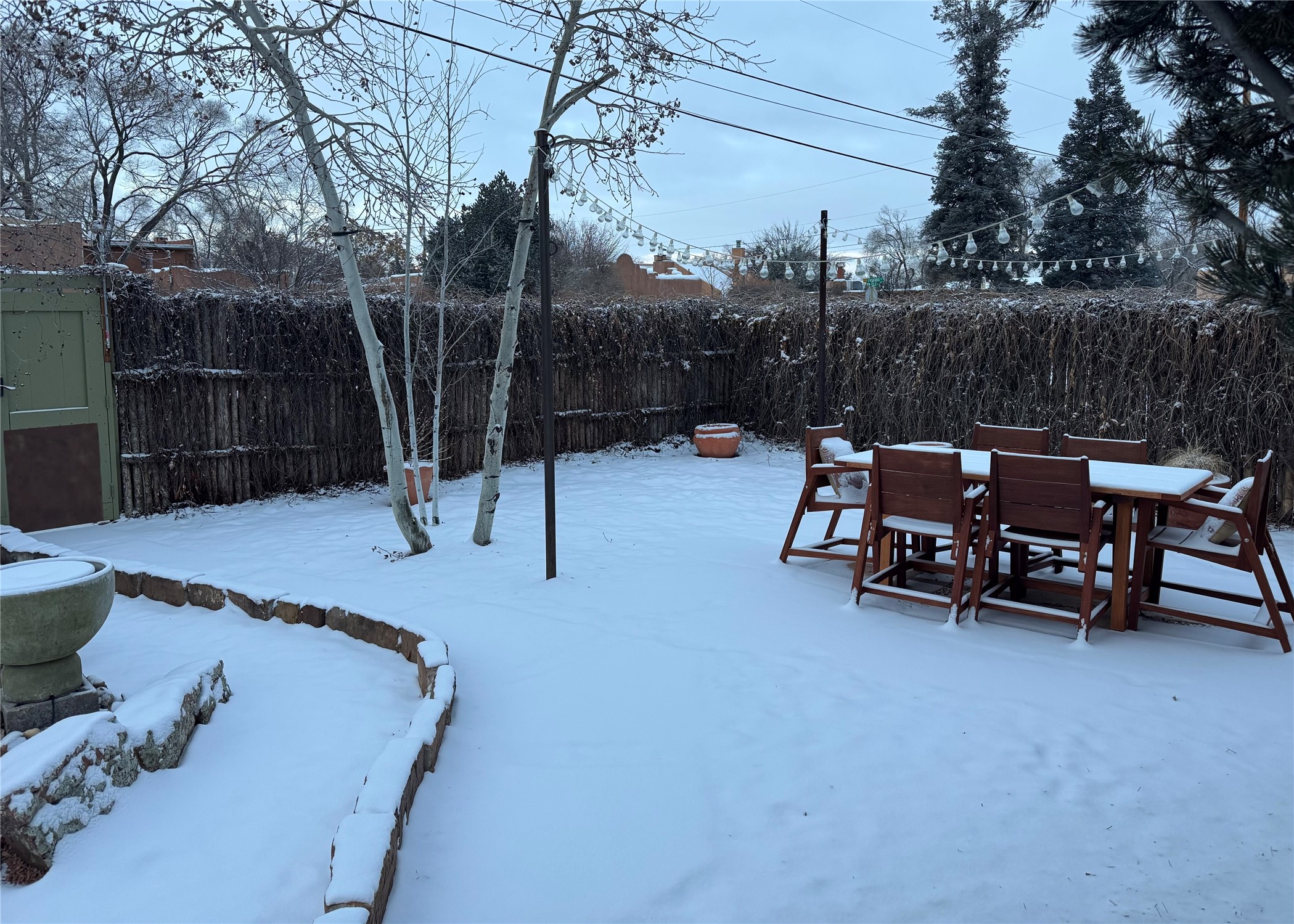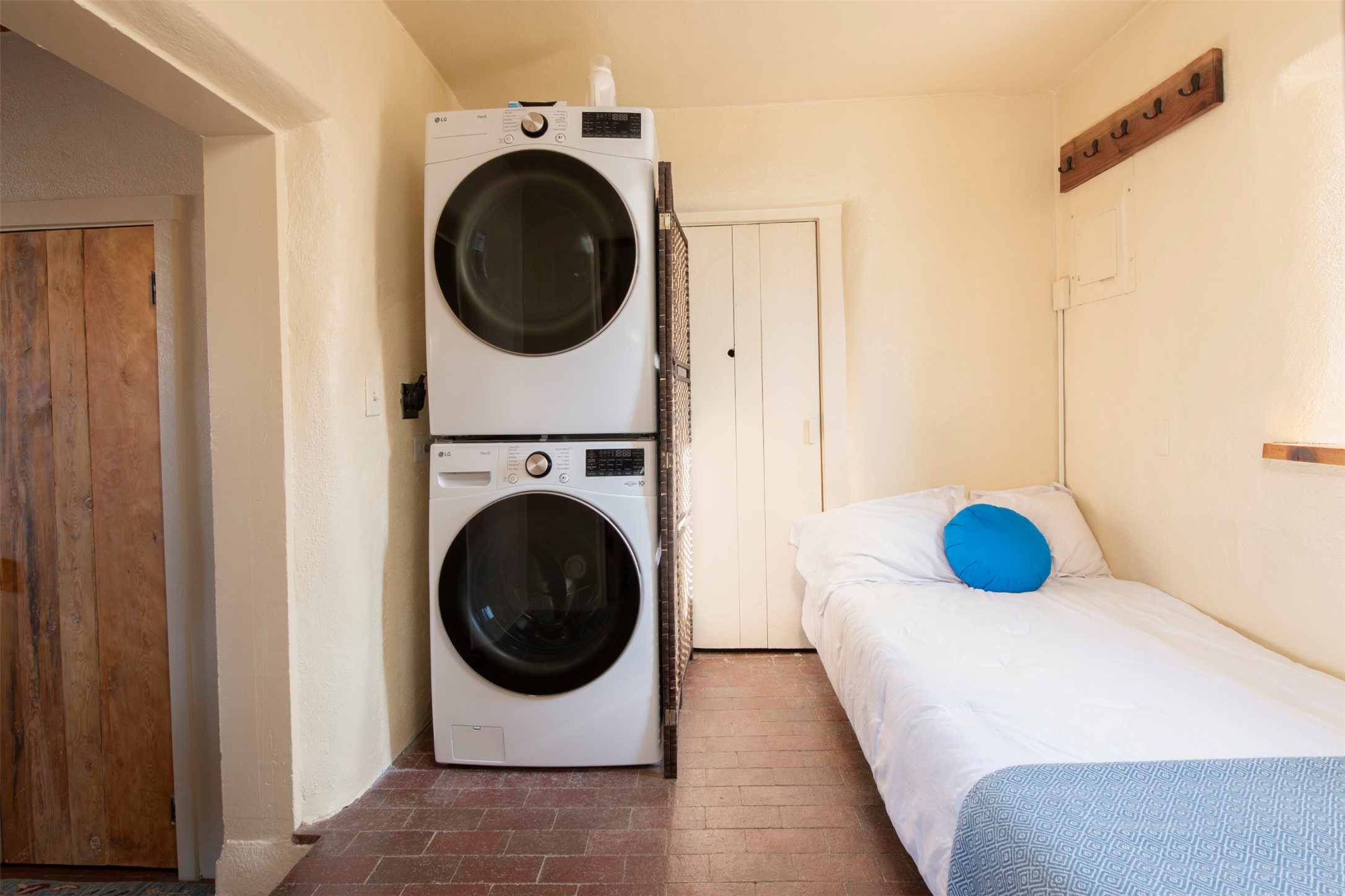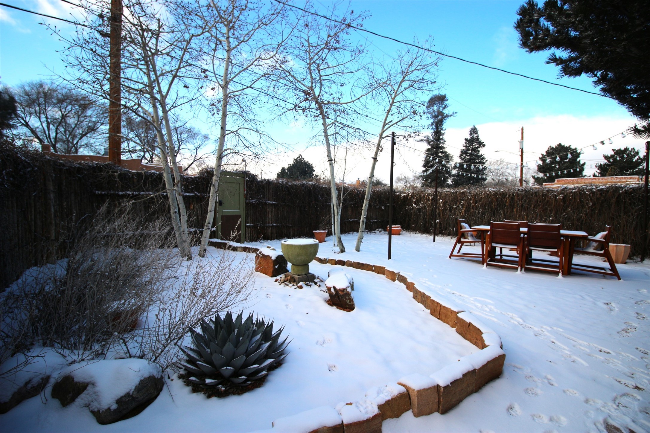 Discover your own private sanctuary in the heart of the Westside Guadalupe Historic District. Tucked behind 6-foot, Virginia creeper-covered coyote fencing, this Pueblo-style condo is a rare historic gem. Step through the stone-walled entrance into a serene garden paradise filled with Aspens, Roses, and Russian Sage, perfectly set for alfresco dining. Inside, the home radiates Southwest warmth with authentic brick floors, rough-cut pine ceilings, and traditional vigas. The light-filled living area features a classic Kiva fireplace accented with Mexican tile and a bright skylight. A thoughtful floor plan includes a cozy bedroom with a wall-to-wall closet and a versatile den/workspace set within thick, traditional adobe walls. With modern upgrades, including new appliances that are all less than a year old. The location is spectacular, just a short stroll to the Santa Fe Plaza, galleries, dining, and the Railyard. This is the ultimate cozy home or perfect little "lock-and-leave" retreat.......Low COA fees were $175 last year......*New Appliances Include LG washer/dryer, Rheem tankless water heater, GE fridge, Cosmo gas range with oven, Broan kitchen hood, Moen garbage disposal, CuZn under sink water filter, Kohler kitchen faucet, Toshiba microwave, Carrier performance series mini-split AC and heating system, Pottery Barn light fixtures in bedroom and the den. Please take our virtual tour.