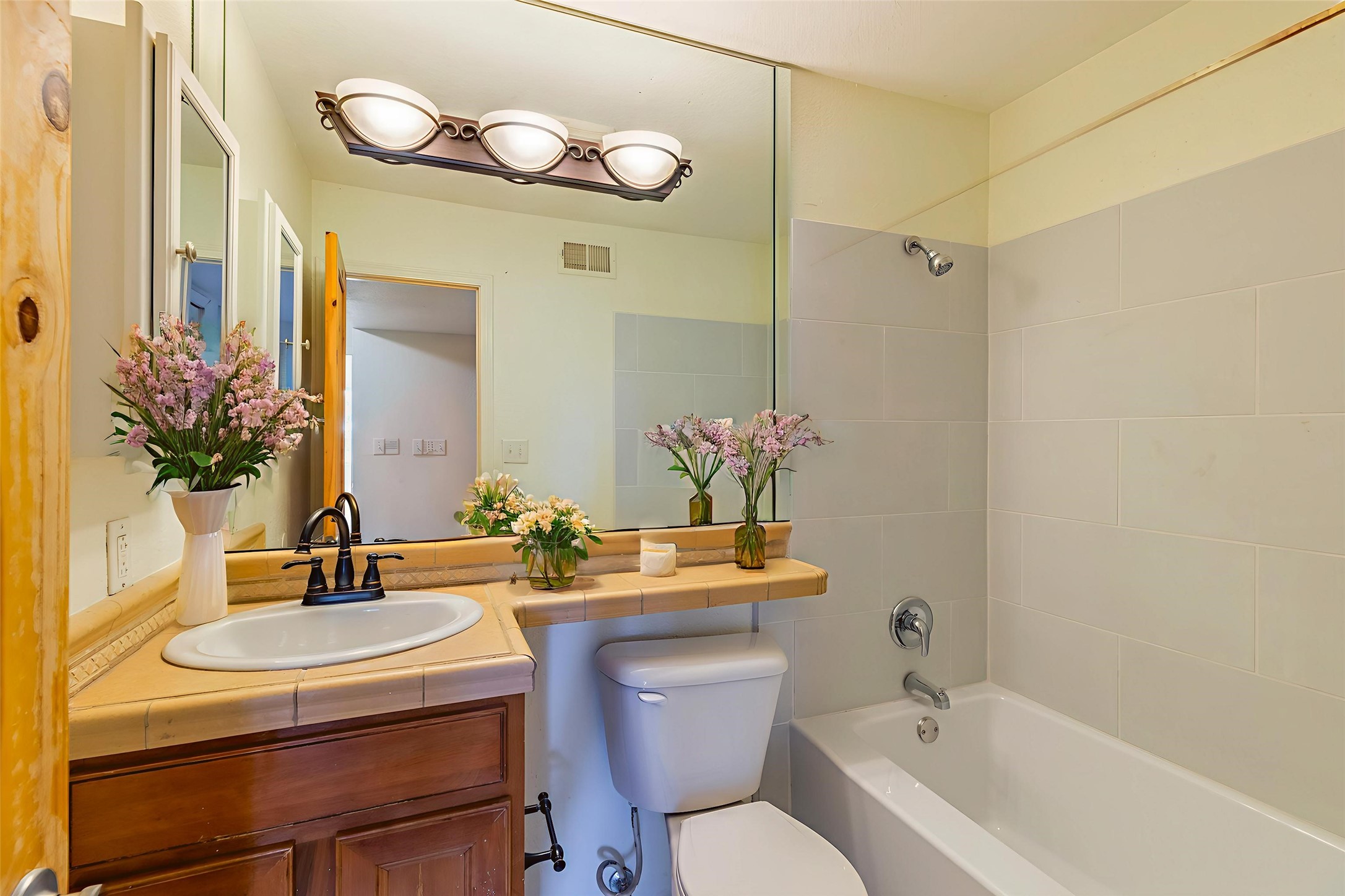 THINK SMALLER. LIVE LARGER. NEXT IMAGINE A POOL! Sometimes the smartest home in Santa Fe isn't the biggest--it's the one that gives you back your time and money and your breathing room and a community pool to enjoy. Keep reading for details! This CORNER one-bedroom, one-bath, two-level condo in gated Dos Santos quietly rewrites what "AFFORDABLE" with benefits means, including Seller credit for 6 months condo fees! Perched on a gentle hilltop with no one above you, it feels private, light-filled, and free. The open living area flows to a sun-splashed patio, while the upstairs bedroom offers true separation for rest and creativity. A REMODELED bath with a new cast iron tub brings a fresh, spa-like calm to everyday life. Ask for list of improvements! Here, HOME OWNERSHIP is designed for ease. The reasonable COA fee covers nearly everything--roof, stucco, windows, cooling systems, water, and full exterior care--so your weekends belong to you. The community adds its own rhythm: heated POOL in summer, year-round spa tub, FITNESS center, outdoor fire pits, and a DOG PARK for your four-legged companion. And now, freedom runs deeper in a home giving you more space in your budget to explore, travel, or simply exhale. In a market where rates continue to make new headlines as rates trend below 6%, this offer asking price makes a difference you'll FEEL EVERY MONTH! LOCATION completes the picture: minutes to Christus St. Vincent Hospital, Trader Joe's, Whole Foods, the Plaza, and the Railyard Arts District, with easy access to the Zia Railrunner Station Albuquerque commuters or the highway for Los Alamos.DOS SANTOS isn't a compromise; IT'S A CHOICE for those who value time, community connection, amenities, privacy, low maintenance and COA fee saving you the cost of large size and expense of maintenance. In Santa Fe, less can truly live larger--and now, it can cost less too. Yes, asking is 260,000! Images include virtual staging. Call to see your next home!