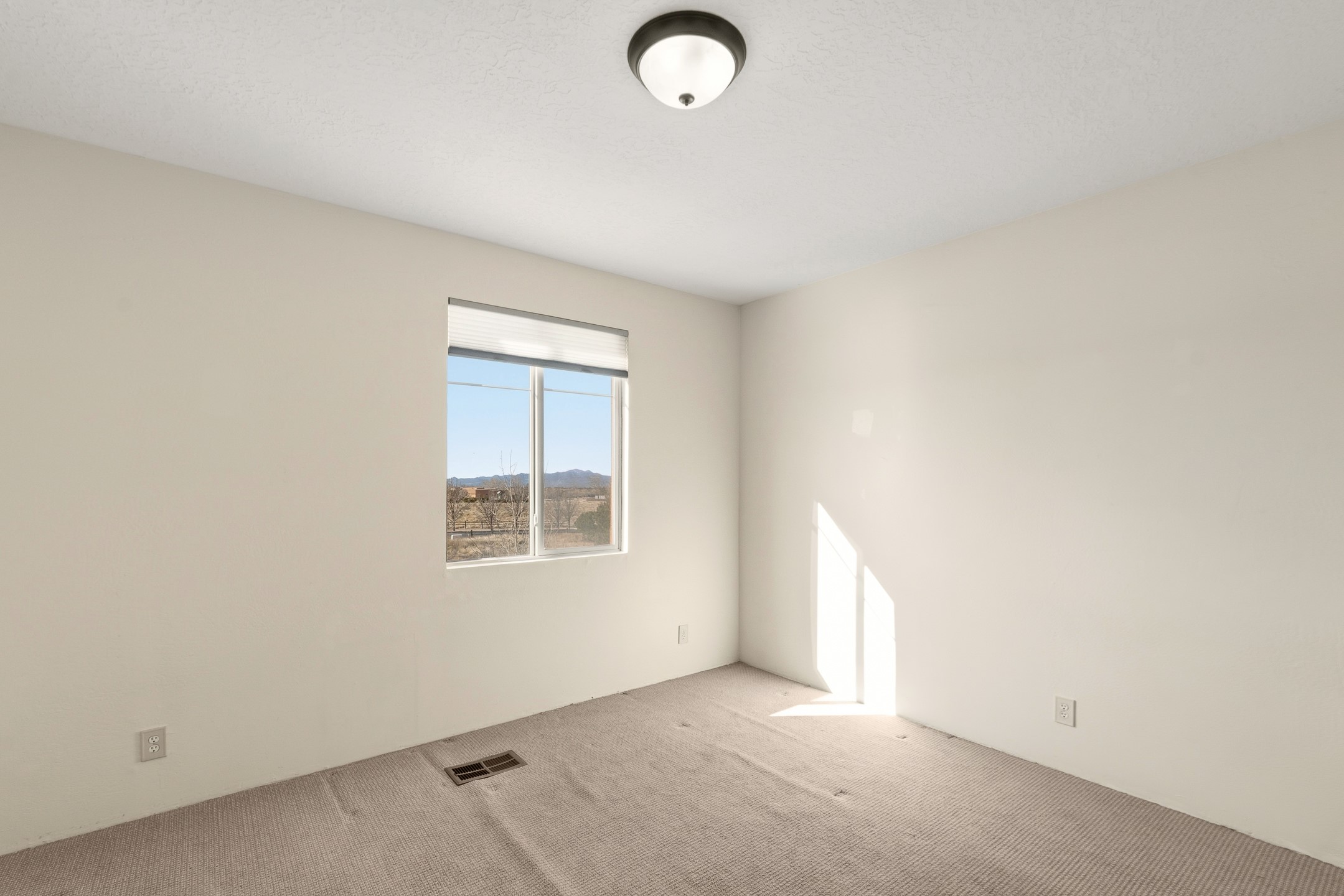 Comfortable, easy living in Rancho Viejo. This 1,380 sq ft two-story townhome offers a thoughtful layout with two private ensuite bedrooms upstairs. The northern facing bedroom has beautiful mountain views. The living area flows easily for everyday living, with a well-appointed kitchen, convenient downstairs half bath and a dedicated laundry room. The full two-car garage provides excellent storage and functionality. The Seller is providing a $10,000 credit toward new carpet and paint gives the next owner a great opportunity to update the home to their own taste.Rancho Viejo is a well-loved community known for its walking trails, open spaces, and easy access to Santa Fe amenities, this townhome offers a great combination of convenience, flexibility, and location.