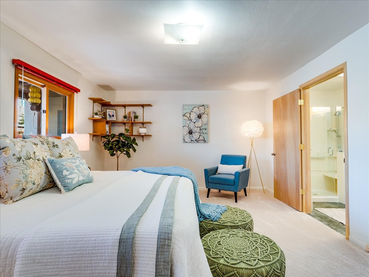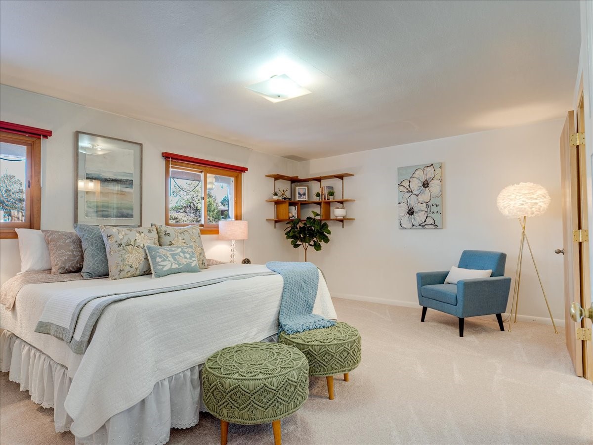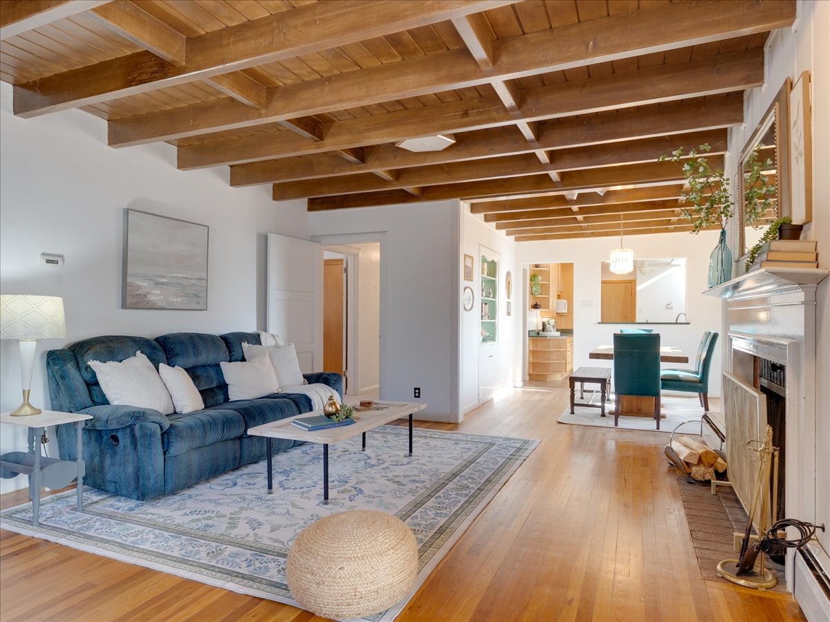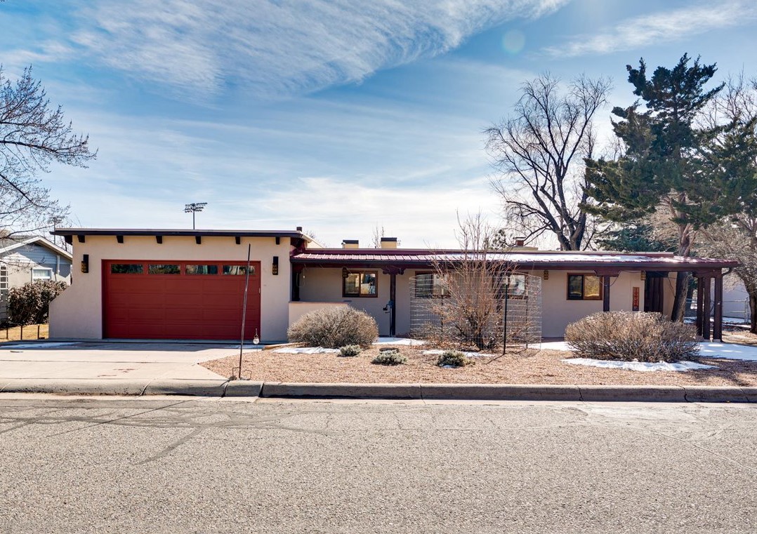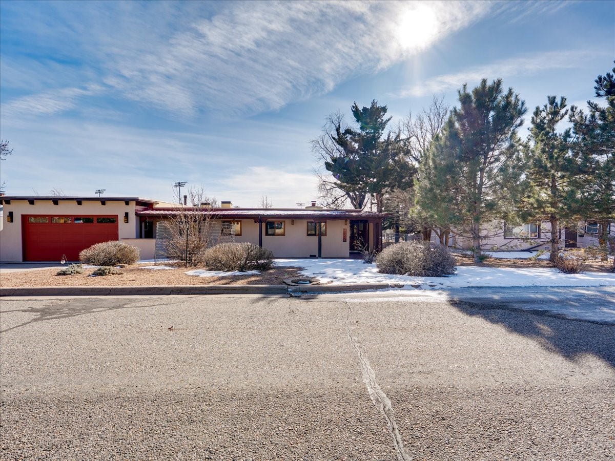 This charming Western Area home offers convenient access to bus stops, downtown, and the high school. While it retains the classic charm of Western Area homes, it has been thoughtfully updated to meet modern living needs. The original floor plan featured three bedrooms and one bathroom, but it has been reconfigured to create two spacious bedrooms, including a generous primary suite with a luxurious, updated bathroom. This area has new carpeting. In 2012, the kitchen underwent a major remodel and is truly a chef's delight, featuring an island with an induction cooktop, double ovens, and cabinetry equipped with pull-out organization drawers. Two built-in pantries provide exceptional storage, while two large skylights fill the space with natural light. The kitchen also offers direct access to the beautiful backyard, making it ideal for both everyday living and entertaining. The Zia Addition on the south side of the home added two additional bedrooms and a bathroom, providing flexible space for guests, family, or a home office. The backyard backs to Sullivan Field, allowing you to enjoy Friday Night Lights football, soccer games, or band performances from the comfort of your own yard. This will be great for entertaining friends and family. The landscaping has been professionally maintained by Los Alamos Landscaping for several years. The home features multiple LG mini-split units providing both air conditioning and heat with independent temperature controls for each room. The oversized garage includes an outlet for electric vehicle charging and features a full wall of storage cabinets for excellent organization. A French drain in the driveway outside the garage captures runoff from snow and rain, adding both function and peace of mind. This well-maintained home combines location, charm, and modern upgrades in a truly special setting. Schedule a private showing today!