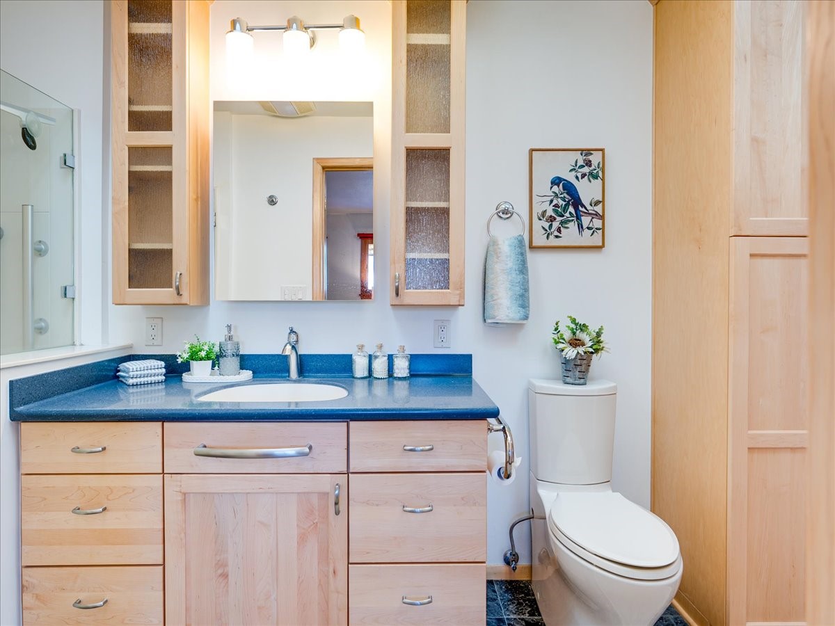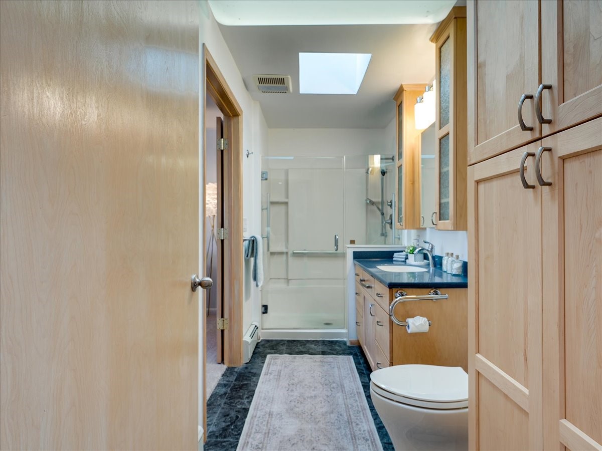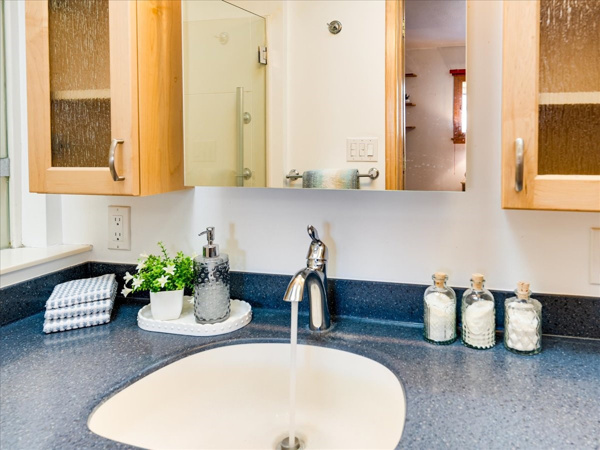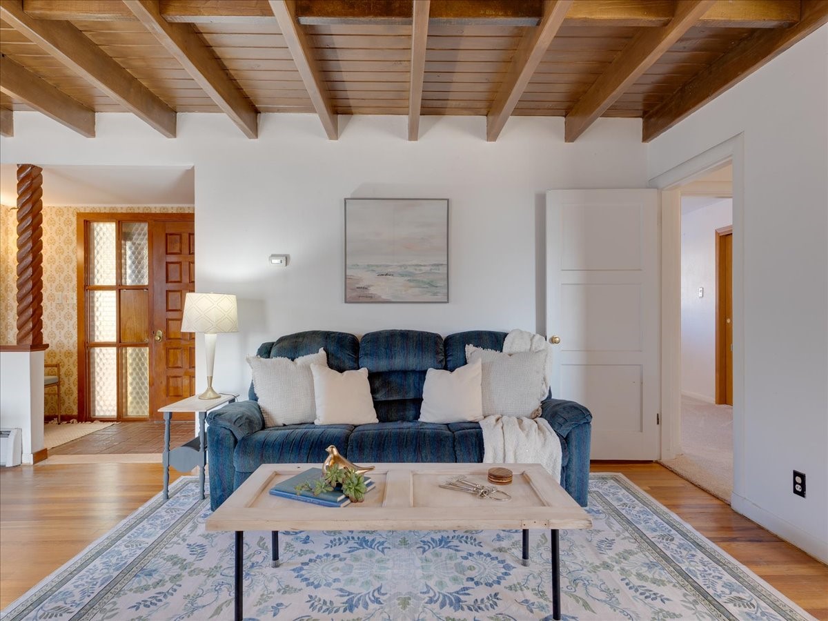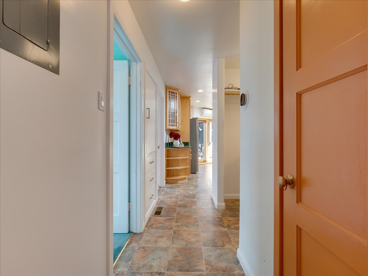 This charming Western Area home offers convenient access to bus stops, downtown, and the high school. While it retains the classic charm of Western Area homes, it has been thoughtfully updated to meet modern living needs. The original floor plan featured three bedrooms and one bathroom, but it has been reconfigured to create two spacious bedrooms, including a generous primary suite with a luxurious, updated bathroom. This area has new carpeting. In 2012, the kitchen underwent a major remodel and is truly a chef's delight, featuring an island with an induction cooktop, double ovens, and cabinetry equipped with pull-out organization drawers. Two built-in pantries provide exceptional storage, while two large skylights fill the space with natural light. The kitchen also offers direct access to the beautiful backyard, making it ideal for both everyday living and entertaining. The Zia Addition on the south side of the home added two additional bedrooms and a bathroom, providing flexible space for guests, family, or a home office. The backyard backs to Sullivan Field, allowing you to enjoy Friday Night Lights football, soccer games, or band performances from the comfort of your own yard. This will be great for entertaining friends and family. The landscaping has been professionally maintained by Los Alamos Landscaping for several years. The home features multiple LG mini-split units providing both air conditioning and heat with independent temperature controls for each room. The oversized garage includes an outlet for electric vehicle charging and features a full wall of storage cabinets for excellent organization. A French drain in the driveway outside the garage captures runoff from snow and rain, adding both function and peace of mind. This well-maintained home combines location, charm, and modern upgrades in a truly special setting. Schedule a private showing today!