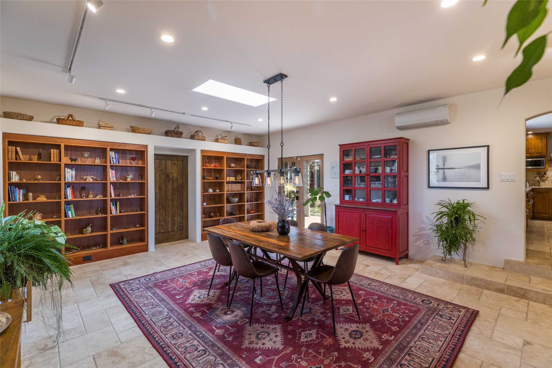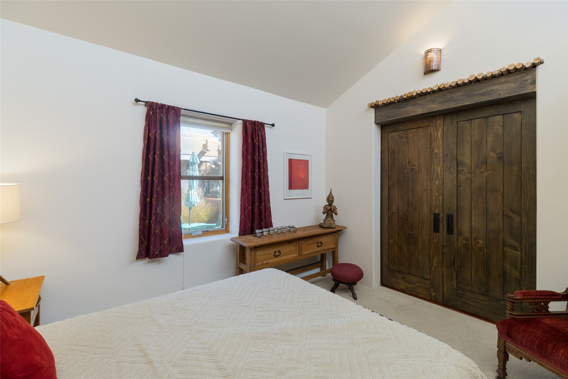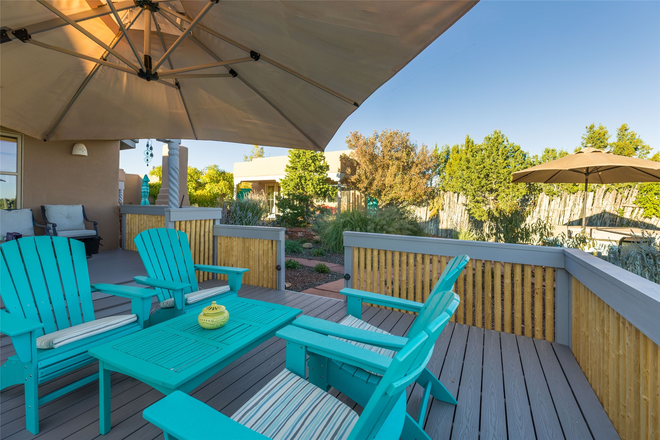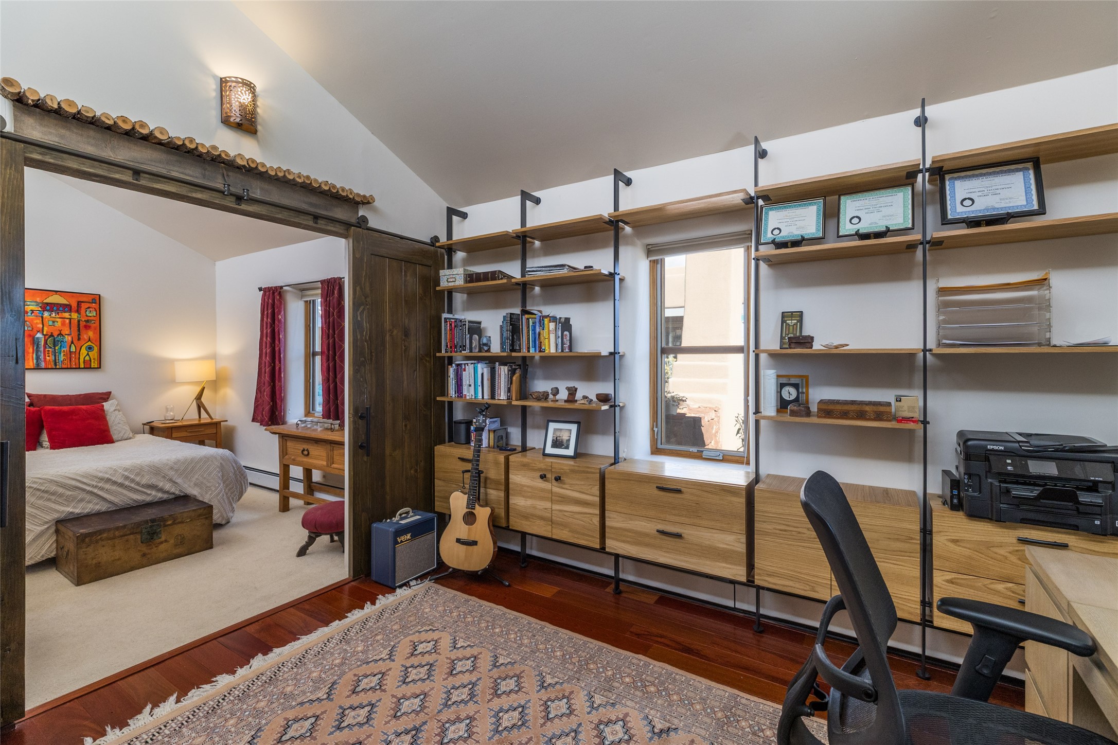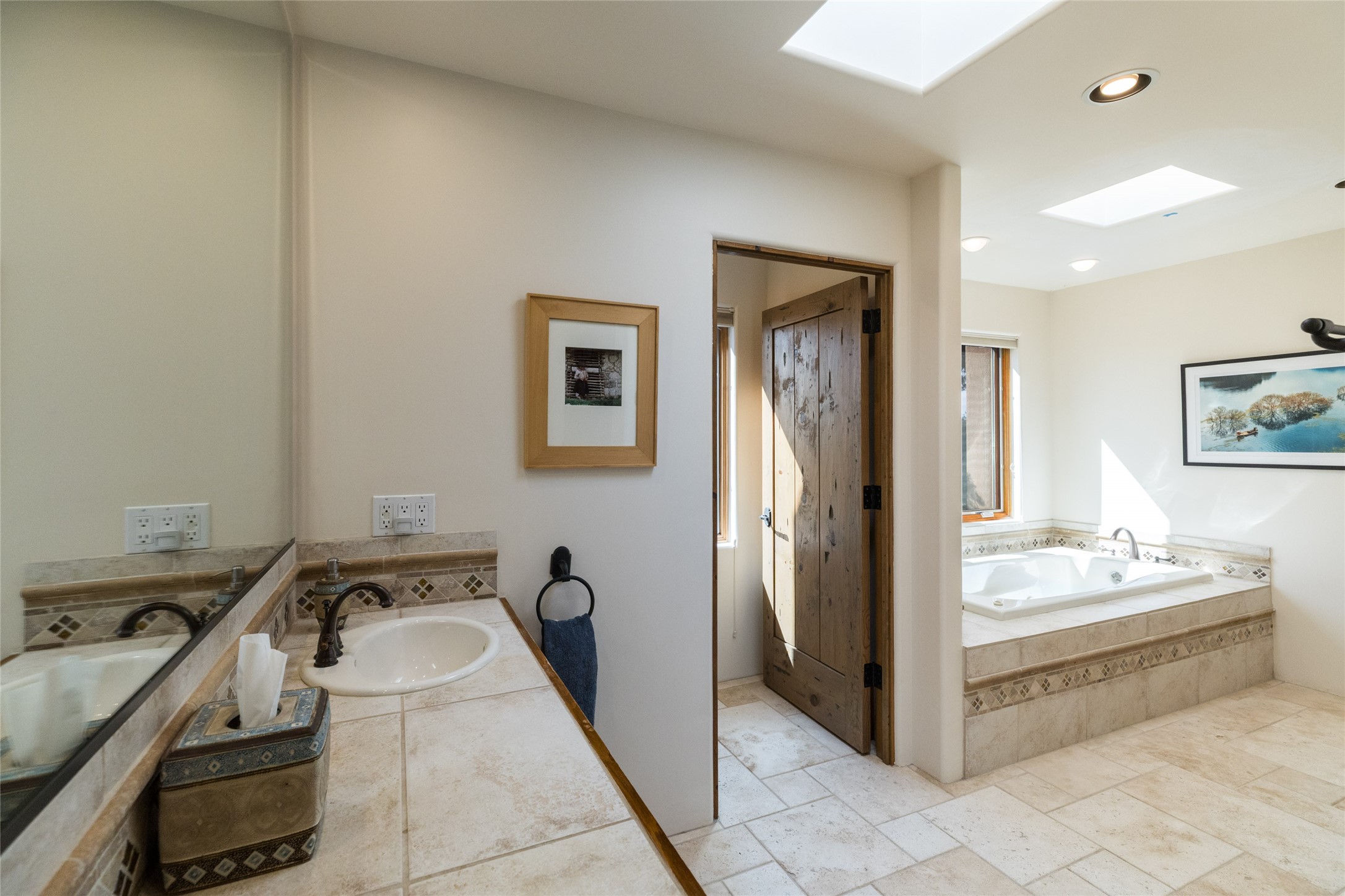 This beautiful estate has 3 bedrooms, 2 baths, dedicated office space, views from nearly every room, with two oversized two-car garages (one detached perfect for a workshop), plus a standalone 600 sf studio/casita with an extra 1 bedroom, 1 bath (previously used as an art studio). True chef's kitchen with Wolf appliances and sub-zero refrigerator, double ovens, granite counters, large island with bar seating.Just off the kitchen is a large bonus room with beautiful built-ins, currently used as a formal dining area. The private suite is entered through a sitting room/office with viga ceilings, kiva fireplace and door to viewing deck. Spa-like primary bath with extra large shower, separate jetted tub, double sinks, and walk in closet.There are a total of 6 fireplaces including one in the entry hall which could also be a formal dining room.Light-filled living room featuring exposed vigas and corbels, kiva fireplace, custom wood built-in shelving and cabinetry, and expansive windows capturing beautiful views. Owned solar system helps reduce utility costs, allowing you to enjoy the space of this home without the typical energy expense. Other amenities include Radiant floor heating, new mini splits, and a greenhouse.