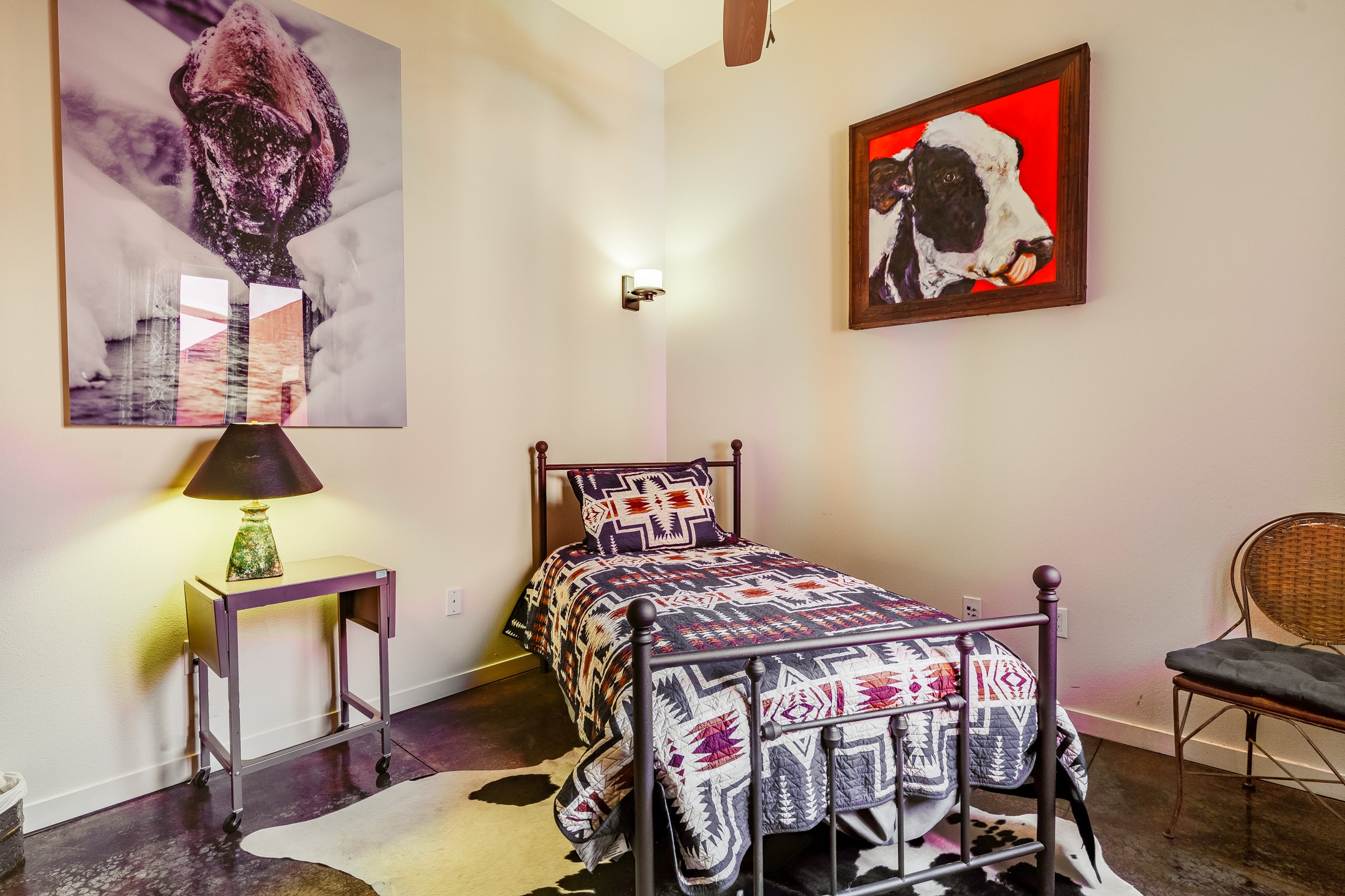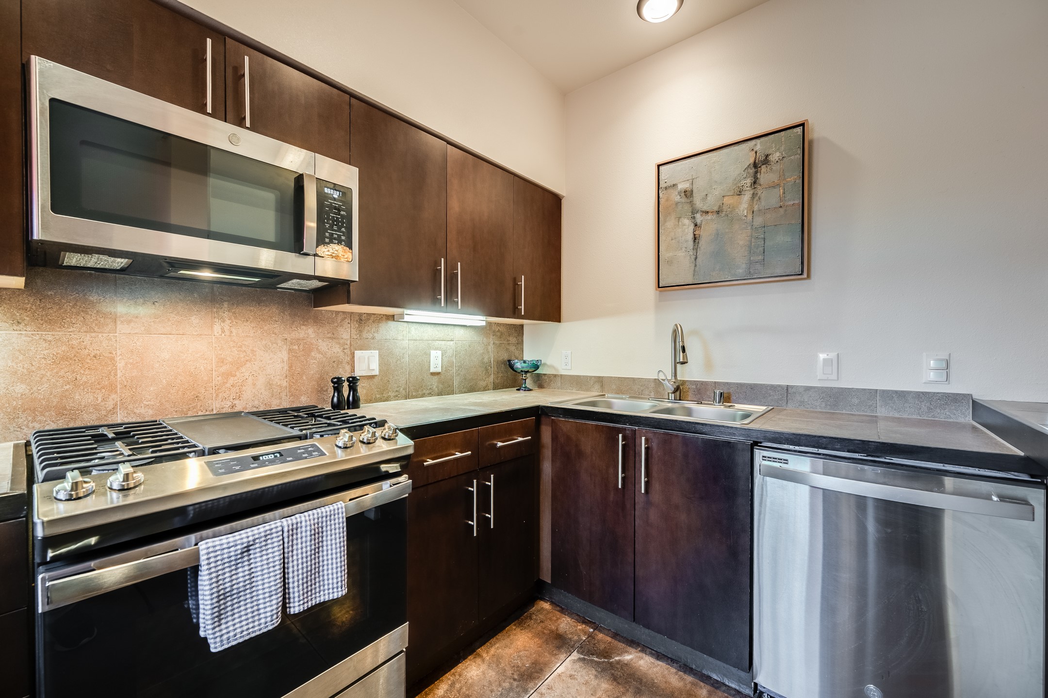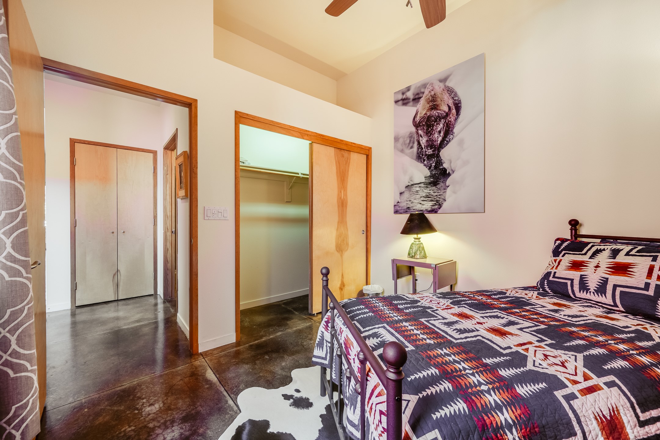 Welcome to Zocalo, a Santa Fe Condominium development offering unmatched convenience and amenities including an outdoor pool and spa, two gyms, a barbecue area and clubhouse. This ground-level unit is a Plaza floor plan designed by Ricardo Legorreta and received multiple awards by the Haciendas Parade of Homes, including an award for best use of space. Featuring easy to care stained concrete flooring throughout, stainless steel appliances, Pella windows, and a well designed, efficient floor plan. The condo has a wonderful orientation with the living room directly accessing the covered north-facing patio. Other desirable features include refrigerated A/C, gas fireplace, and a one-car garage. All of this within a few short minutes to the Plaza, Opera and hiking trails.