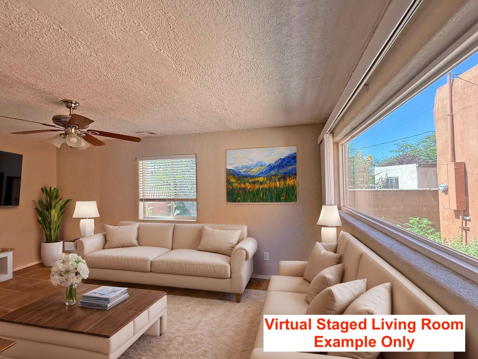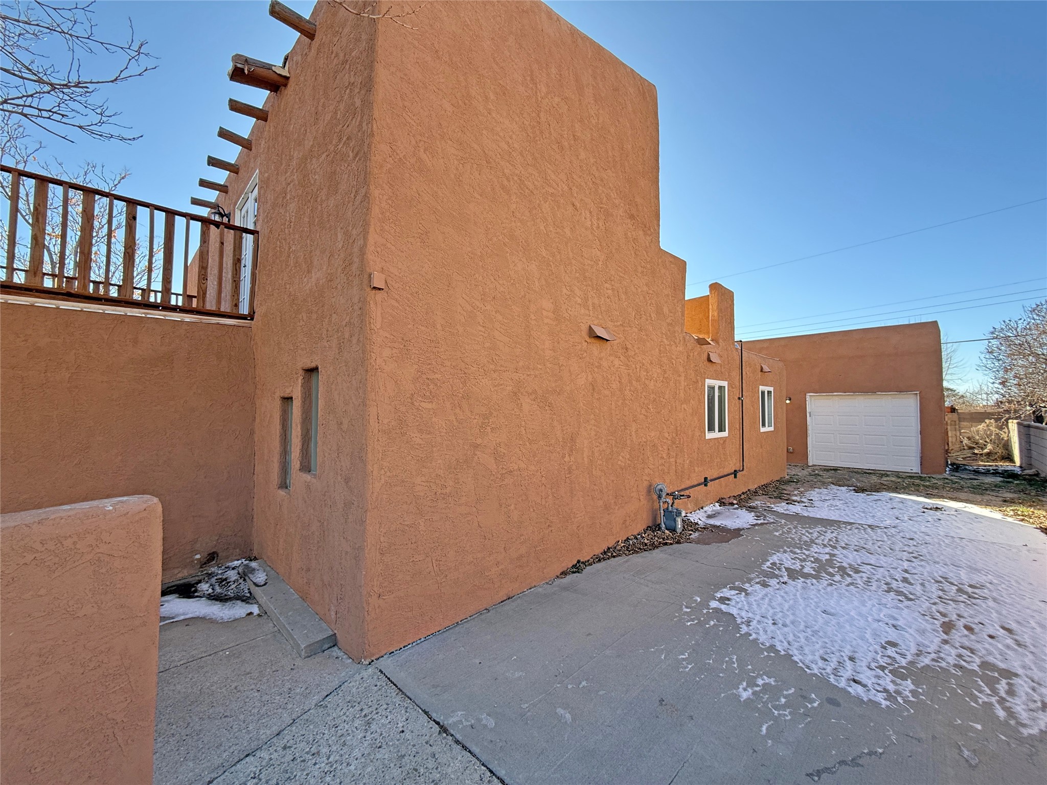 Authentic Pueblo-style home in Santa Fe showcasing traditional Southwestern design, including wood vigas and a classic kiva fireplace. This two-story residence offers 3 bedrooms and 2 baths with warmAuthentic Pueblo-style home in Santa Fe showcasing traditional Southwestern design, including wood vigas and a classic kiva fireplace. This two-story residence offers 3 bedrooms and 2 baths with warm architectural character and functional living spaces. A large garage/workshop provides excellent storage or workspace, complemented by ample street parking for guests. Owner-occupant buyers only for the first 20 days of marketing. Buyer must sign an owner-occupancy certification.