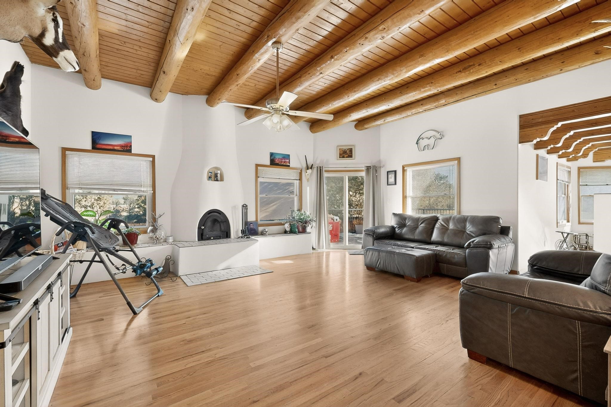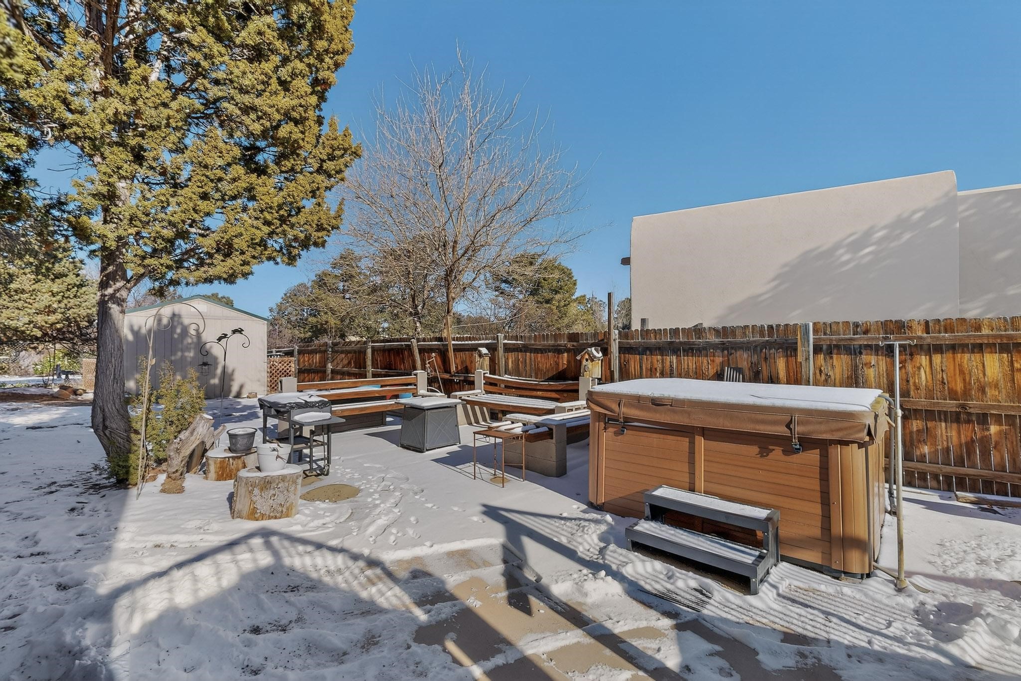 Wonderful, Pueblo Style home, located in Via Cab, on a large corner lot! 3 bedrooms, 1 3/4 baths, about 2200 square feet on .32+/- acres with plenty of room for parking. Home includes beautiful vigas and beams, wood, laminate and tile floors, kiva fireplace (with insert), 3 mini splits, good sized bedrooms, breakfast nook and formal dining room, and a 2-car garage. Entertain your guests on your new deck and hot tub, and store all your stuff in your 10x20 storage shed. Did I mention the expra space for parking? Perfect for your extra vehicles, toys, work trucks, RV or whatever you need it for. Schedule your showing today - you won't be disappointed.