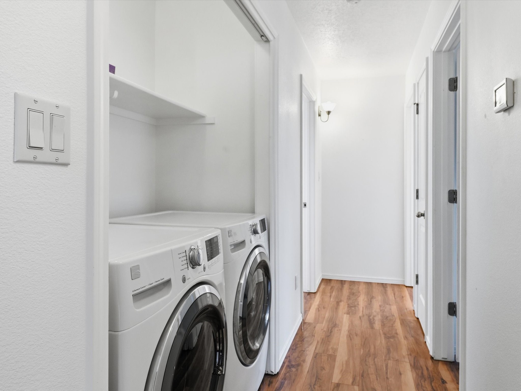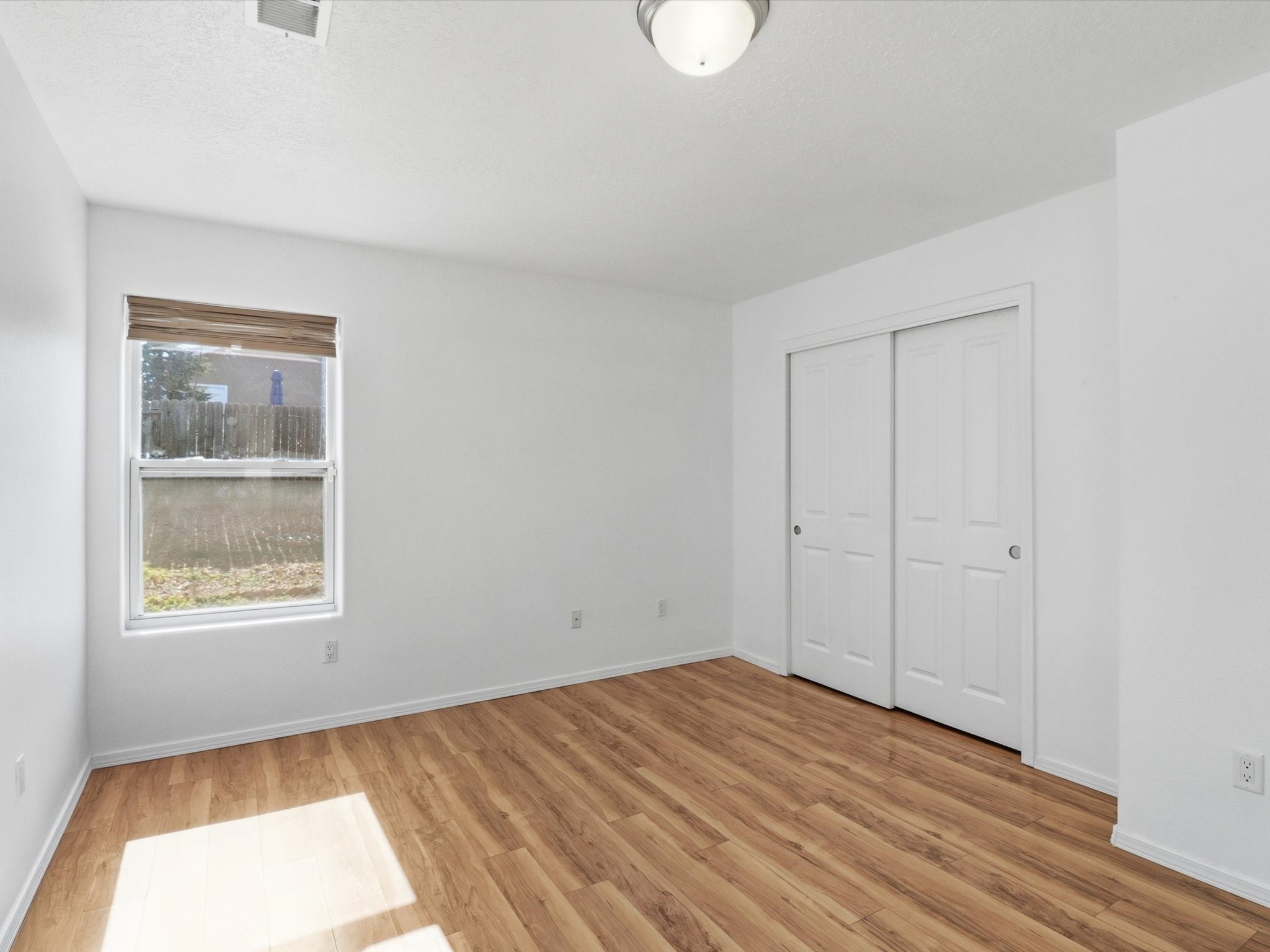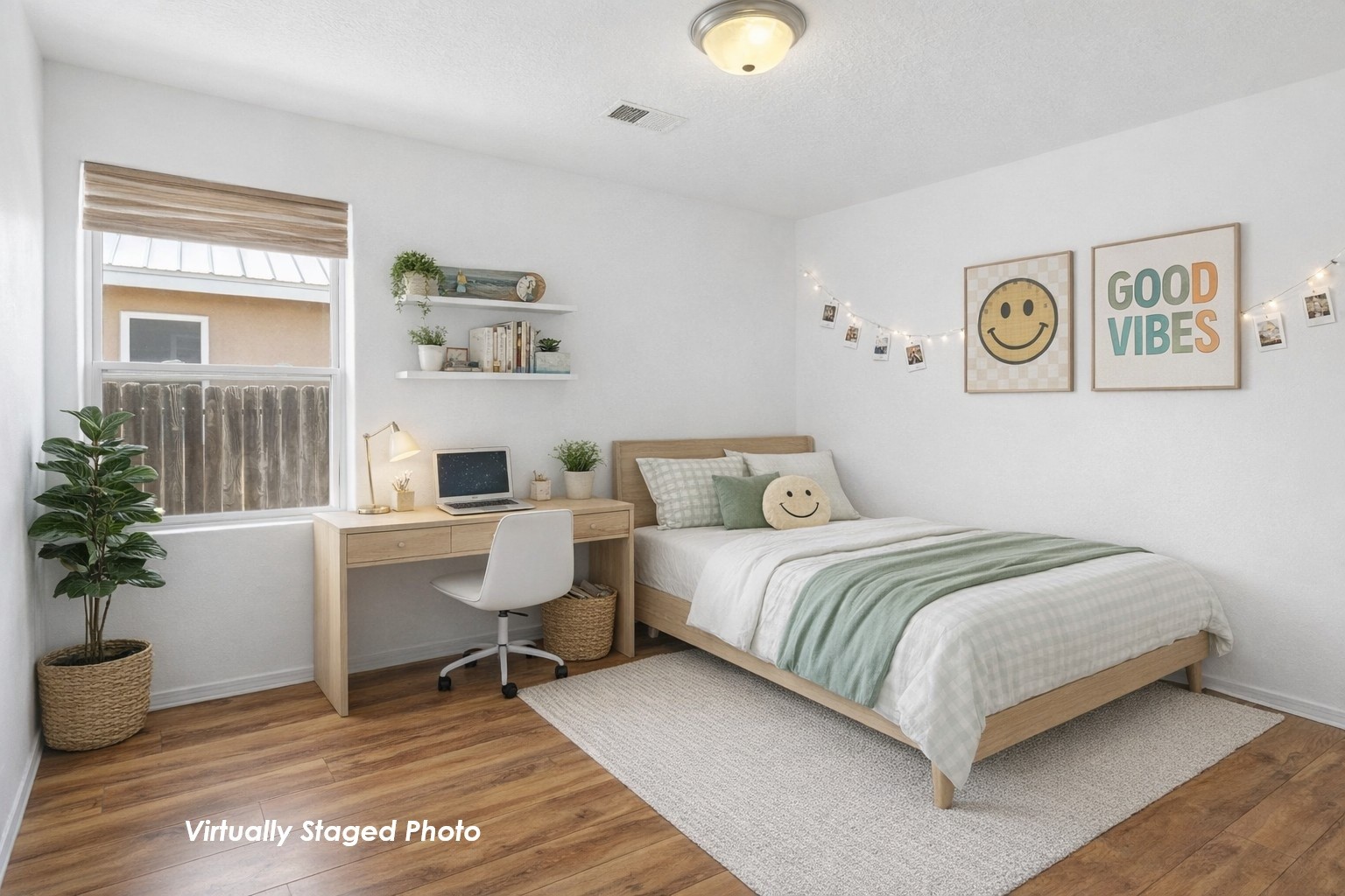 Come view this cozy three-bedroom, two-bathroom, two-car garage home! Nestled in a centrally located neighborhood, this home offers convenient access to main roads, shopping, and nearby bike trails.Step inside to a comfortable, functional layout that balances privacy and openness. The open-concept living and dining area flows seamlessly into the kitchen, which is equipped with appliances for daily use and offers direct access to the garage--perfect for convenience. The primary bedroom features a private ensuite, while the second bedroom is thoughtfully positioned across the hall for privacy. A hallway connects the bedrooms and bathroom, with easy access to the laundry area.Natural light fills the home through large windows, creating a bright, airy atmosphere. The dining area opens directly to the patio, making indoor-outdoor living effortless. Step through the patio doors to a spacious fenced backyard, ideal for relaxing, entertaining, or landscaping without heavy maintenance. Outside, the garage facade faces the road, complementing the home's welcoming, spacious exterior.This home is thoughtfully designed to create a comfortable living space for all, blending style, functionality, and convenience in a prime location. Don't miss your chance to make it yours!
