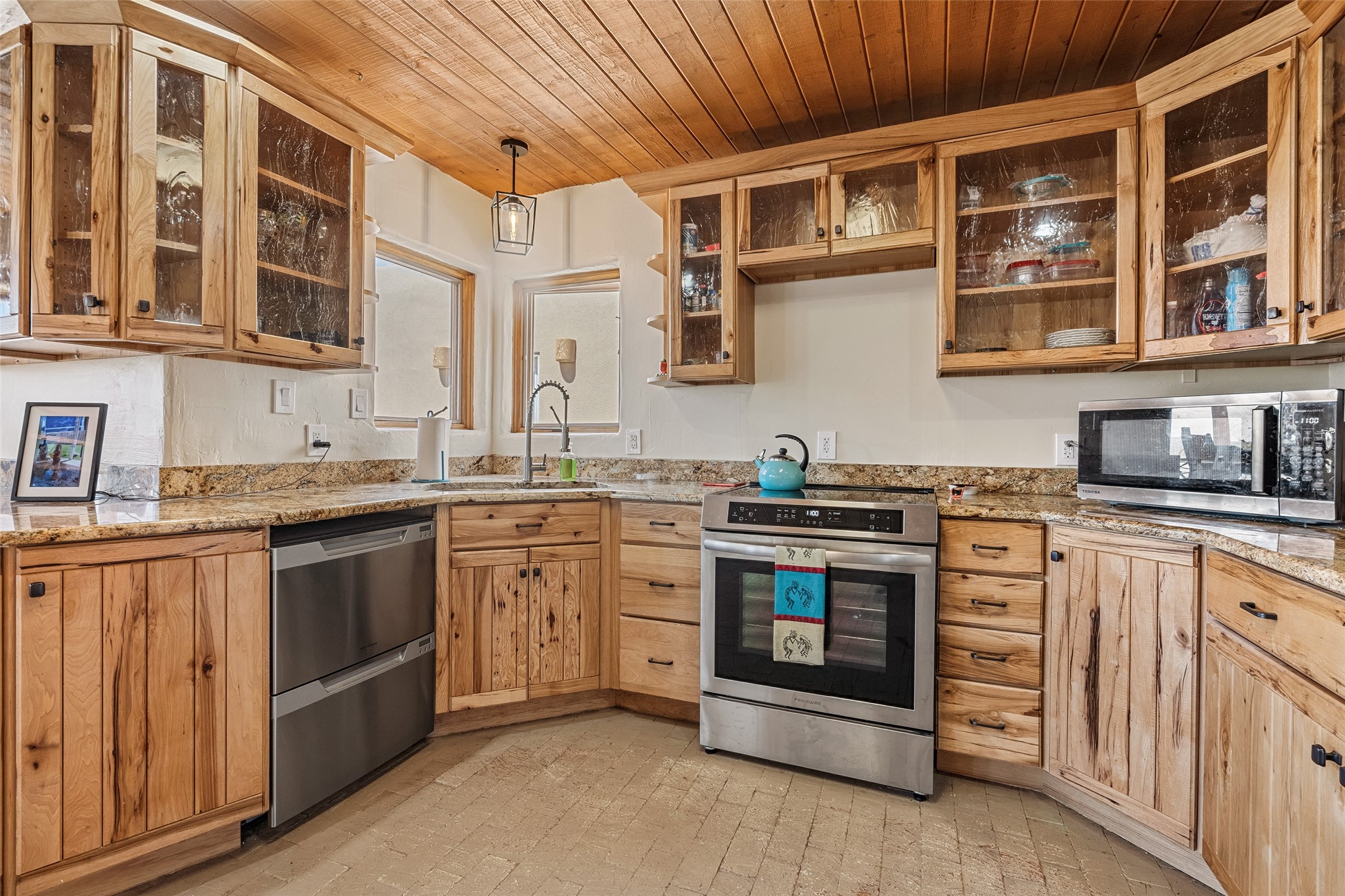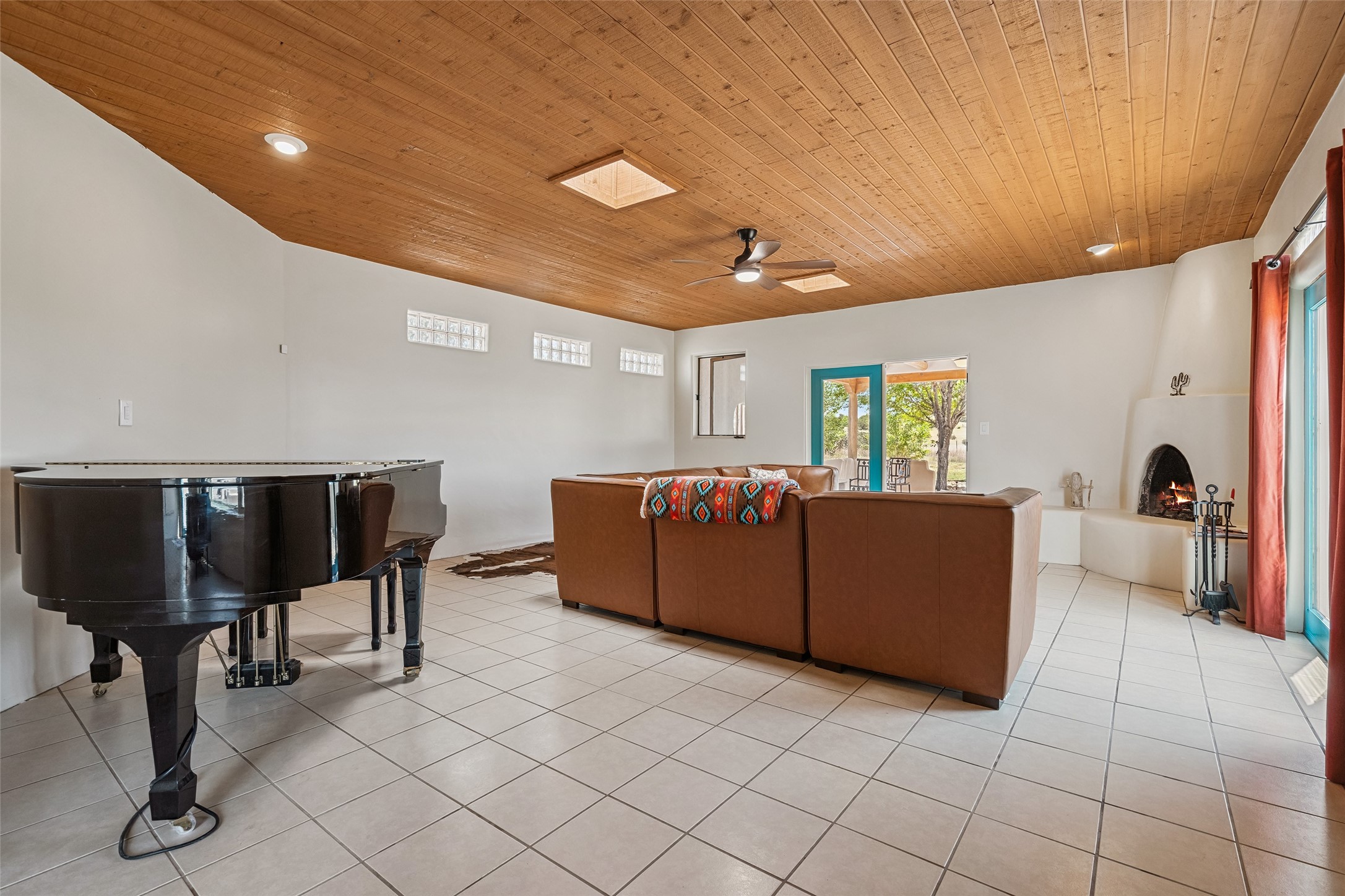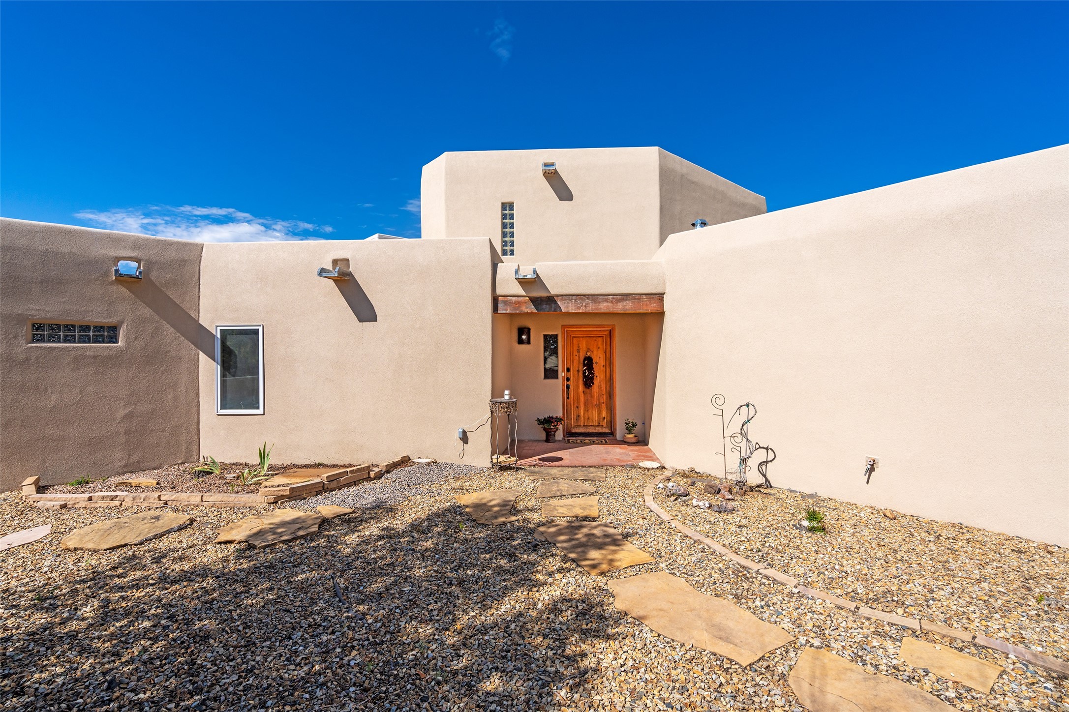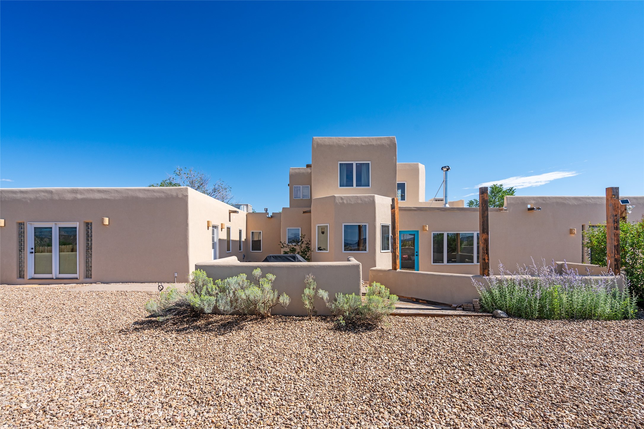 Ideally located for an easy commute to Espanola, Los Alamos and Santa Fe, this classic New Mexico-style home in the Mesa's de Medanales subdivision with No HOA! offers timeless Southwestern character, sweeping mountain views, and exceptional indoor-outdoor living. Set on five peaceful acres with horses welcome and surrounded by open vistas in every direction, the property provides an ideal balance of privacy, space, and convenience just minutes from Abiqui Lake, national forest, and Ojo Caliente Mineral Springs and Spa. At just under 4,000 square feet this mostly single level home features three spacious ensuite bedrooms, a fourth bedroom and a fourth bathroom, making it well suited for multi-generational living, guests, or flexible lifestyle needs. The main-level fourth bedroom is a large, light-filled space complete with a wood stove and cedar closet, offering excellent versatility as a guest suite, studio, or secondary living area. Throughout the home, classic Southwestern details create warmth and authenticity, including brick floors, beamed ceilings, nichos, radiant heat, multiple wood stoves, and three traditional kiva fireplaces. A generous eat-in kitchen serves as the heart of the home and opens to a formal dining room, while a dedicated office or flex space supports remote work, hobbies, or creative pursuits. All bathrooms have been tastefully remodeled with custom finishes and walk-in showers, enhancing both comfort and luxury. Outdoor living is a true highlight, with multiple serene courtyards and expansive exterior spaces designed for year-round enjoyment. A substantial covered portal with a traditional kiva fireplace invites relaxing evenings, entertaining, or simply taking in the remarkable high-desert surroundings. Recent updates add peace of mind and modern convenience, including remodeled bathrooms throughout, new stucco, updated electrical and lighting, fresh driveway gravel, security system and a water filtration and softener system.