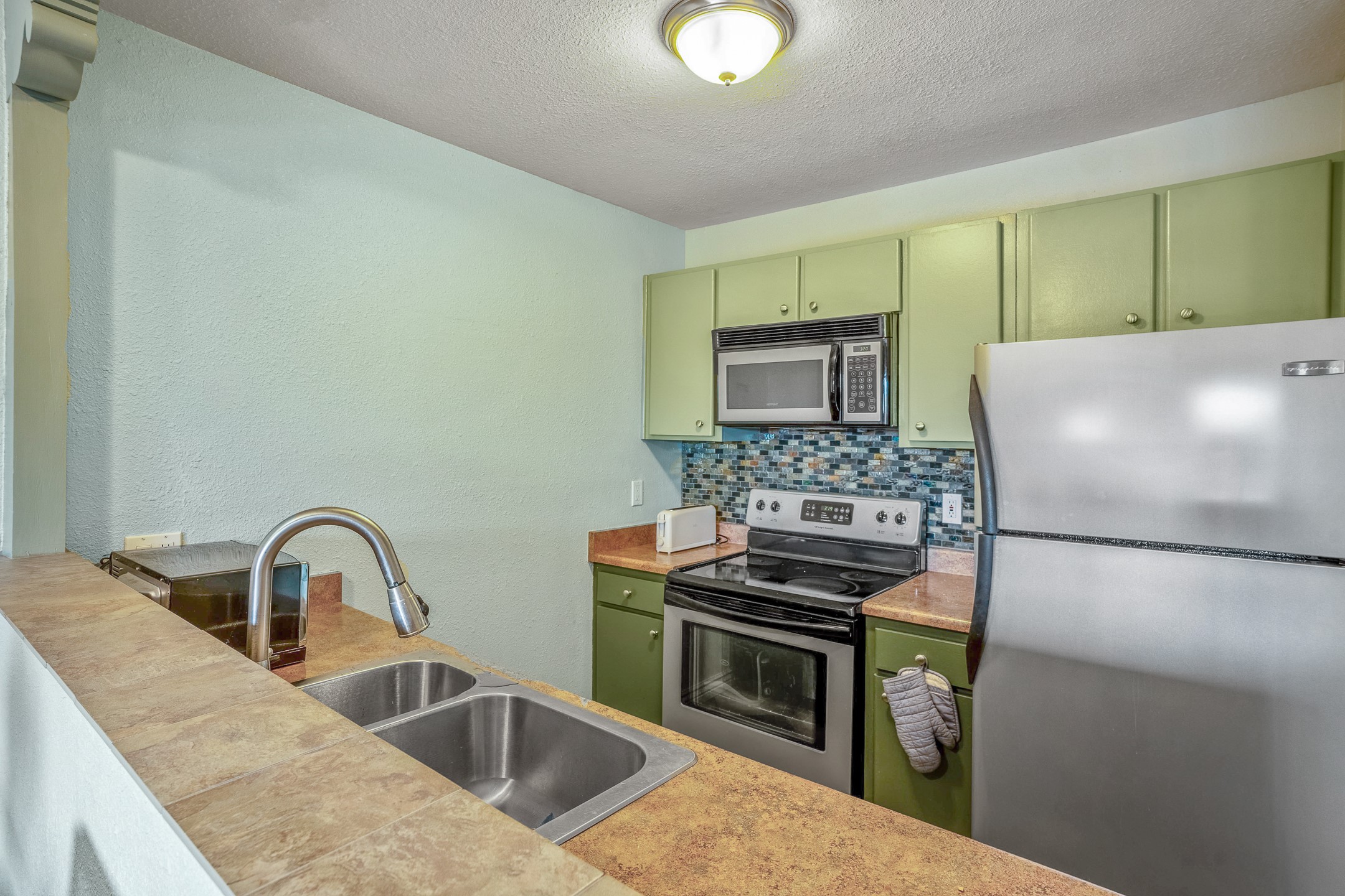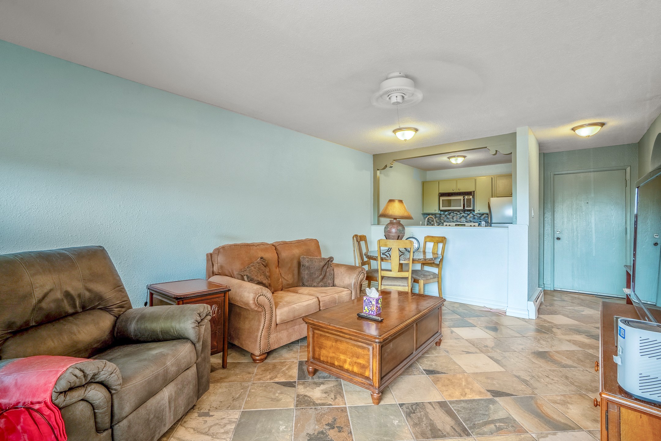 Exceptionally Nice Ground-Floor Condo in Los Arroyos. This beautifully upgraded 1-bedroom ground-floor condo offers comfortable living with a host of desirable features. The home boasts stylish all-tile flooring throughout, an upgraded kitchen and bathroom, two ceiling fans, and an in-unit laundry with a newer stackable washer and dryer. Convenience is key, with assigned parking directly in front of the with easy access to the private patio. Guest parking is also located nearby. Enjoy tranquil sunset views and the shade of mature trees from your outdoor space. Residents of Los Arroyos enjoy access to a wide range of community amenities, including: Year-round indoor heated pool, Sauna and weight room, Hospitality room, Tennis and basketball courts and Nearby walking trails. Ideally located just minutes from schools, shopping, medical facilities, and the Santa Fe Plaza, this condo provides both comfort and convenience. Condo fees include baseboard hot water heat, water, sewer, refuse, and maintenance and insurance on the buildings and grounds