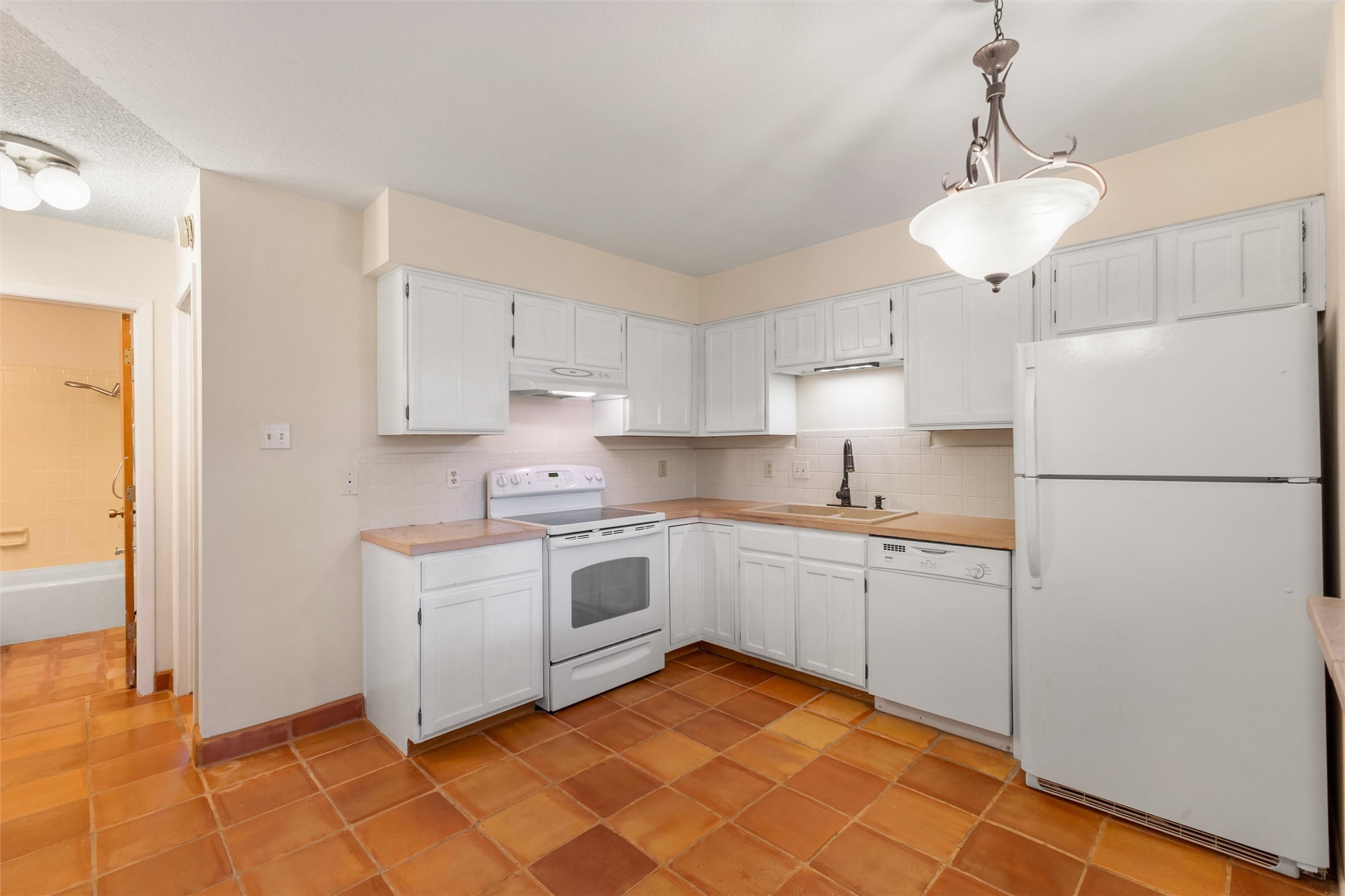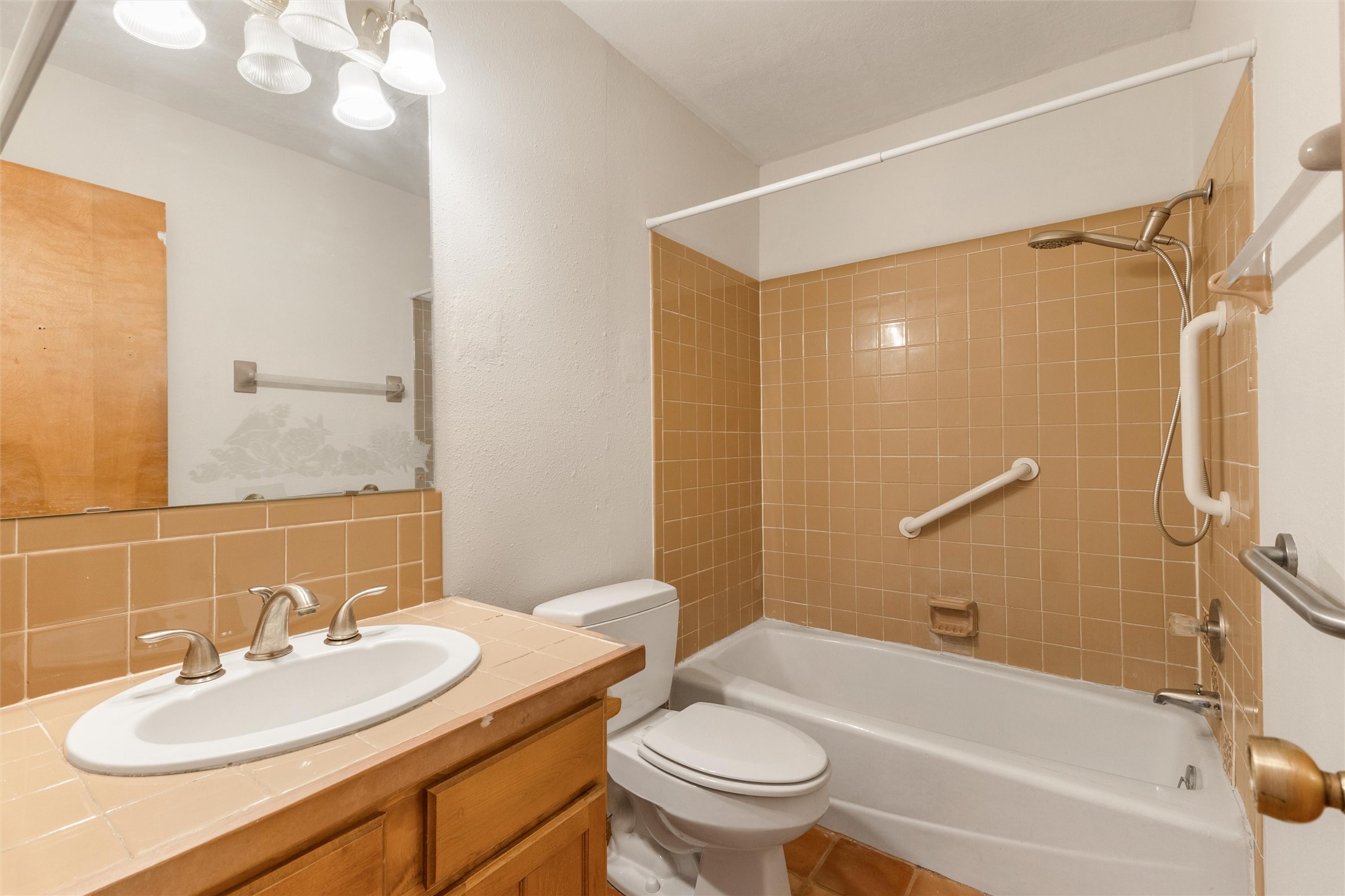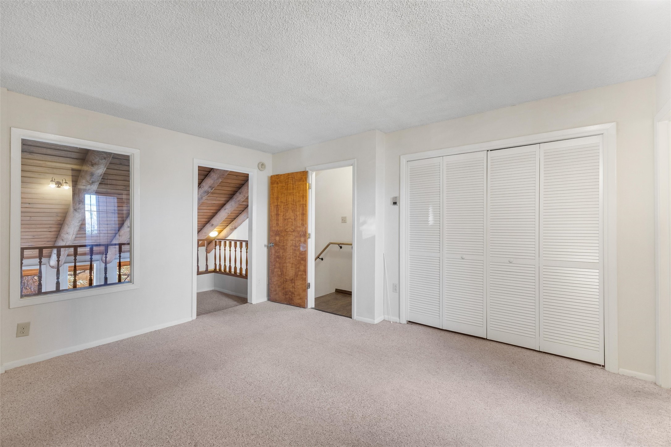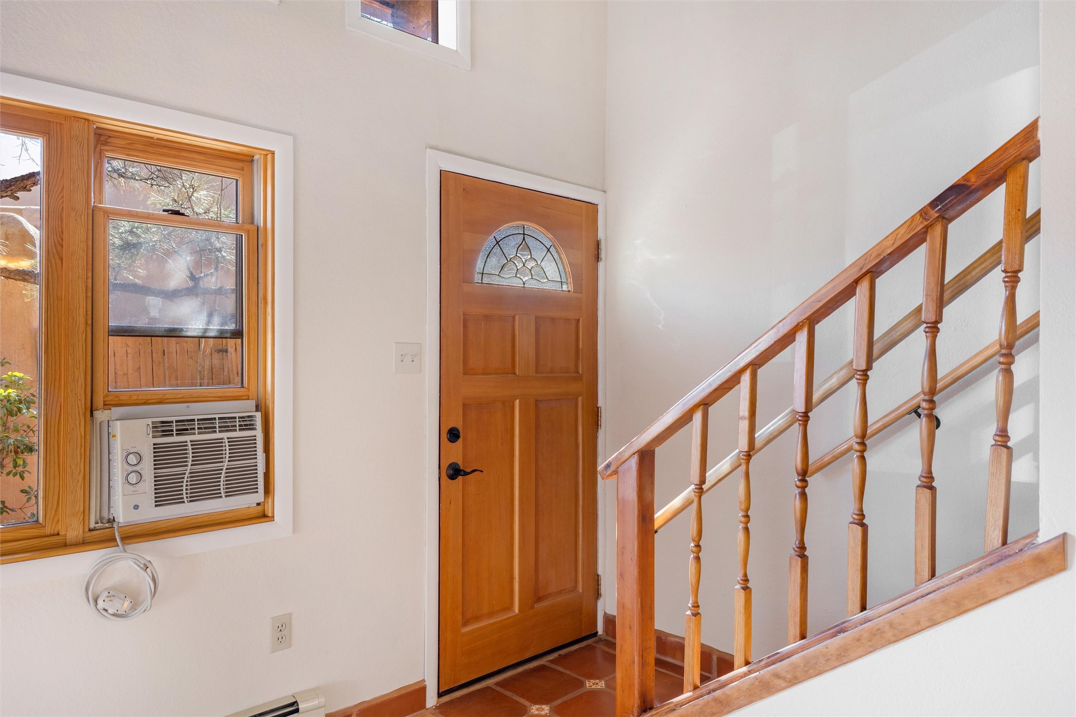 This inviting 2-bedroom, 2-bath residence at Avenida de las Americas blends classic Santa Fe style with thoughtful updates and a comfortable, well-designed floor plan. Upon entry, the home feels open and spacious, enhanced by clerestory windows that fill the living area with natural light. Traditional Southwest details include vigas, a kiva-style fireplace, Saltillo tile flooring, and a charming loft that adds character and flexible living space.The living room serves as the heart of the home, offering warm morning light, a cozy fireplace, and an easy flow for everyday living. A full bedroom and bathroom on the lower level provide convenience for guests or main-level living, while the large primary bedroom and bathroom upstairs offers privacy and comfort. The back yard extends the living space outdoors, featuring mature landscaping, gardens, and a flagstone patio ideal for relaxing or entertaining.Recent improvements include fresh interior paint completed in January 2026, Saltillo tile installed throughout the lower level and upstairs bathroom, a remodeled stairway with natural wood and Mexican tile, an updated kitchen sink and faucet, and added security doors at the rear of the home. Ample storage, including generous space beneath the stairway, adds everyday functionality.Las Americas offers a quiet, community-oriented setting with a strong sense of privacy, while remaining close to shopping, dining, and entertainment. With well-lit parking and a peaceful atmosphere, this home offers comfort, charm, and convenient Santa Fe living. It also includes two designated parking spaces labeled 1559.