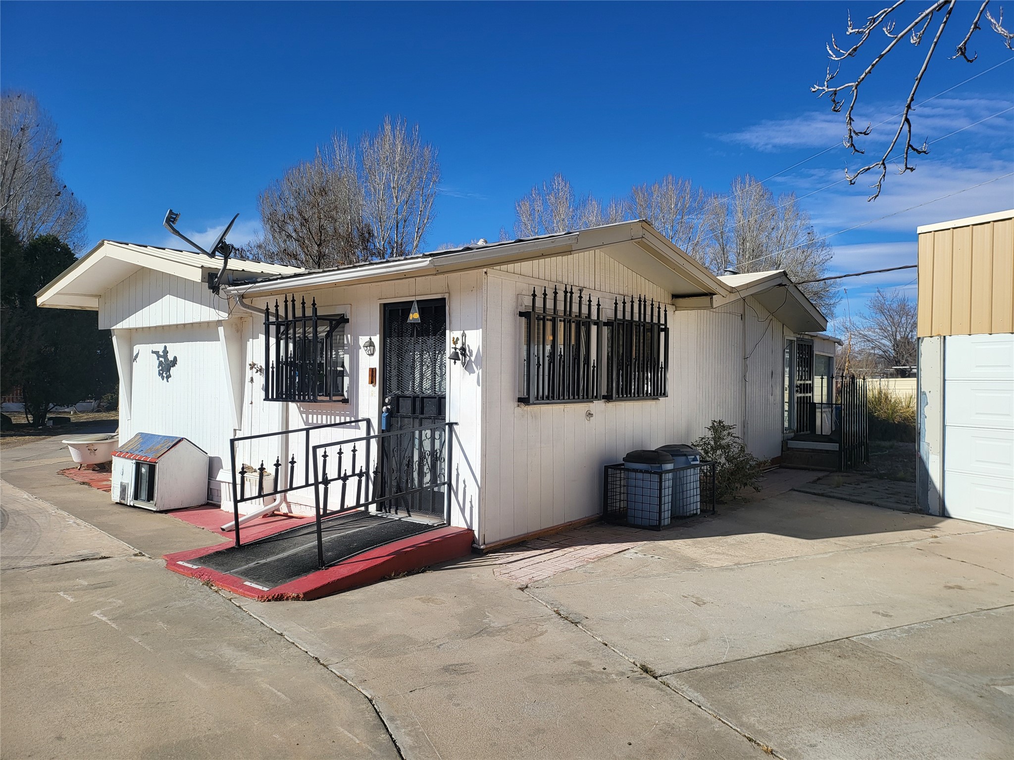 Single wide mobile home with additions on 0.42 lot in quiet San Pedro residential area. 3 detached garages totaling 5 bays, large detached shop. This is an estate sale and requires some upgrades, being sold cash, as is.