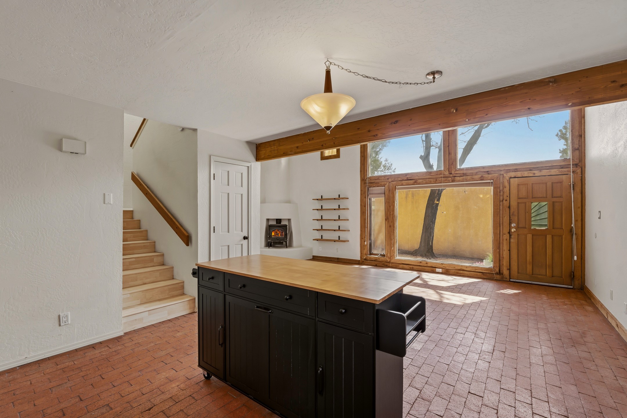 Beautifully updated passive solar townhome backing to green space, ideally located with easy access to Interstate 25 and nearby shopping and dining. This light-filled home features soaring ceilings and expansive floor-to-ceiling windows that fill the space with natural light, complemented by warm brick flooring and an open, inviting layout.The remodeled kitchen is enhanced with a center island and newer appliances (approximately 1-2 years old), offering both style and functionality. Recent updates throughout include fresh interior paint, modern fixtures, and an armoire in the primary bedroom.The spacious primary suite provides a comfortable retreat, while additional living areas offer flexibility for guests, work, or relaxation. Enjoy numerous outdoor living spaces, including two that overlook the serene green space, creating the perfect setting for entertaining or unwinding.One of this property's key features is a brand new TPO roof with a transferable warranty. A brand new garage door opening system adds everyday convenience.Thoughtfully updated and move-in ready, this home offers comfort, style, and a peaceful setting.