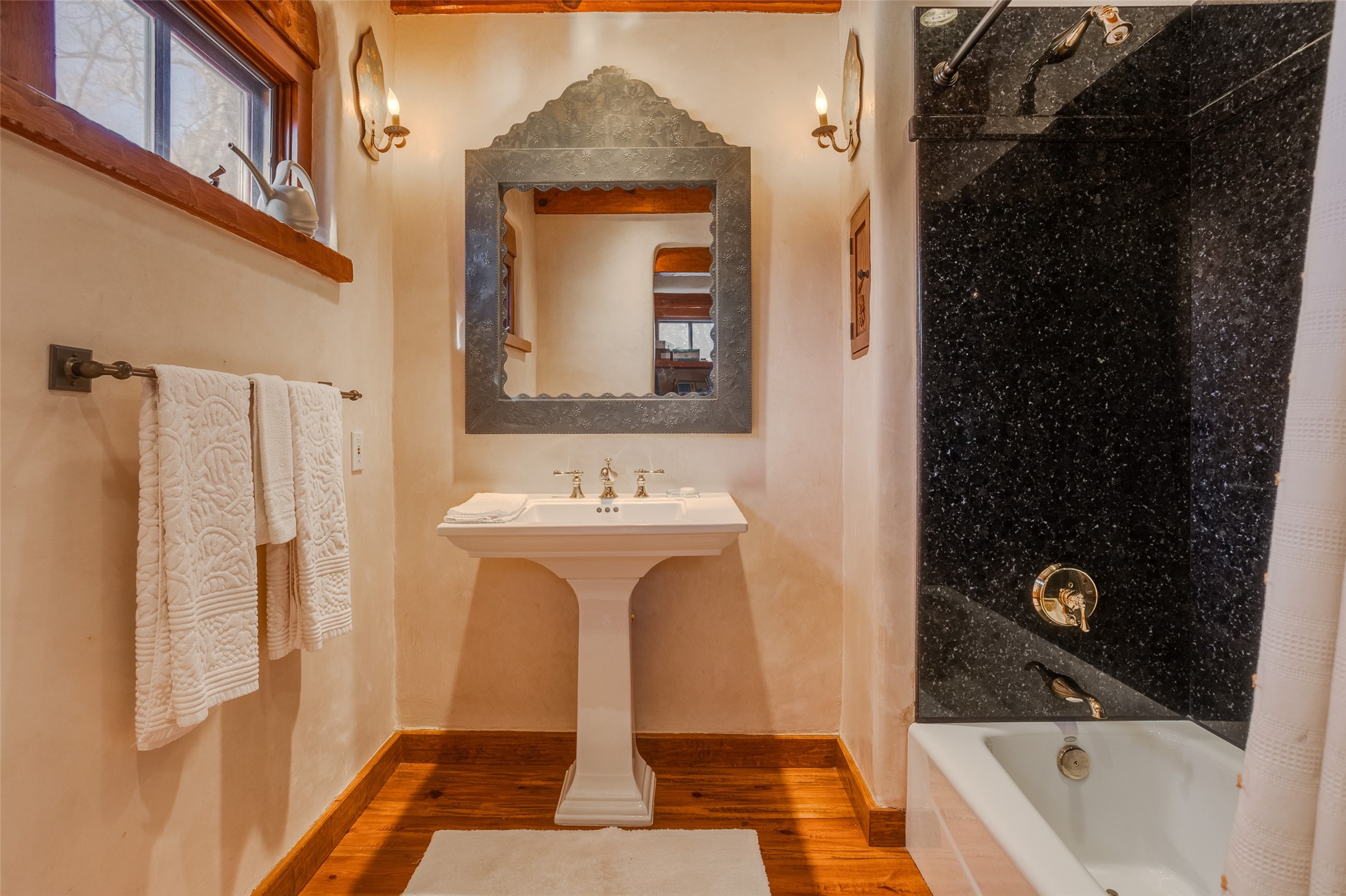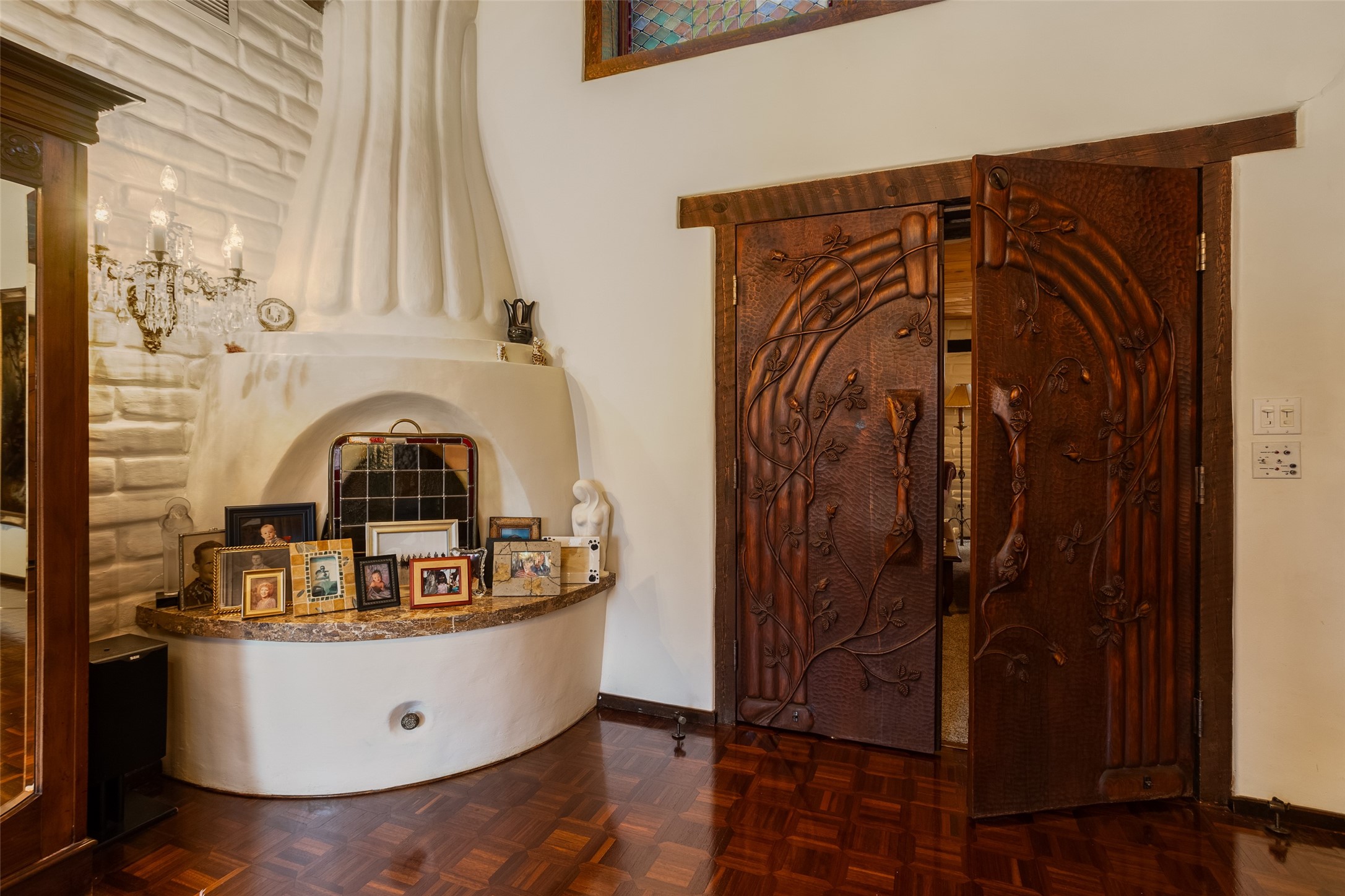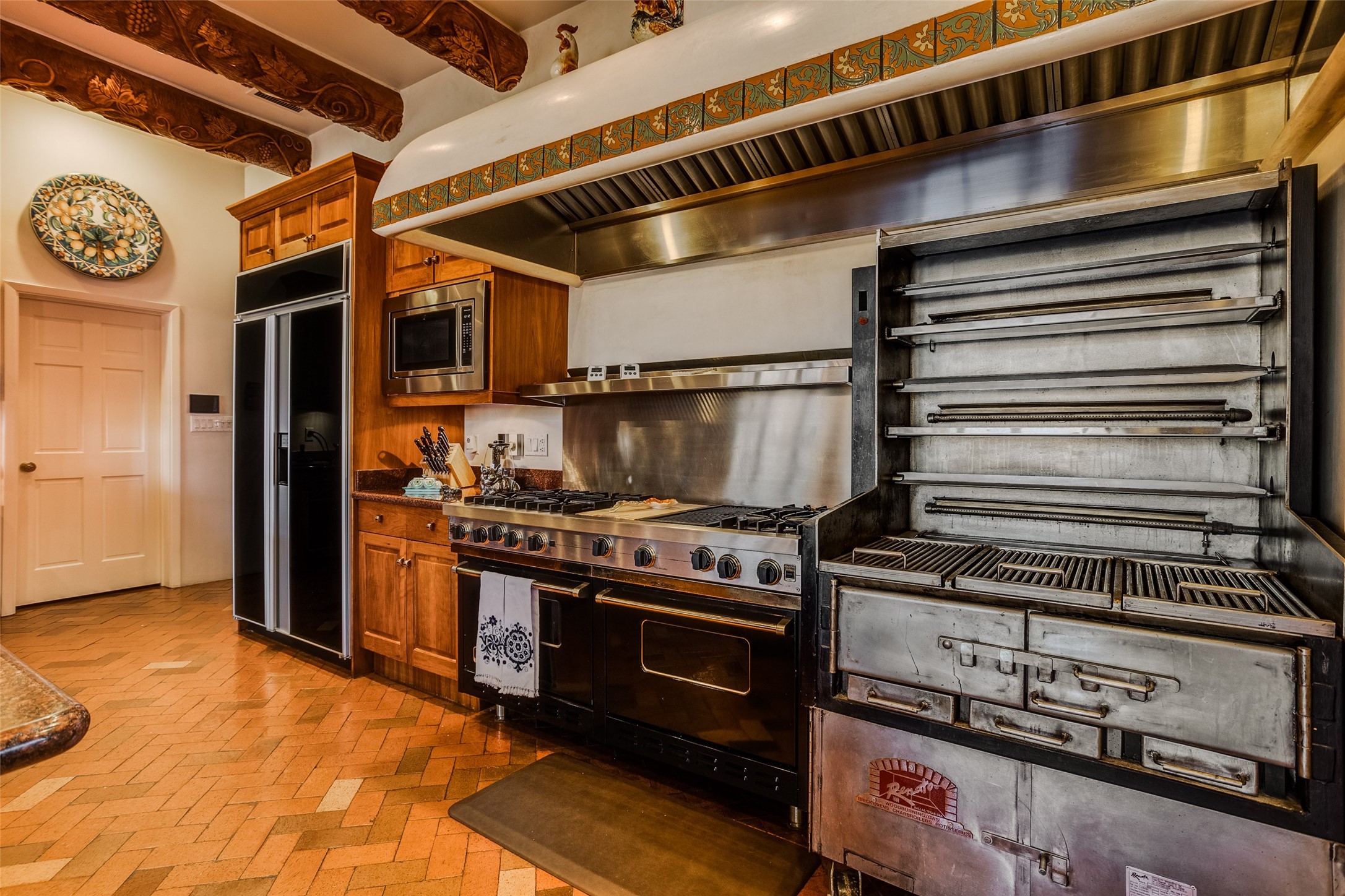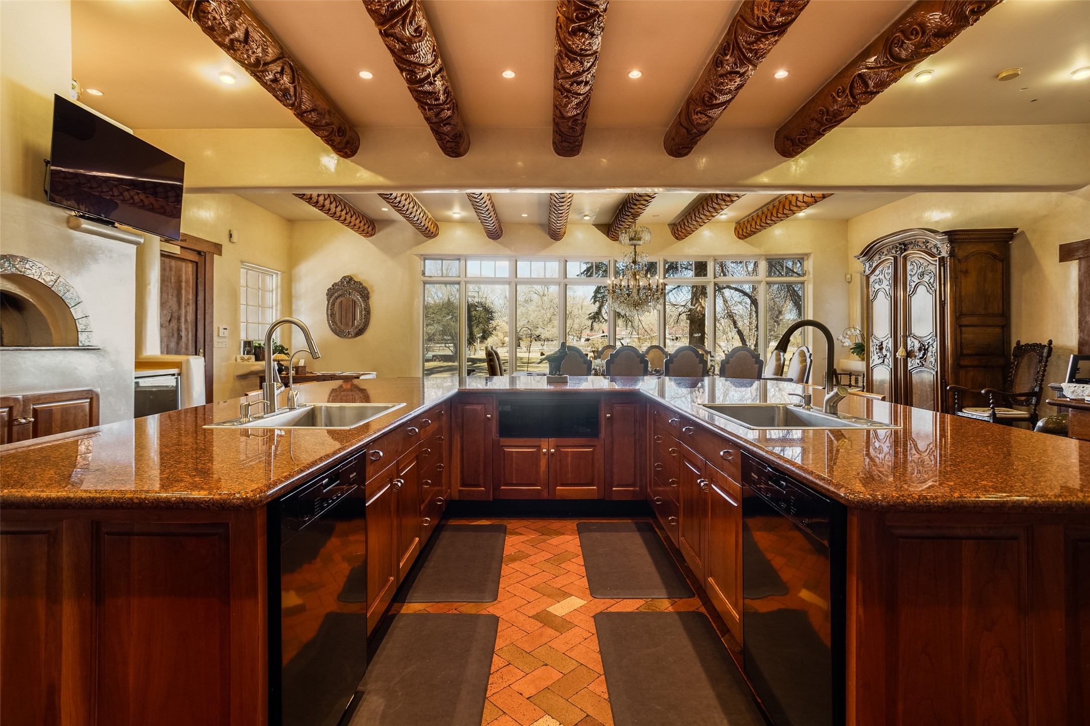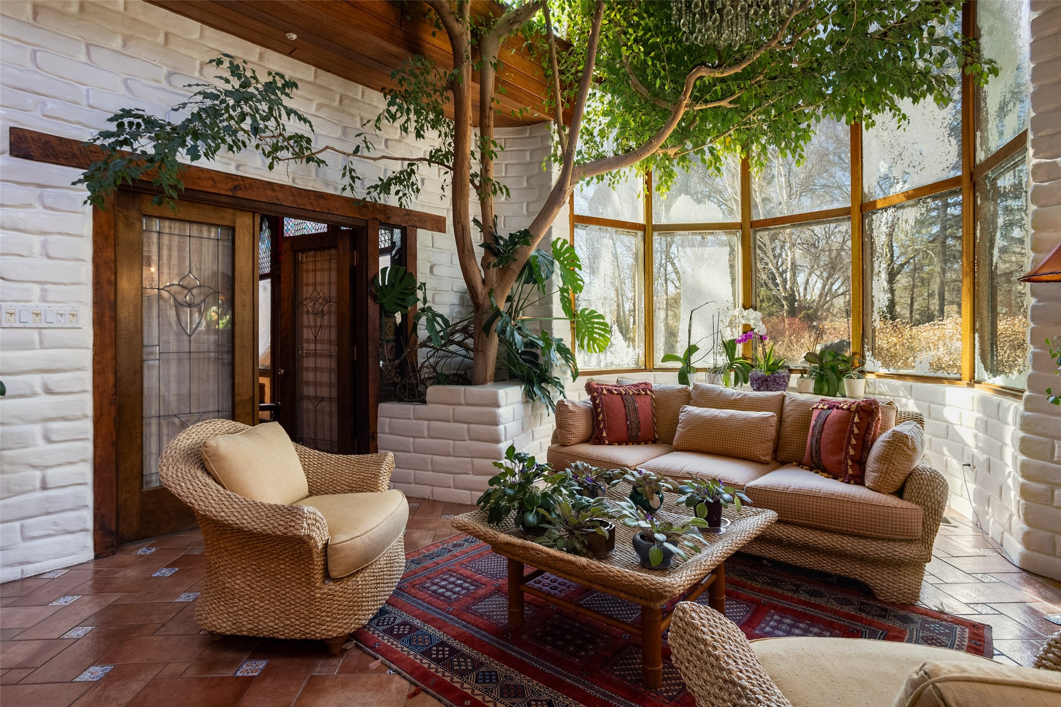 This one of a kind property in the North Valley of Los Ranchos de Albuquerque offers a unique opportunity to own a piece of history and luxury in a picturesque setting. This original 1850s ranch, located in Los Ranchos de Albuquerque, spans over 8 acres of beautifully landscaped yards, adorned with 100-year-old trees. The property also boasts 2 acres of vineyard, producing award-winning grapes for world-class wines. Rare 1906 water rights on the property, but also the connivence of city water to the house.The main house, constructed around the original 19th century ranch house, with over 9000 square feet of Double Adobe, exudes timeless elegance. Its hand-carved wood doors, massive carved wood beams, and soaring ceilings reflect the craftsmanship of a bygone era.The attention to detail is evident in the hand-painted ceiling of the piano room and the dedicated wine room. A Bell tower greets you at the main entrance, with an antique bell and massive carved wood doors. Step back in time as you stroll through the portal with hand carved doors and tapered wood pillars leading to the open patio and garden area.For those who appreciate outdoor activities, the property features one of the only clay tennis courts in New Mexico, offering a unique recreational opportunity. Additionally, a spacious 4-car garage with a workshop, remodeled greenhouse provides ample space for hobbies and storage. A 670sf Casita or Bonus room constructed with the same detail as the main house awaits your vision. A duplex with bedrooms, full baths, fireplaces, sit on top of the 4 car garage with mountain views and private entrances, a very inviting living space.This property is not just a home; it's a testament to history, craftsmanship, and luxury living. It offers a rare combination of natural beauty, historical significance, and modern amenities. Whether you're drawn to the allure of winemaking or seeking a serene retreat in a stunning landscape,
