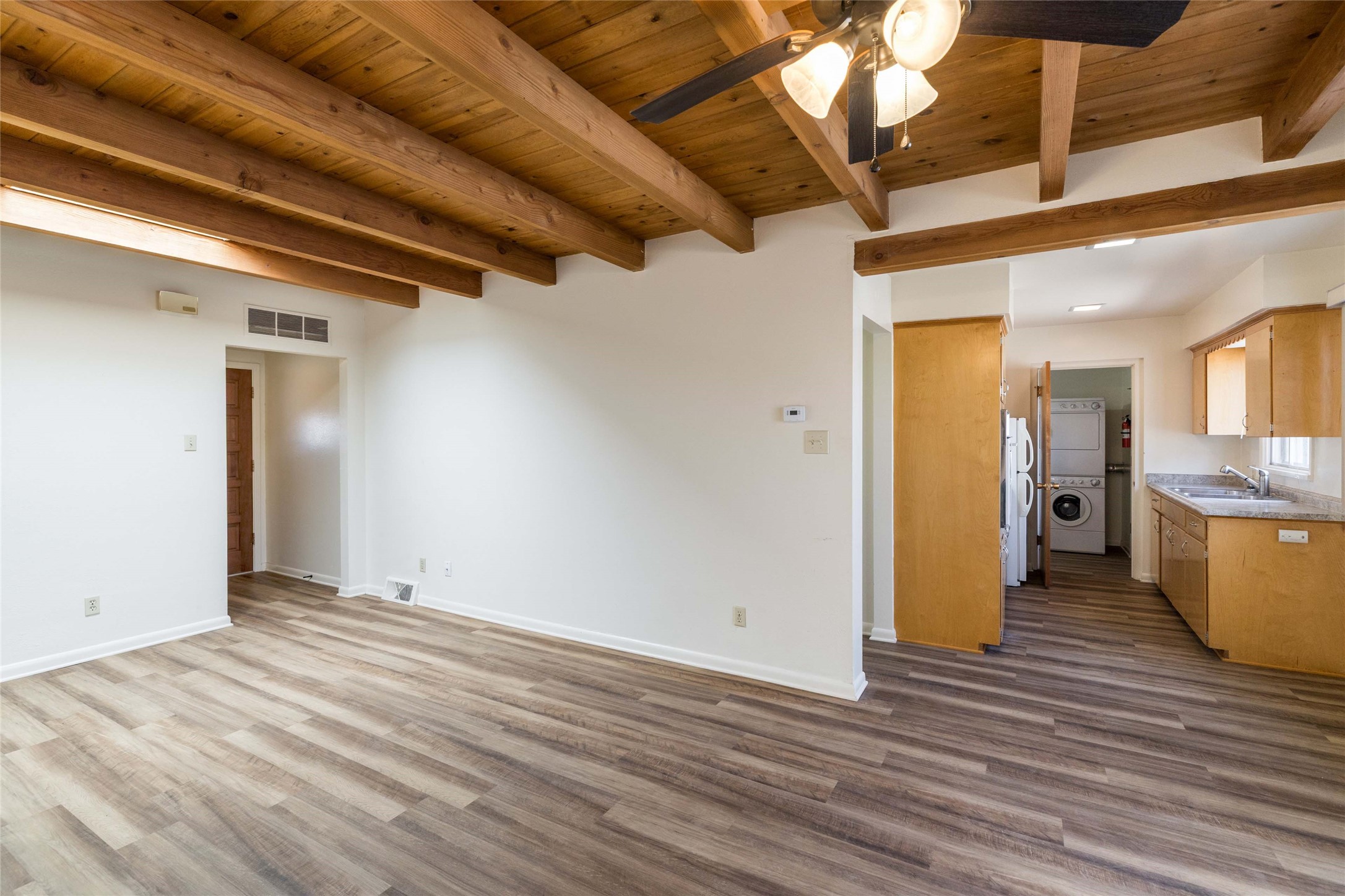 Experience the lifestyle of Downtown Santa Fe at Plaza Del Monte, a gated community located within one of the Southwest's most iconic destinations, just minutes from the historic Santa Fe Plaza. This rare offering presents a compelling opportunity for investors, second-home owners, and adventure travelers alike, with the added benefit of allowable short-term rentals. The community offers a unique and peaceful setting with nearby access to open space, hiking and biking trails, and outdoor recreation, while remaining close to Santa Fe's celebrated galleries, restaurants, and cultural landmarks. A rare chance to own in a community that blends lifestyle, location, and strong investment potential. This versatile duplex floor plan offers a 2-bedroom, 1-bath unit (917 SF) and a 1-bedroom , 1-bath unit (735 SF), both with two covered parking spaces per unit. Each residence features a traditional kiva fireplace and wood-beamed ceilings, adding warmth and classic Santa Fe charm to the living spaces. If you're not ready to update, the units can be enjoyed as they are. Take your time and update and add personal touches when the moment is right.