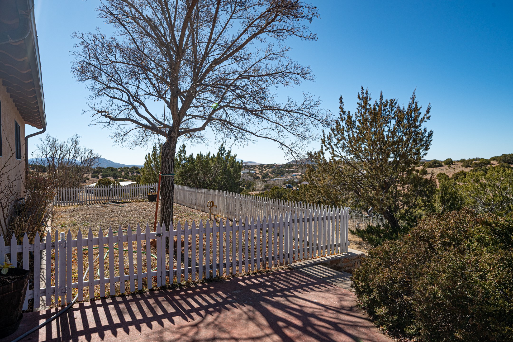 Astounding Sangre Views abound from this hilltop perch! This single level one owner home is sited on 5 acres and features 2 fireplaces, 3 bedrooms, spacious floorplan, separate laundry room with adjacent powder room, 3 garage bays and plenty of room to garden. There are mature apple trees and a fenced vegetable plot. The home offers a private well and natural gas. Ojo Springs and El Rancho de Los Golondrines are both just up the road and this country setting in the Village of La Cienega is less than 30 minutes to The Santa Fe Plaza!