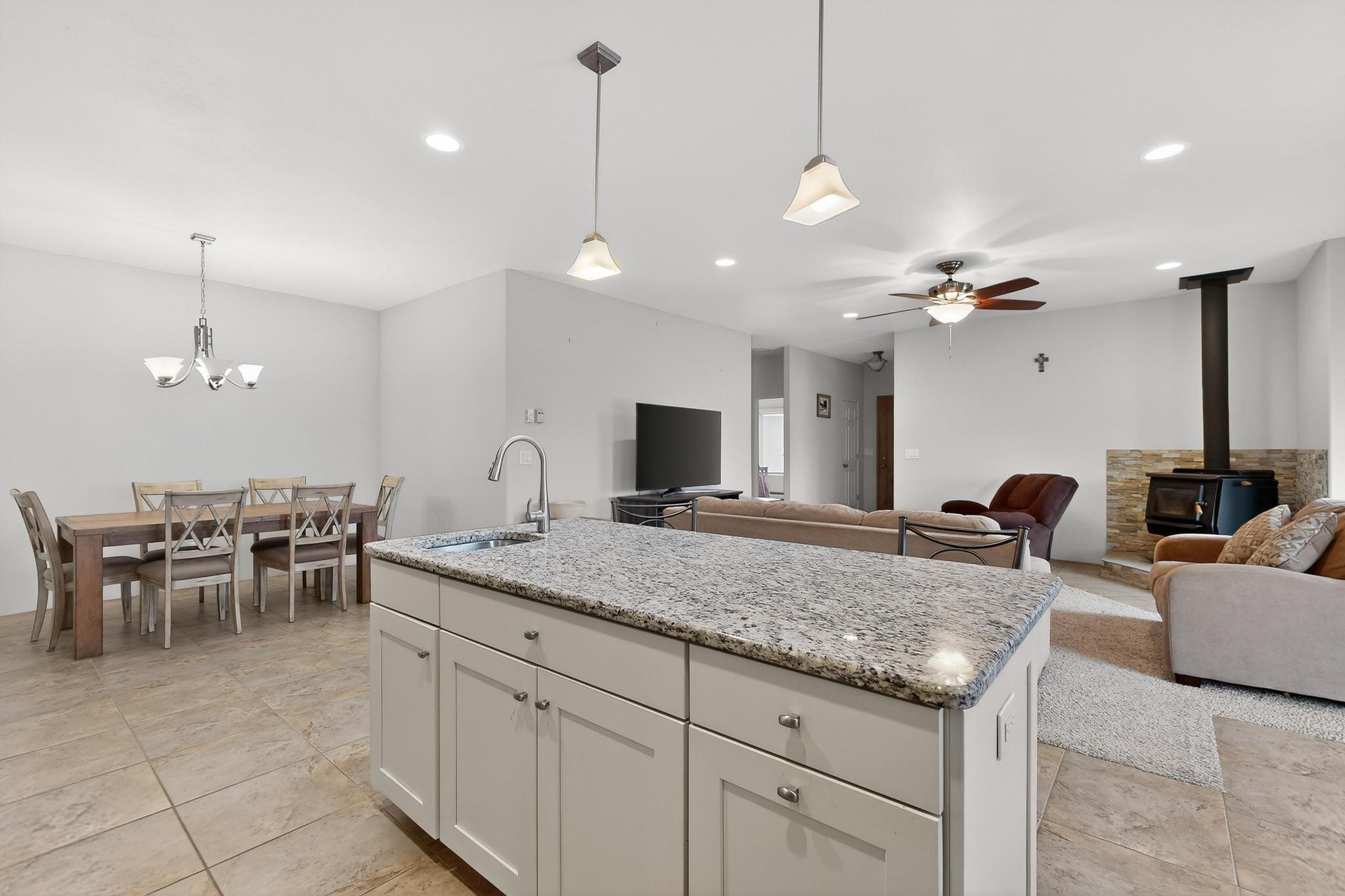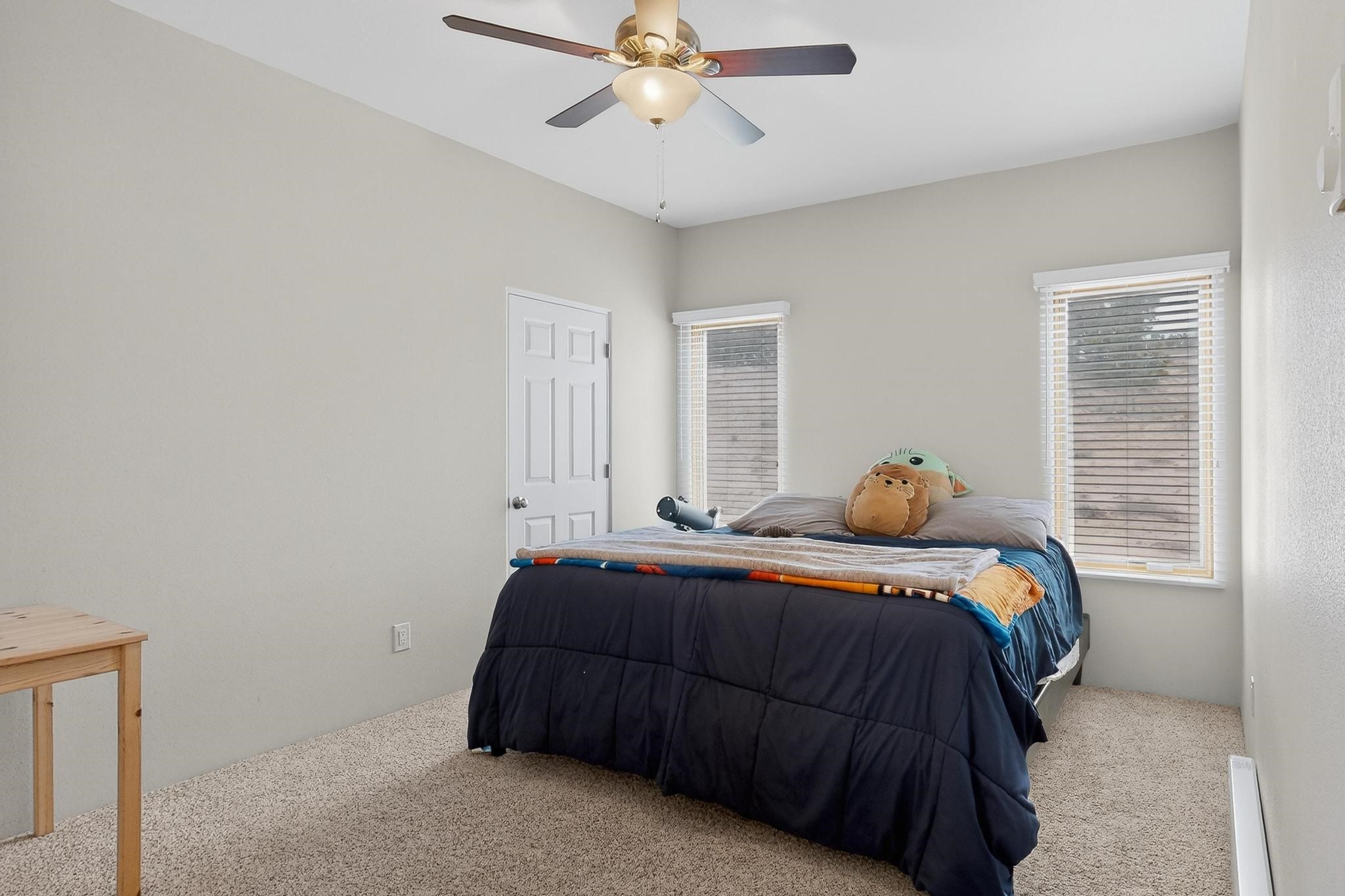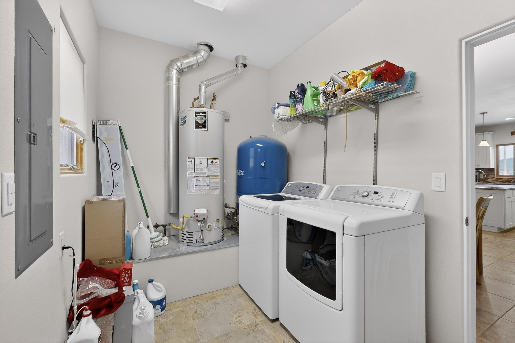 Experience breathtaking views from this beautifully custom-built, one-owner home tucked inside a gated area with its own private driveway. Thoughtfully designed with 3 bedrooms plus a versatile fourth room ideal for an office, guest space, or additional bedroom, the layout offers comfort and intentional design throughout.Inside, craftsmanship shines. The kitchen features custom granite countertops, a propane stove, a center island with prep sink, soft-close drawers and cabinets, crown molding cabinetry, and a full backsplash that ties the space together with sophistication and style. Custom-built front and kitchen doors add distinctive character.The living area includes a wood-burning stove, thoughtfully designed with tile surrounding the carpeted space to accommodate bringing in firewood with ease. Heating is also provided by electric baseboard heating, and the home is equipped with ducted evaporative cooling. Hot water is supplied by a propane water heater.The primary bathroom offers a double vanity, adding both functionality and space. The property utilizes a private well and private septic system, with the well pressure tank replaced approximately three years ago. Enjoy the benefit of no HOA -- just a $175 annual gate maintenance fee.Privacy, views, and carefully considered details come together in this exceptional opportunity!Step inside and experience all the thoughtful details and stunning views this home offers--schedule your visit today!