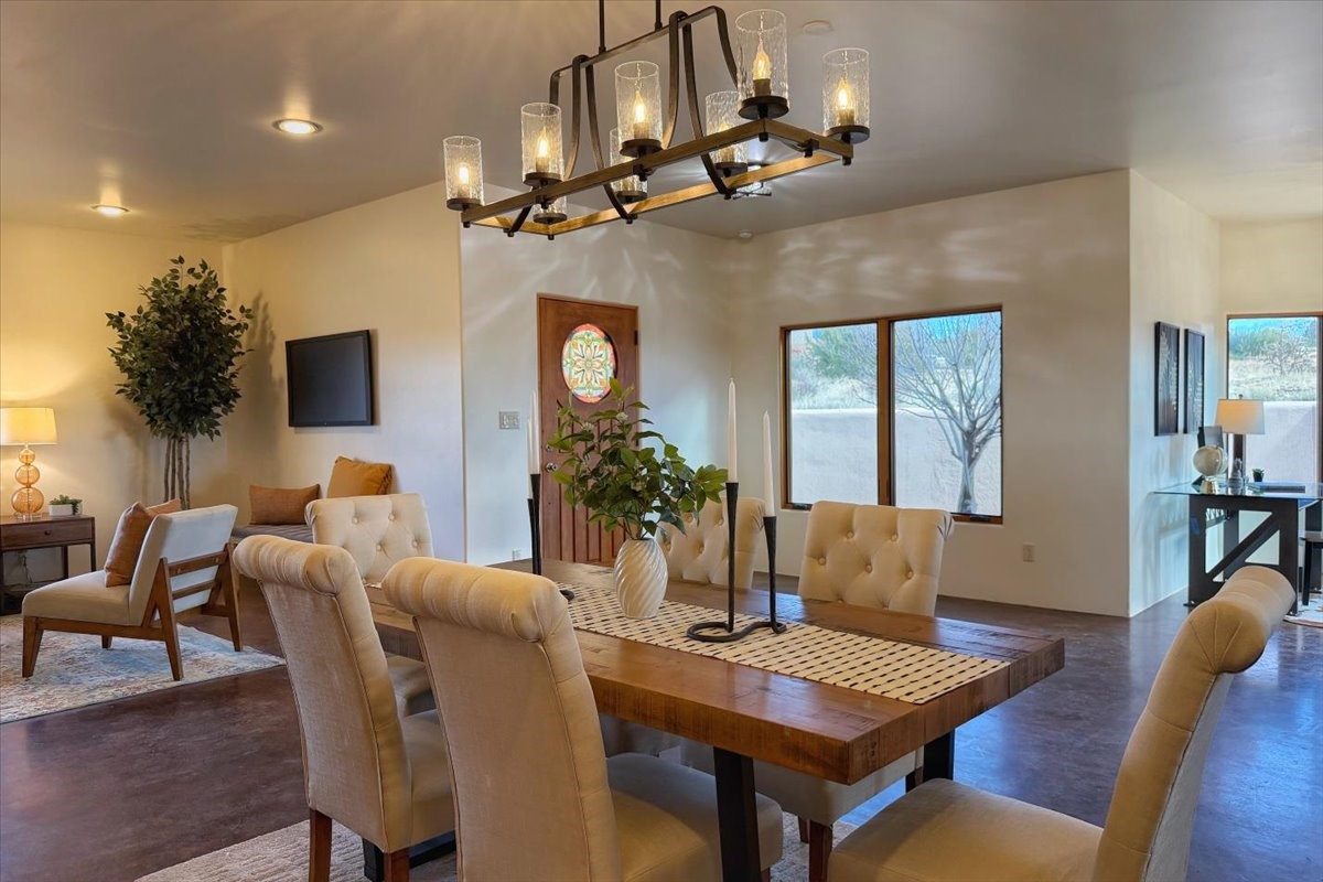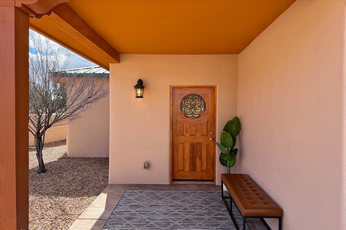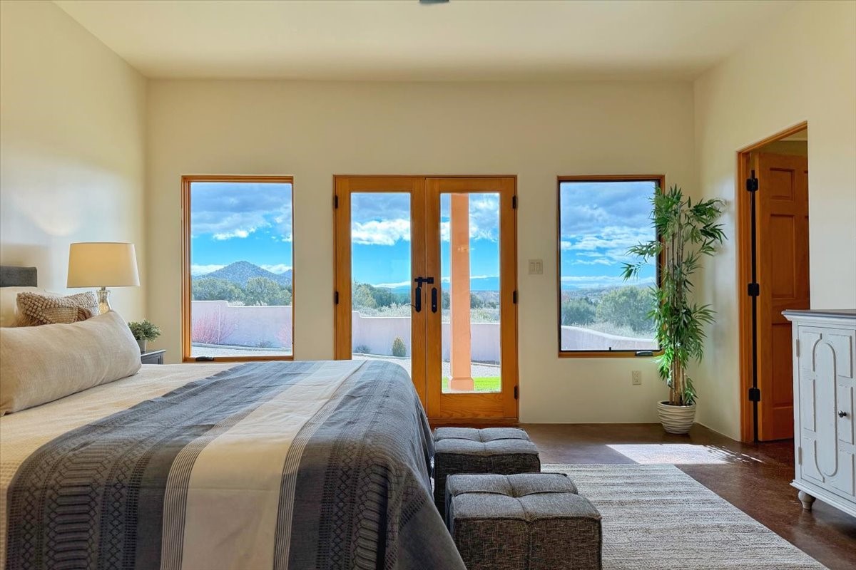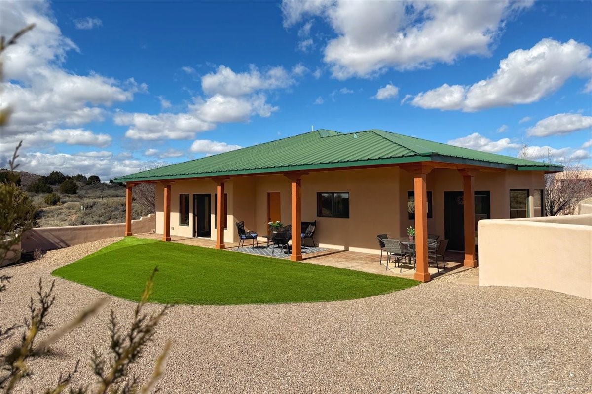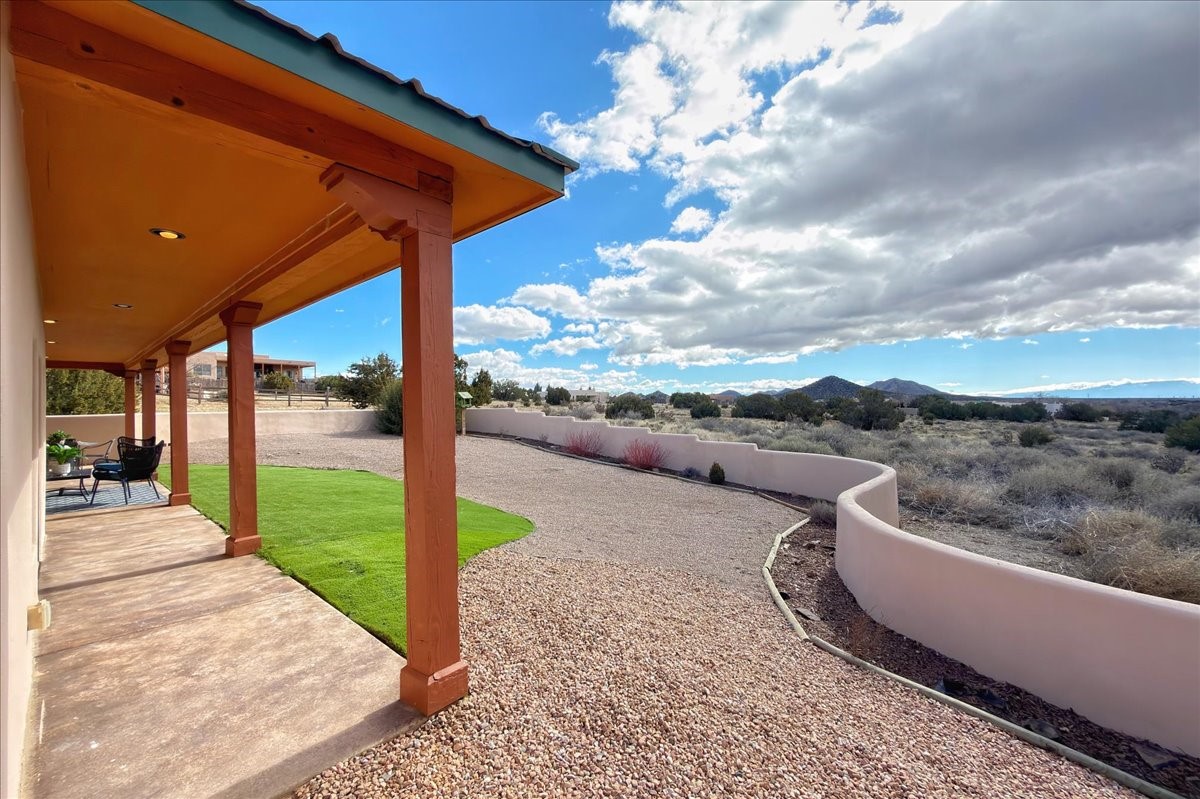 Nestled in the gated community of Las Lagunitas is this beautiful 2-bedroom, 2-full-bath, single-level home with an oversized 2 car garage on 1.42 acres. Freshly painted and move-in ready! Open-concept living, dining, and kitchen featuring granite counters. Abundant natural light throughout. Primary bedroom and kitchen offer unobstructed, far-reaching views. Secondary bedroom flexible as a studio or office space. Landscaped backyard with a full privacy wall and ample space for pets to roam. A lovely patio invites you to enjoy the beautiful New Mexico sunsets. This home combines comfort, style, and convenience! Easy access to I-25 & NM-599.