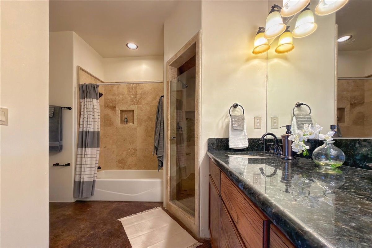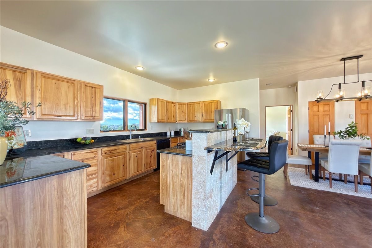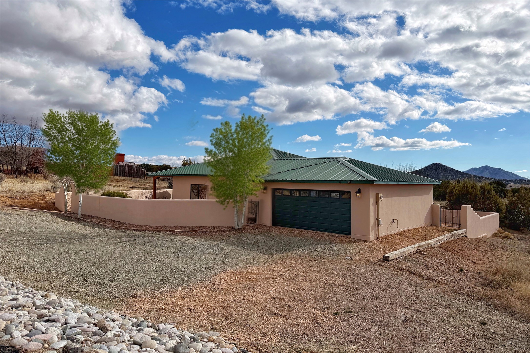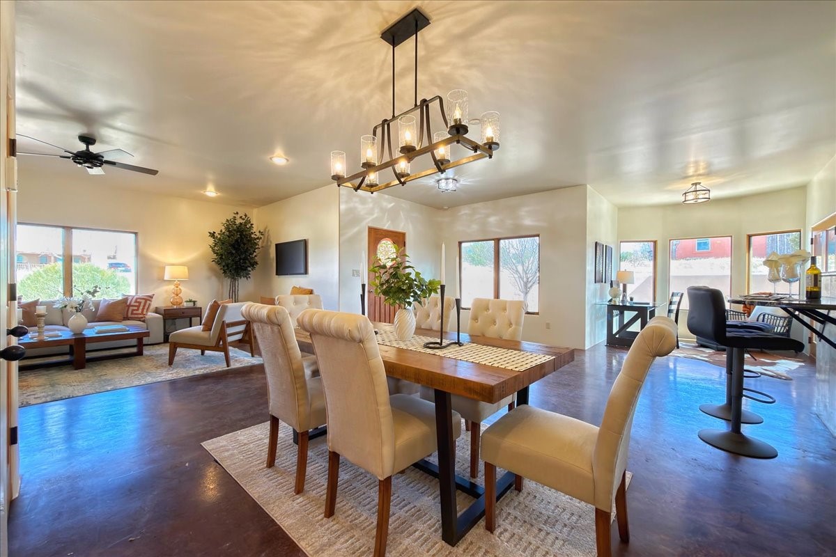 Nestled in the gated community of Las Lagunitas is this beautiful 2-bedroom, 2-full-bath, single-level home with an oversized 2 car garage on 1.42 acres. Freshly painted and move-in ready! Open-concept living, dining, and kitchen featuring granite counters. Abundant natural light throughout. Primary bedroom and kitchen offer unobstructed, far-reaching views. Secondary bedroom flexible as a studio or office space. Landscaped backyard with a full privacy wall and ample space for pets to roam. A lovely patio invites you to enjoy the beautiful New Mexico sunsets. This home combines comfort, style, and convenience! Easy access to I-25 & NM-599.