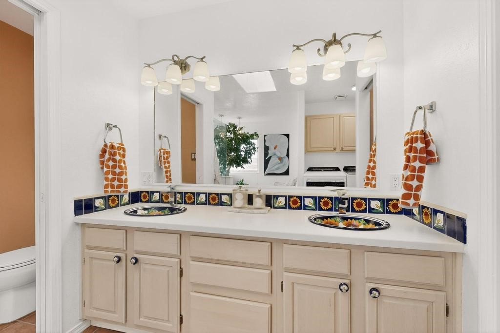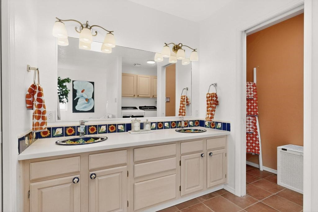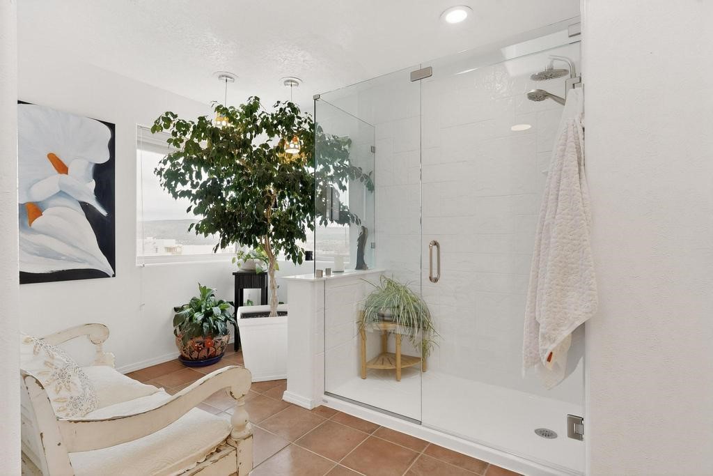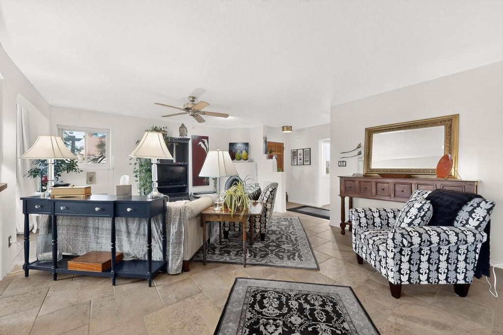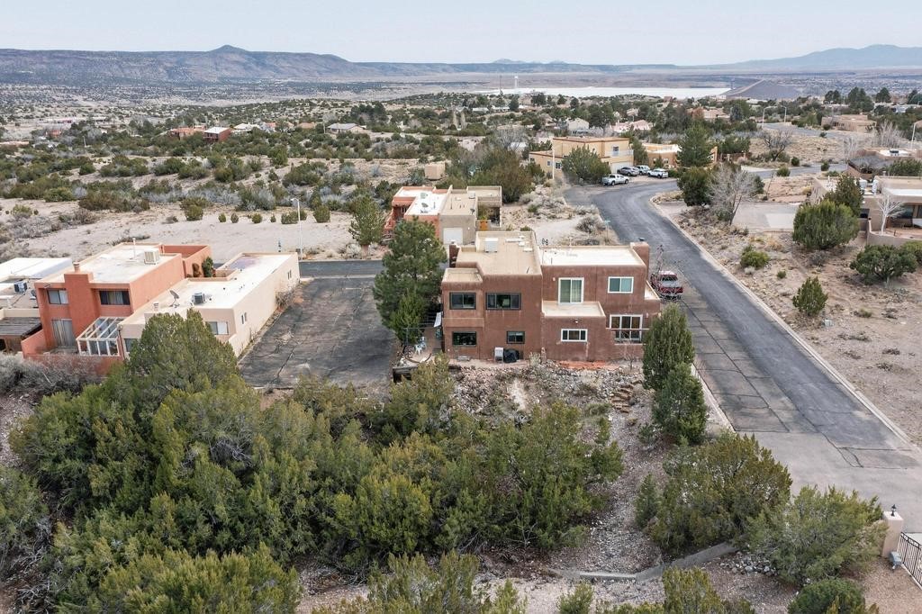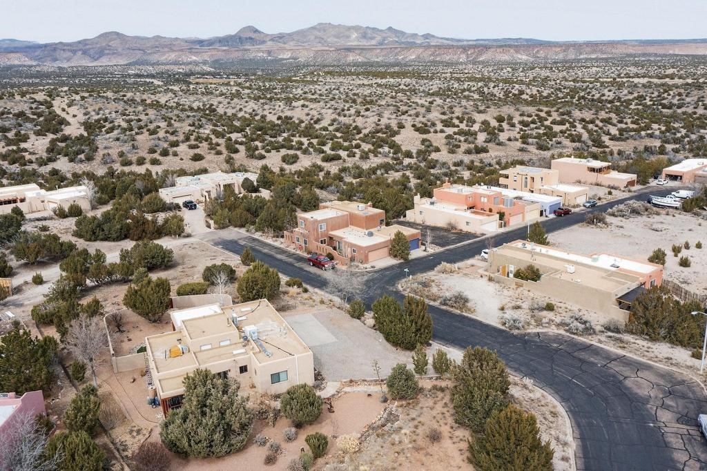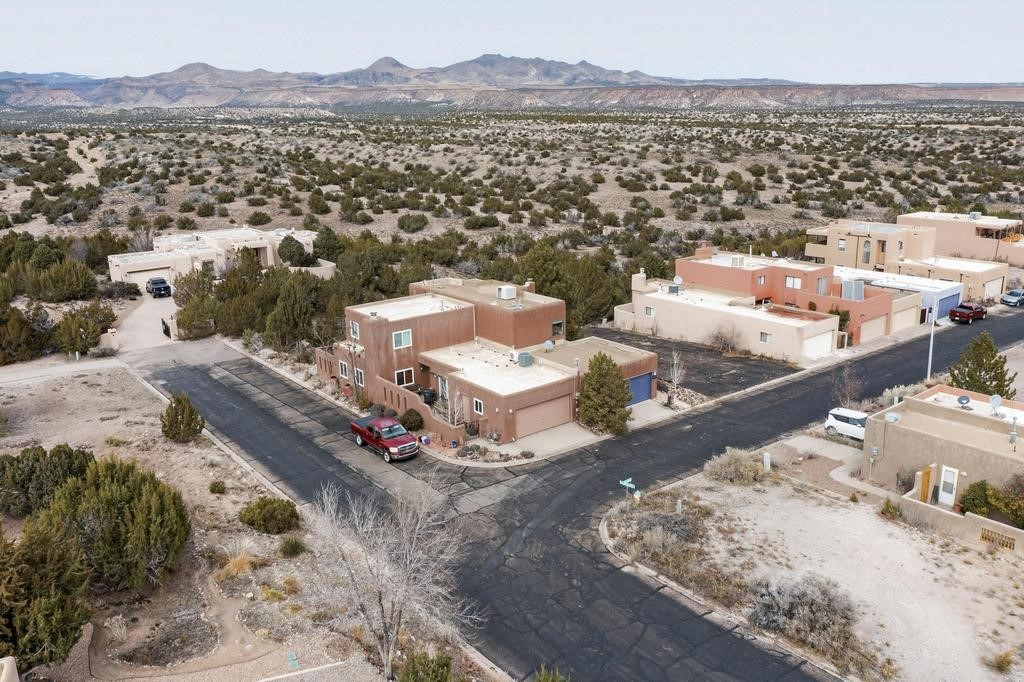 Welcome to a peaceful oasis with incredible views! This updated 2 bedroom, 2 bathroom townhome is full of light & character. A kiva fireplace warms the living space where you can still talk to folks in the kitchen, and enjoy the outdoor views. Downstairs you'll find 1 bedroom & bathroom, and when you go upstairs, notice the nichos along the wall for art. Off of the main bedroom upstairs is a bonus room that the seller is currently using as an art studio. Its could be so many things and with views like that, who wouldn't want to spend time in there?! The laundry is also upstairs along with a bathroom suite. There is plenty of storage with closets, an attached garage & a big storage room. Enjoy nature & sunsets on the flagstone patio w/ retractable awning. Located between Santa Fe & ABQ.