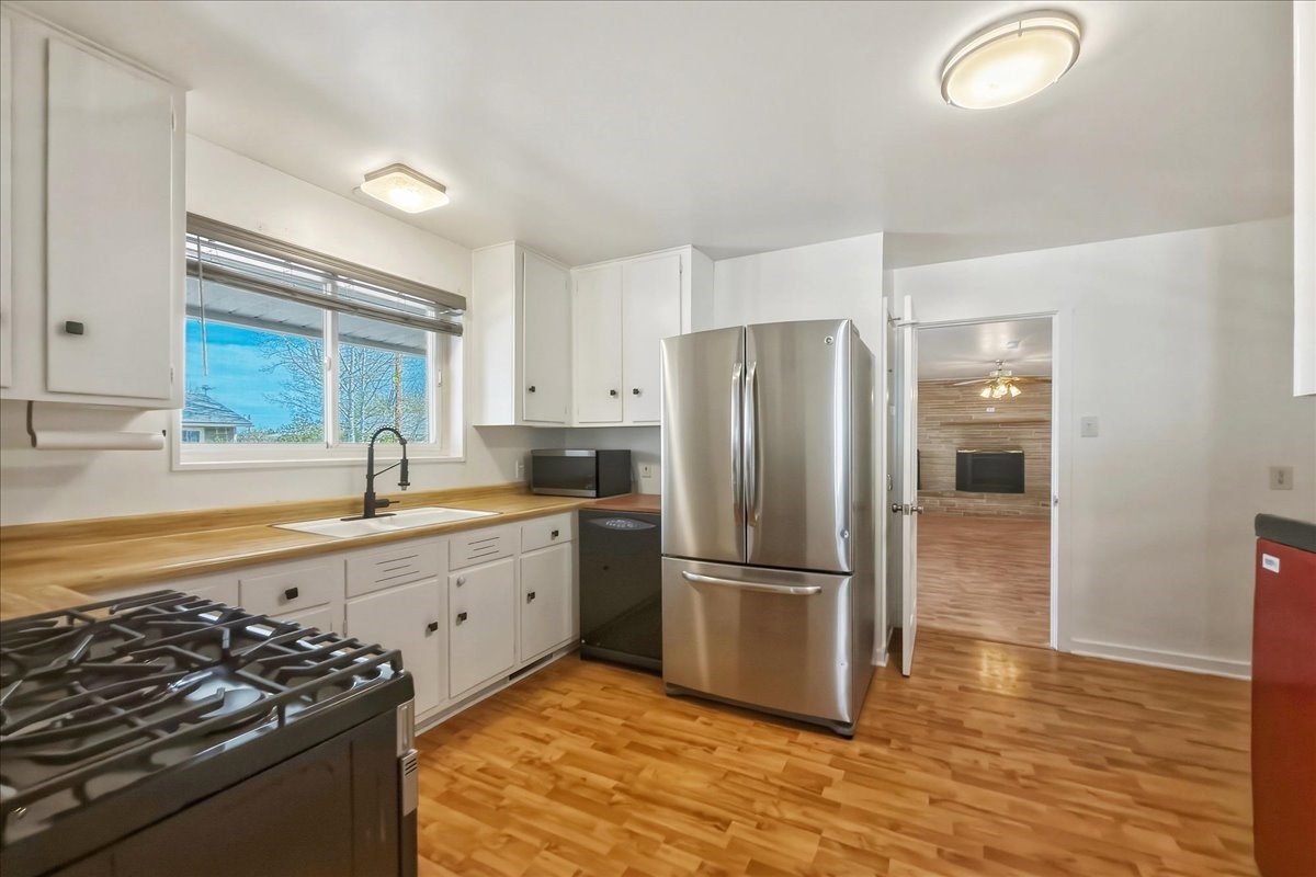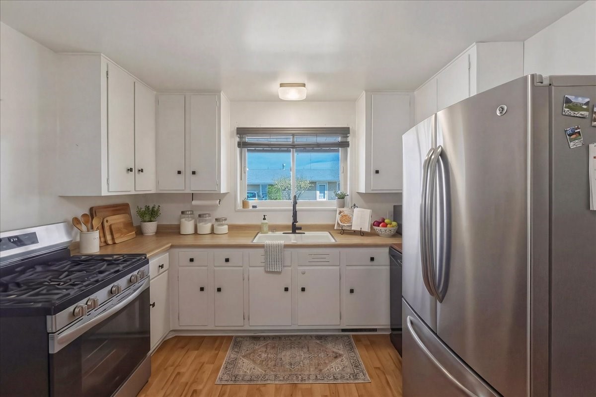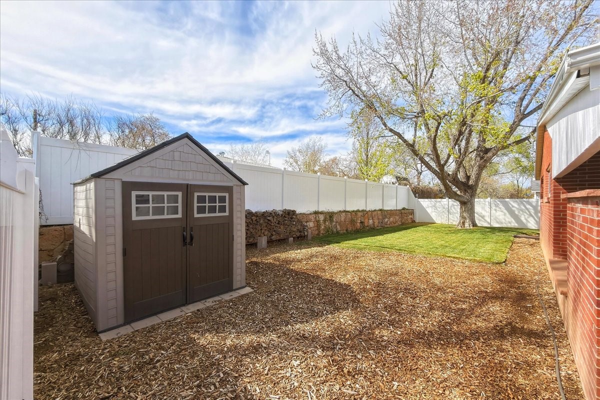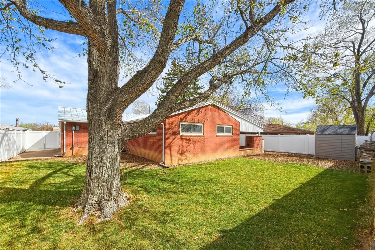 Welcome to this charming, meticulously cared-for home nestled in the heart of downtown! With its classic brick exterior and inviting curb appeal, this property offers both character and convenience--just moments from local amenities while tucked away on a quiet street. Step inside to discover a warm and welcoming interior featuring fresh paint and durable laminate flooring throughout. The spacious living area is perfect for relaxing or entertaining, highlighted by a cozy wood-burning fireplace that adds timeless charm. This home offers three comfortable bedrooms and one well-appointed bathroom, along with the added convenience of a newer washer and dryer and brand new gas range. The one-car garage provides additional storage and functionality. Outside, you'll fall in love with the amazing backyard--complete with mature trees, a sprinkler system, and a fully fenced yard (new Vinyl in 2020), creating a private and peaceful outdoor retreat. Additional upgrades include a new metal ProPanel roof (2023), and new water heater and furnace (2019-2020), and a freshly poured and expanded concrete driveway, all ensuring durability and peace of mind for years to come. This is a wonderful opportunity to own a move-in ready home in a prime location--full of charm, comfort, and thoughtful updates.