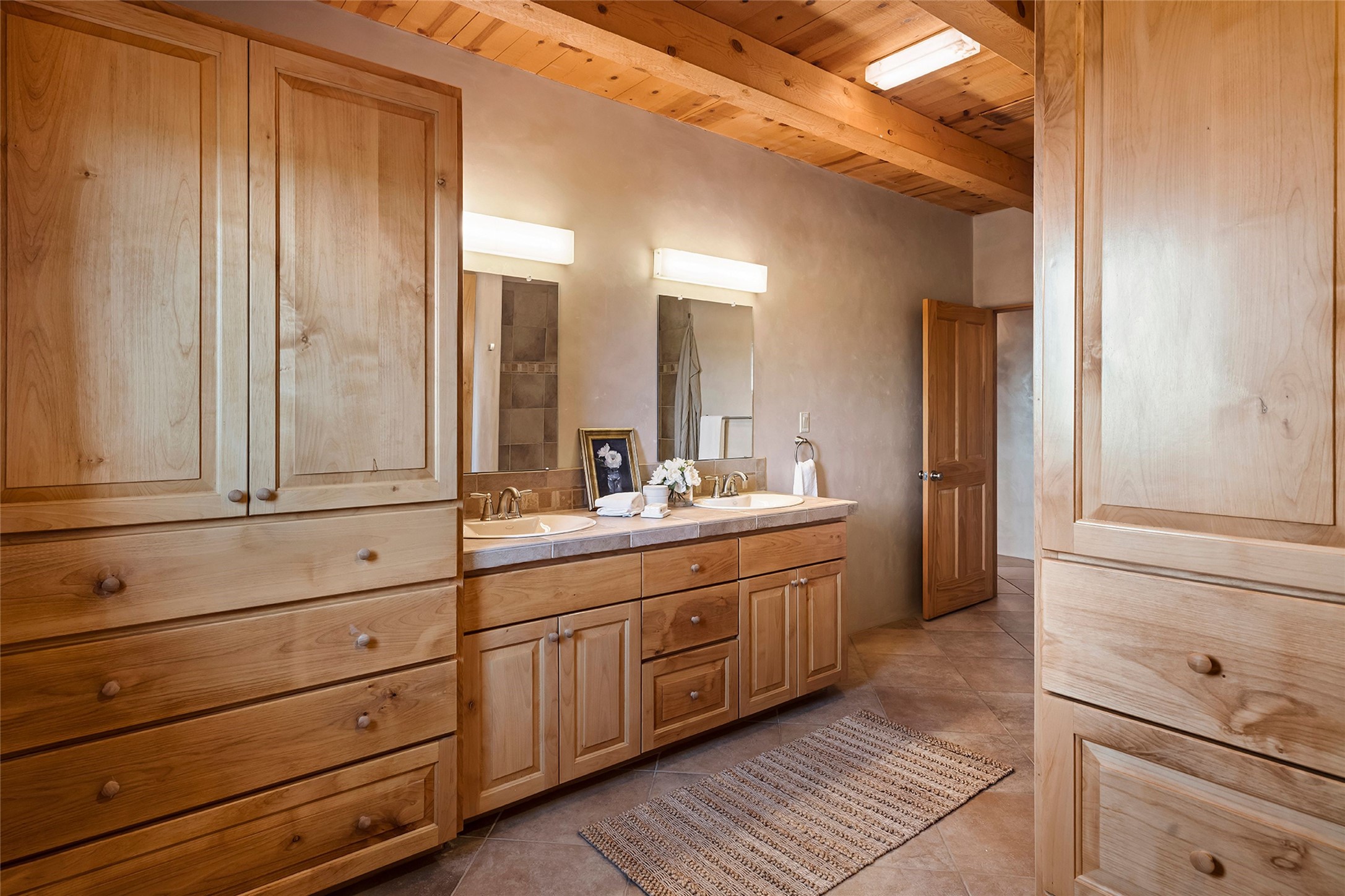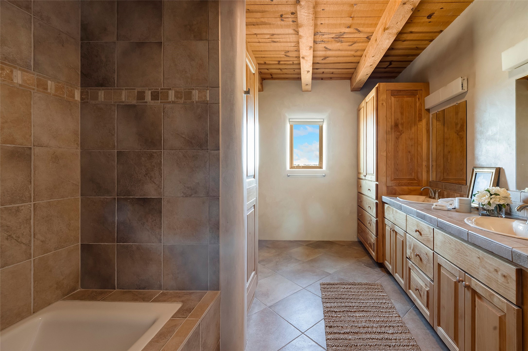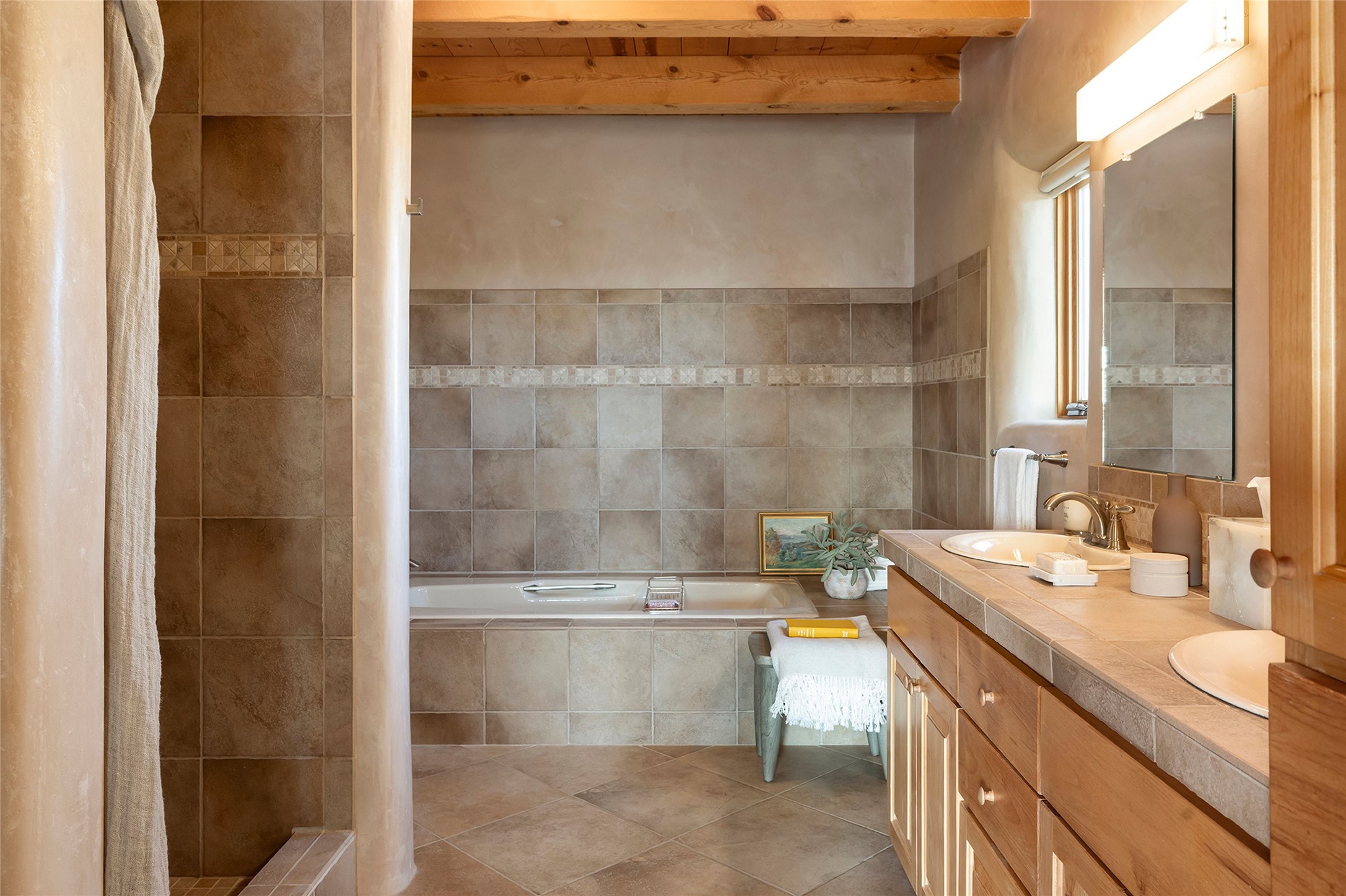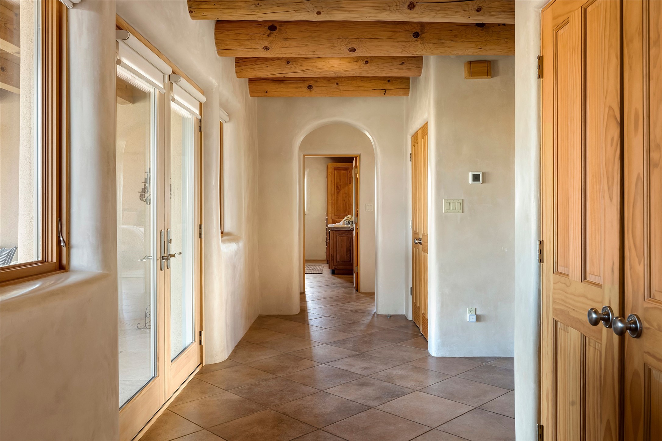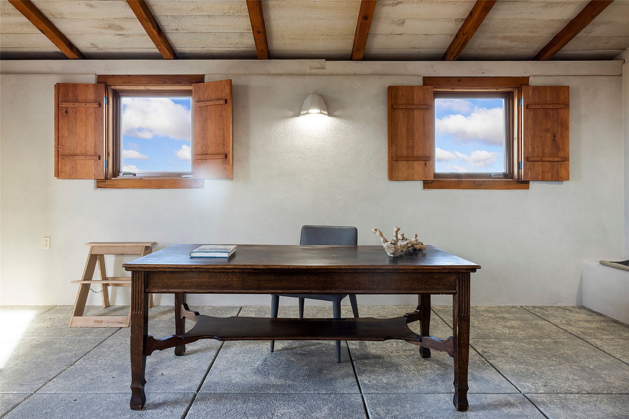 Inspired by the minimalist excellence of the famed Georgia O'Keefe, this 12.5-acre northern New Mexico estate, with horse privileges, is a living canvas where over 3,800 square feet of authentic Santa Fe architecture with an impressive main house and detached studio, captivates with one of most vibrant backdrops of vast mountain ranges and magnificent sunsets. Recently upgraded with quality improvements, this exceptional adobe-built Santa Fe sanctuary with 3 bedrooms and 2 baths within the main house and a private detached studio, sets itself apart with its quality craftsmanship, views, vast acreage, a superior outdoor living experience and flexible use of space. Design features include a stunning living room, anchored by a substantial fireplace, framed mountain views, endless walls for art and dual outdoor access to both courtyards. At its heart lies a professional epicurean kitchen which is well-appointed with Wolf and Sub-Zero appliances, excellent storage and a breakfast bar, all of which opens to the intimate dining room which overlooks the courtyard with expansive views. The luxurious, private owner's suite delights with a Kiva fireplace, French doors leading to the back portal, views and a spa-like bath. Two additional spacious guest bedrooms offer privacy, comfort and views and share an elegant full bath. The property's creative pulse is found in the custom detached studio which offers a light-drenched space with scored concrete floors, a wood-burning fireplace and offers endless possibilities for use. Additional highlights include quality windows which frame long-range mountain views, no interiors steps, warm plaster walls, authentic vigas and wood planked ceilings, neutral finishes throughout, fully enclosed front and back courtyards, a large 3-car garage, vibrant landscape and updated hardscape. ThisSanta Fe home is a rare find and offers a seamless blend of high desert luxury and the rugged, artistic spirit of the land.