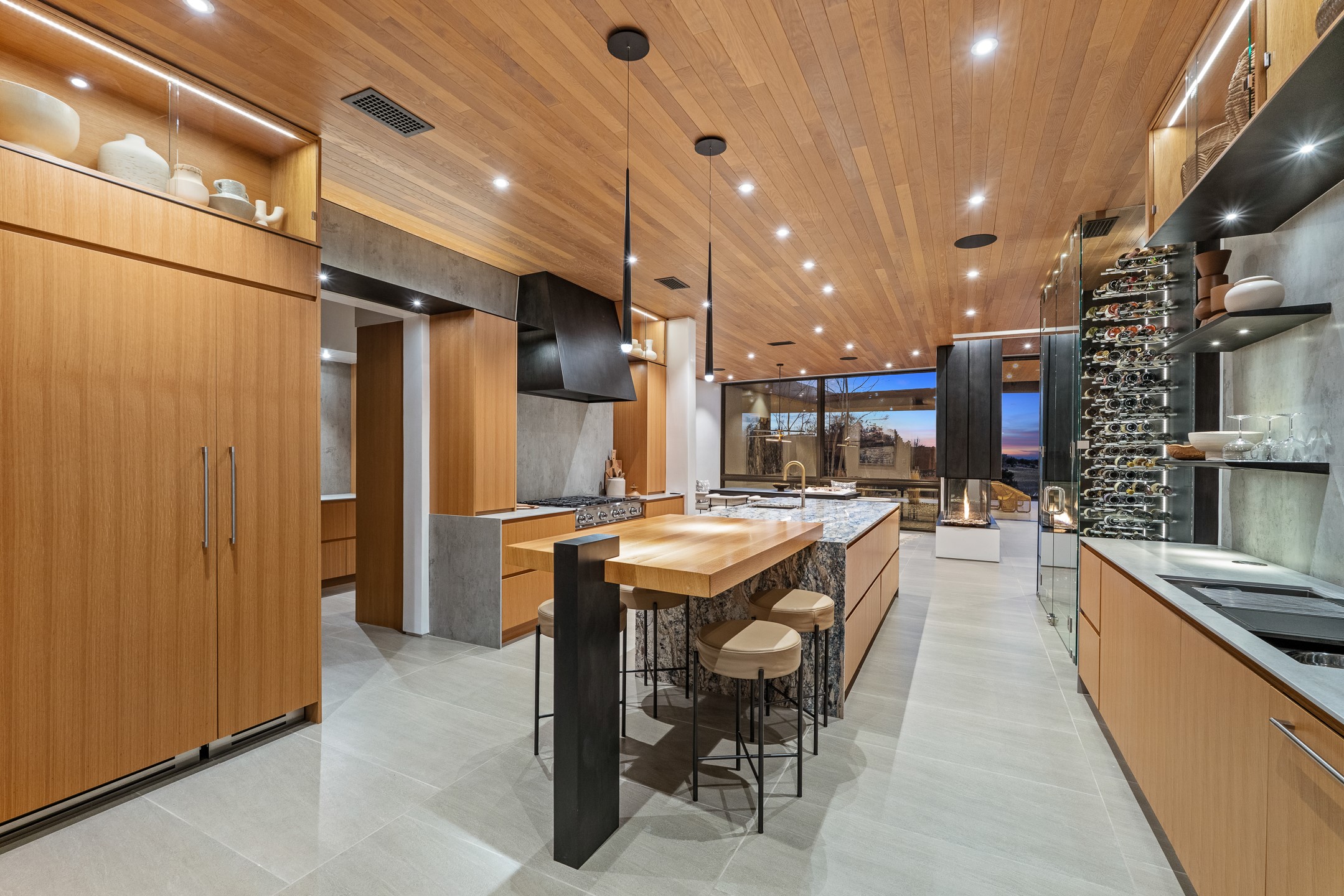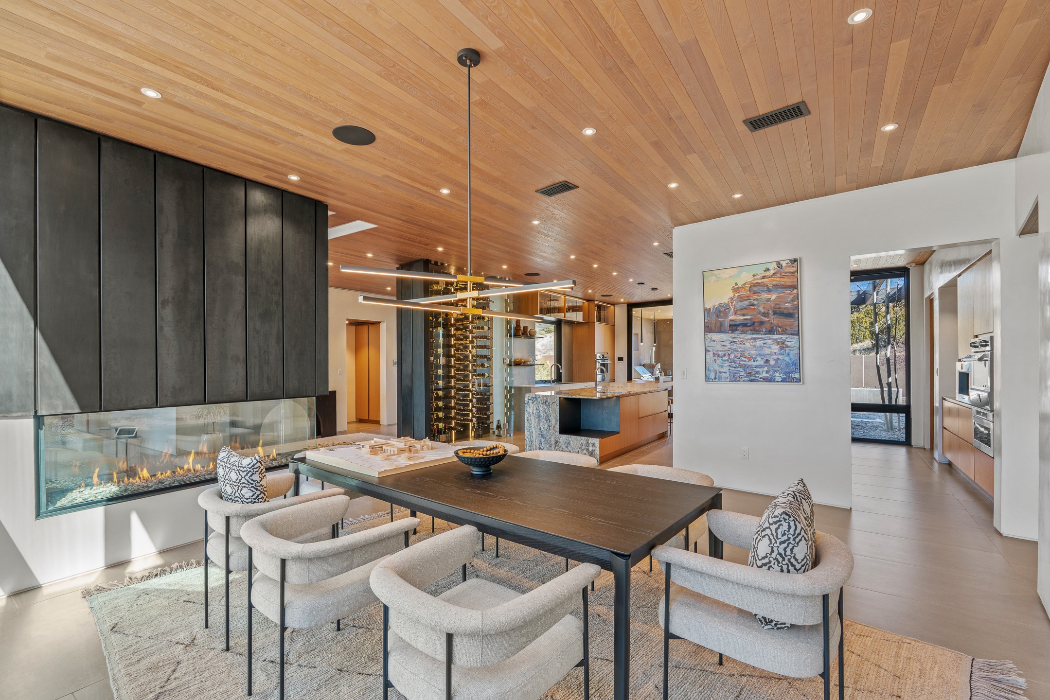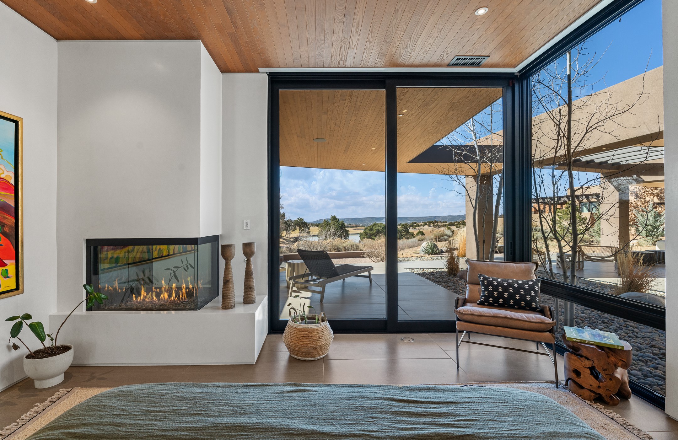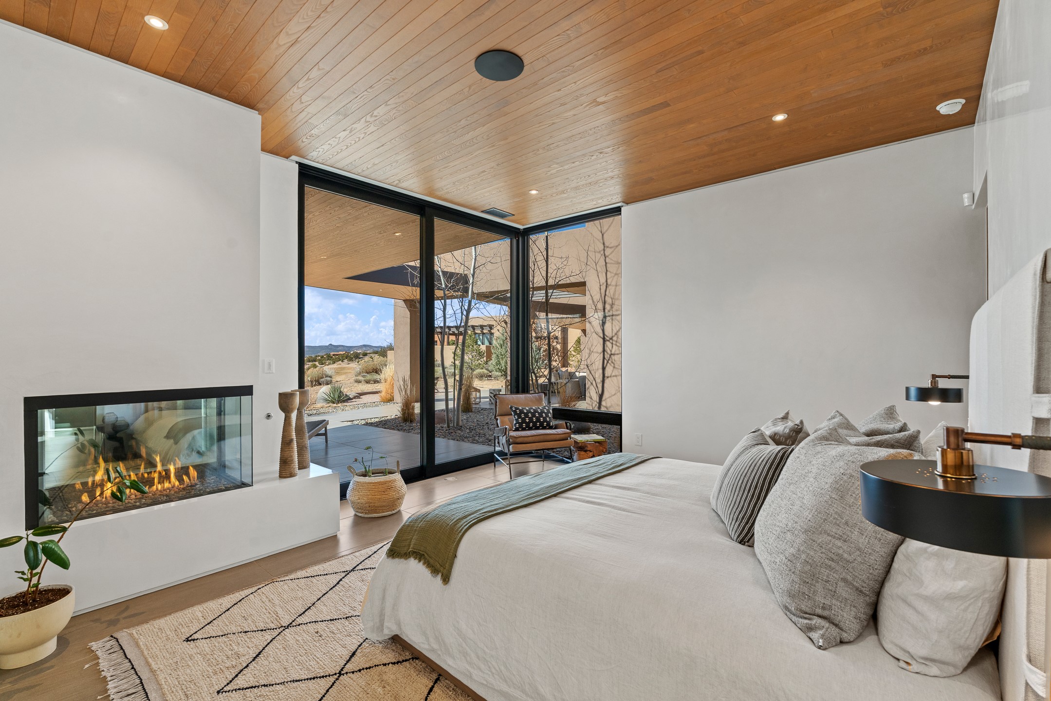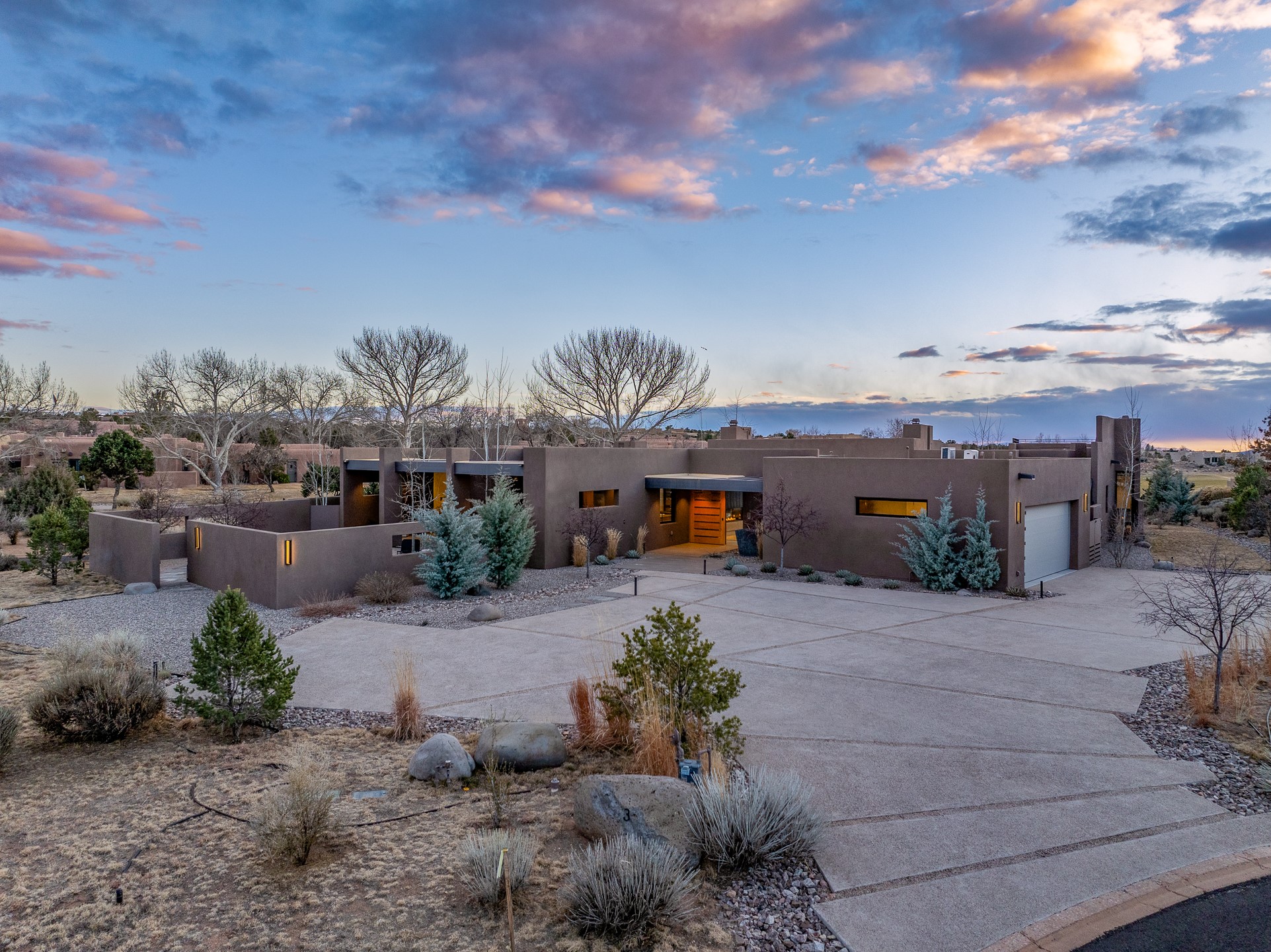 A five-minute walk to the Las Campanas clubhouse. Positioned along the 18th fairways of both the Sunrise and Sunset courses. Lake views. Open horizon.Built in 2023 by Zachary & Sons and awarded for Excellence in Craftsmanship, this residence transcends recognition. It is singular and about design at its highest level.From the moment you enter, the architecture pulls you forward. Walls of glass retract at the touch of a button, dissolving the boundary between interior and landscape. The living space opens completely to sky, water, and green. Effortless. Intentional.A sleek double-sided fireplace anchors the living and dining areas, while the kitchen -- architectural in both form and finish -- features Neolith surfaces, steel and natural stone detailing, and professional-grade Hestan appliances. Steel and stone meet softened plaster and glass, creating depth without excess. Every material was chosen for impact, not ornament.Outdoor living is not an addition here -- it is integral. Covered dining, built-in grill and pizza oven, fire features, and a rooftop deck designed for Milky Way evenings.The single-level floor plan offers two primary suites and a private attached guest casita, allowing flexibility without sacrificing intimacy.Steel. Stone. Fire. Glass. Horizon.3 Sendero Centro is not simply a home.It is a statement.