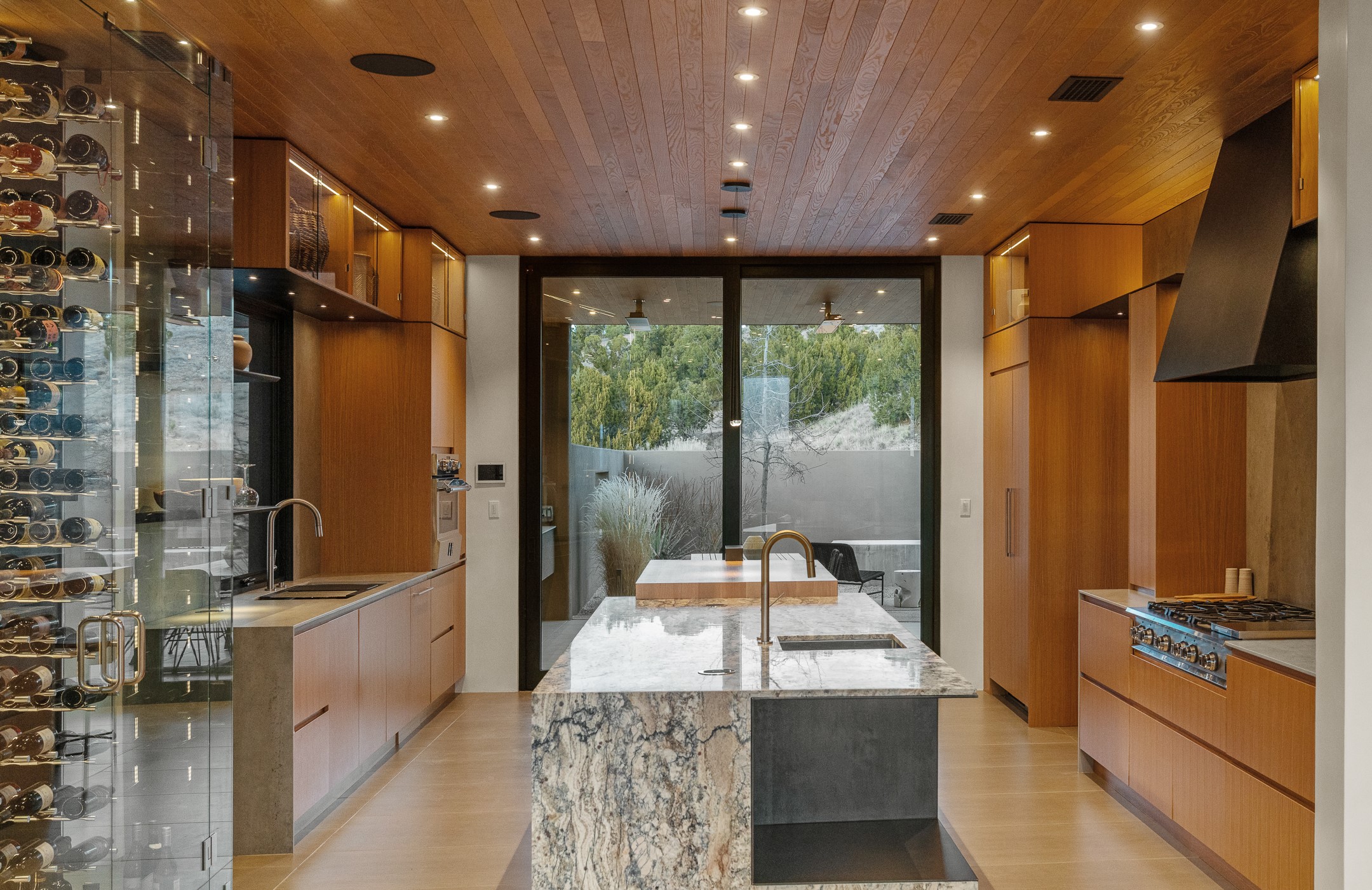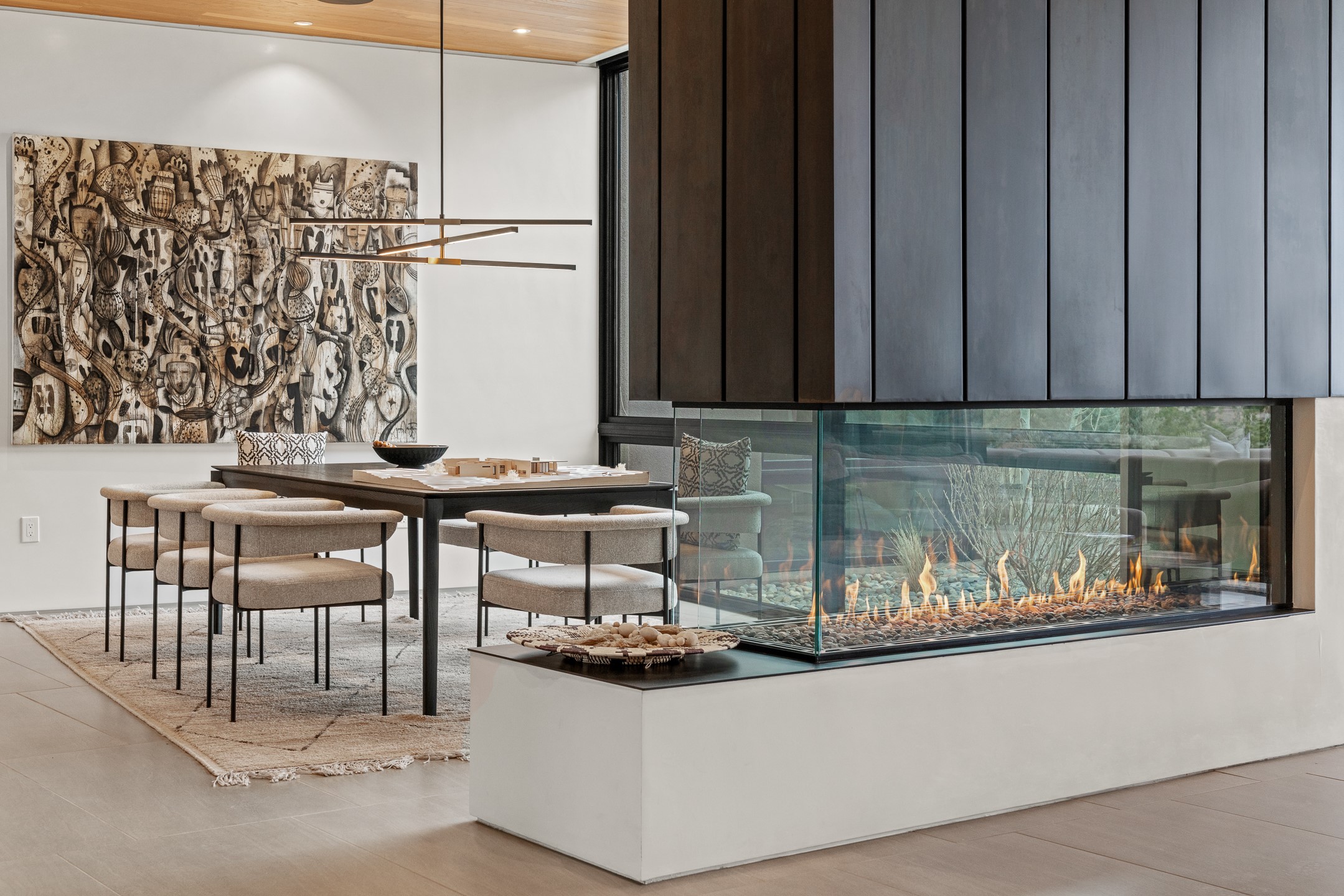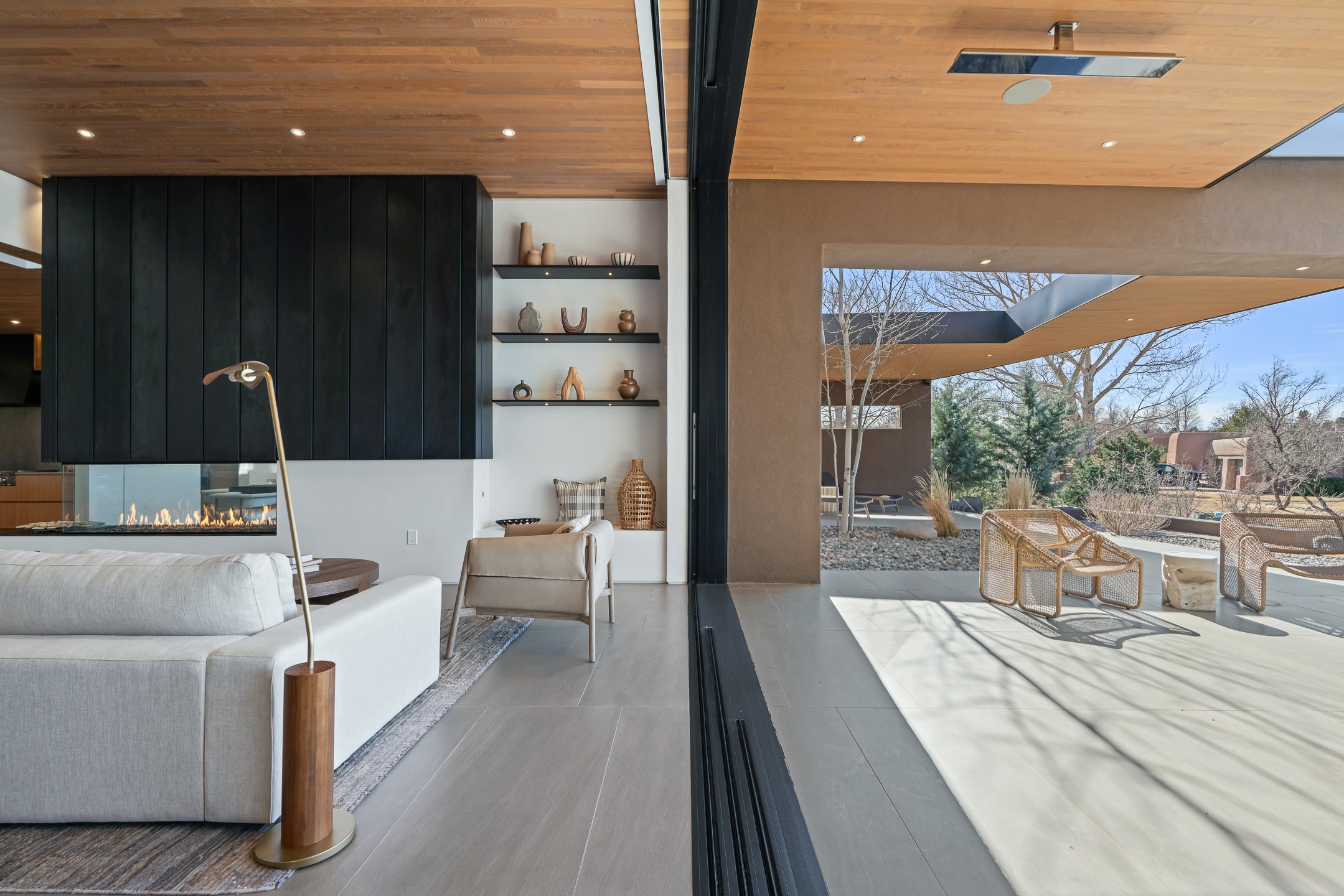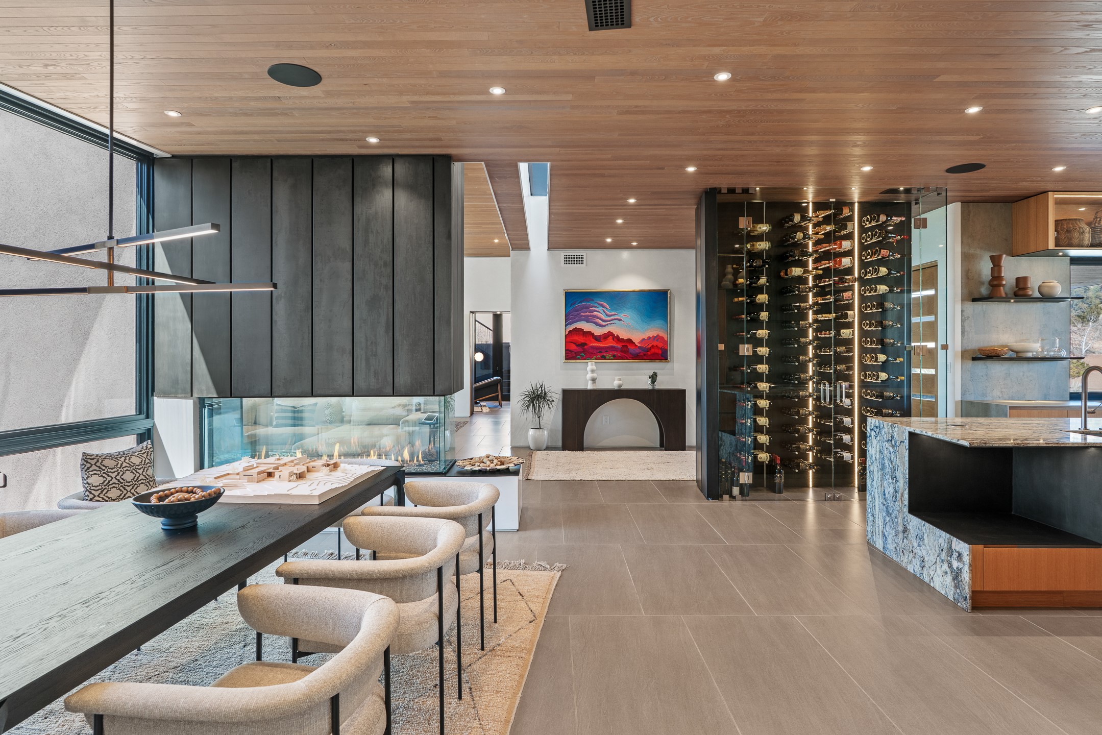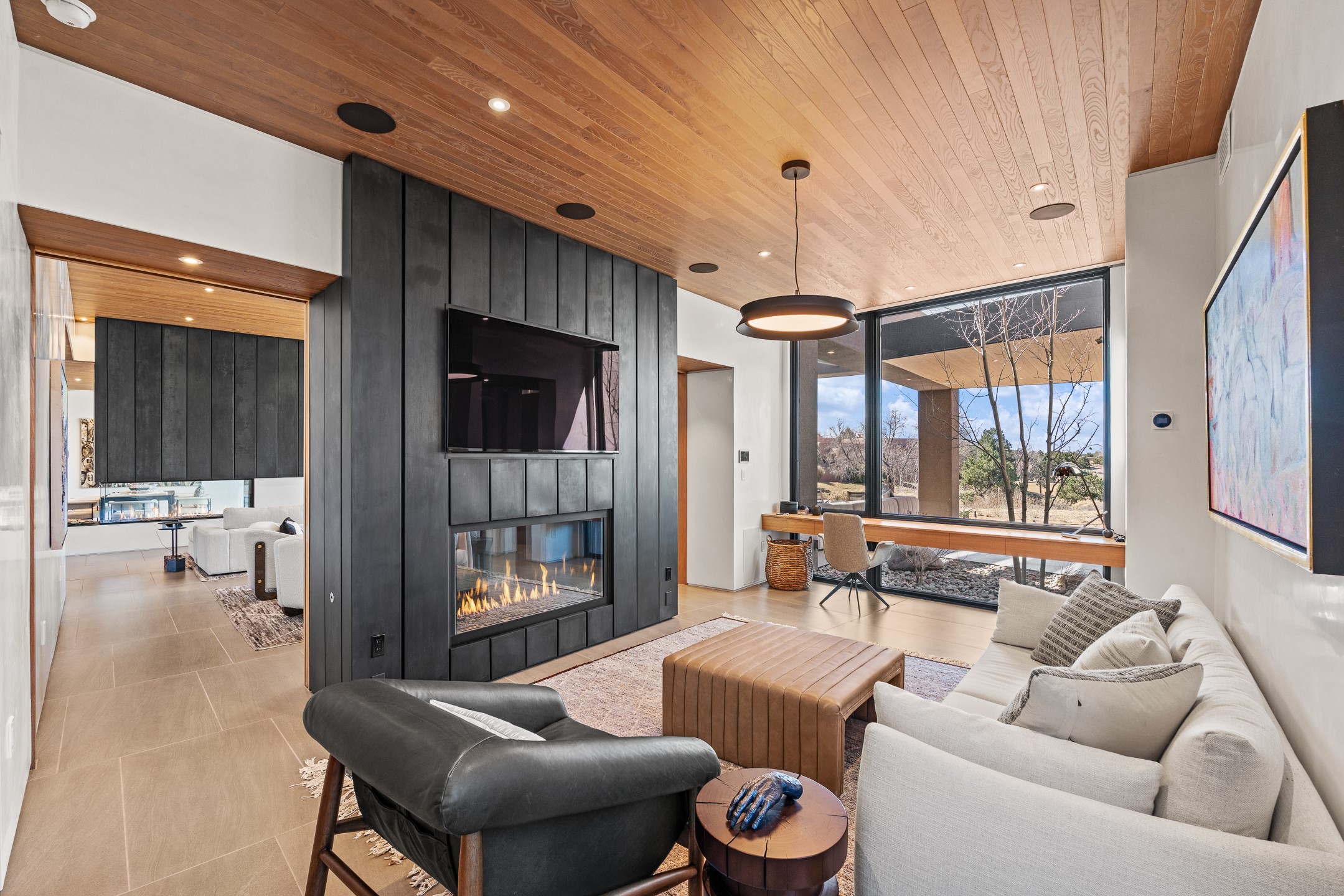 A five-minute walk to the Las Campanas clubhouse. Positioned along the 18th fairways of both the Sunrise and Sunset courses. Lake views. Open horizon.Built in 2023 by Zachary & Sons and awarded for Excellence in Craftsmanship, this residence transcends recognition. It is singular and about design at its highest level.From the moment you enter, the architecture pulls you forward. Walls of glass retract at the touch of a button, dissolving the boundary between interior and landscape. The living space opens completely to sky, water, and green. Effortless. Intentional.A sleek double-sided fireplace anchors the living and dining areas, while the kitchen -- architectural in both form and finish -- features Neolith surfaces, steel and natural stone detailing, and professional-grade Hestan appliances. Steel and stone meet softened plaster and glass, creating depth without excess. Every material was chosen for impact, not ornament.Outdoor living is not an addition here -- it is integral. Covered dining, built-in grill and pizza oven, fire features, and a rooftop deck designed for Milky Way evenings.The single-level floor plan offers two primary suites and a private attached guest casita, allowing flexibility without sacrificing intimacy.Steel. Stone. Fire. Glass. Horizon.3 Sendero Centro is not simply a home.It is a statement.