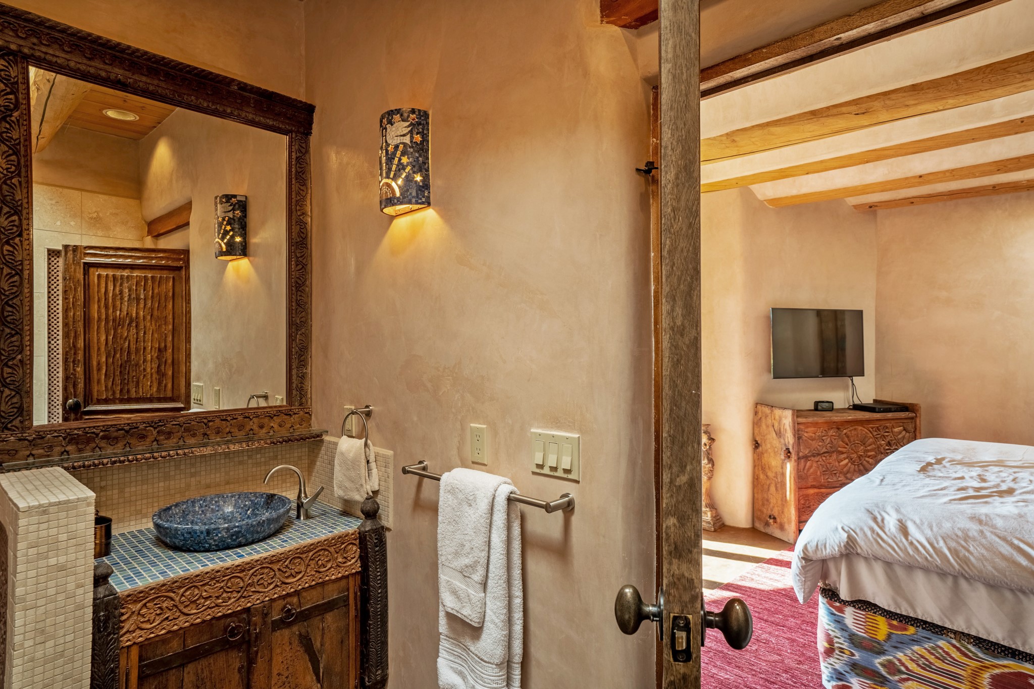 1564 Cerro Gordo Road is a Seret family legacy property, the legendary designers whose vision have shaped Santa Fe style for over five decades. This isn't simply a beautifully appointed 5-bedroom, 5-bathroom compound spanning 5,398 square feet across three distinct structures on 1.5 lush acres. It's a living testament to a remarkable journey that began in the mountains of Afghanistan in 1968 and transformed the way the world thinks about textiles, furniture, and global design.This estate carries the Seret signature, having been curated with the same discerning eye that created The Inn of the Five Graces, and other well-known properties around the world, with authentic architectural treasures. An East meets West aesthetic, where ancient craftsmanship meets contemporary living, and every detail invites you to experience a feast for the senses. The compound is surrounded by the best of Santa Fe's natural beauty, with stunning views of Picacho Peak, and the Dorothy Stewart Trail. Enjoy ultimate serenity and unwind to the sounds of the Santa Fe river running just behind the property. This is more than a home. It's a piece of Santa Fe history, and a rare opportunity to own a property that tells the story of creativity, global adventure, and the very spirit that defines our city.