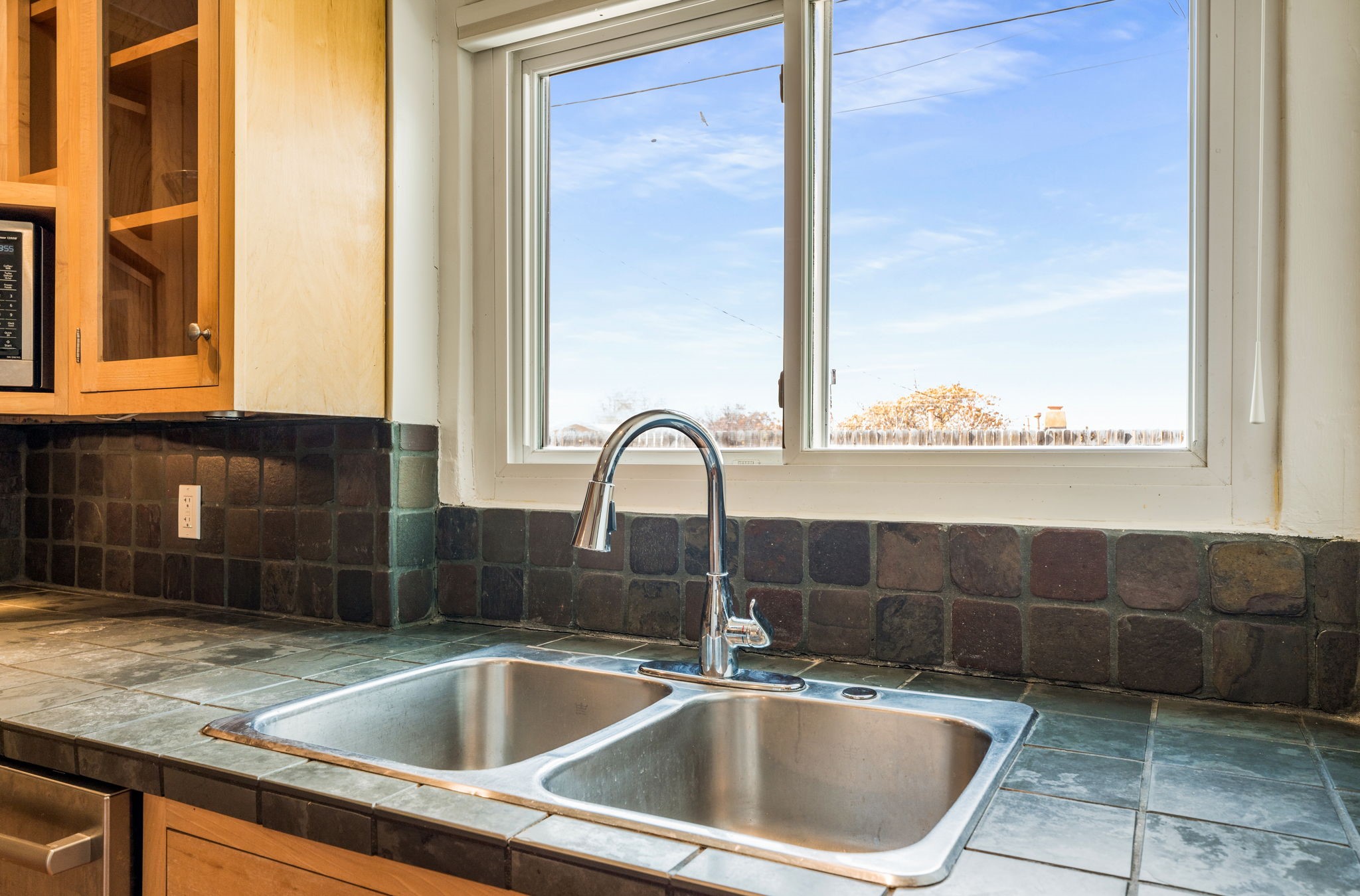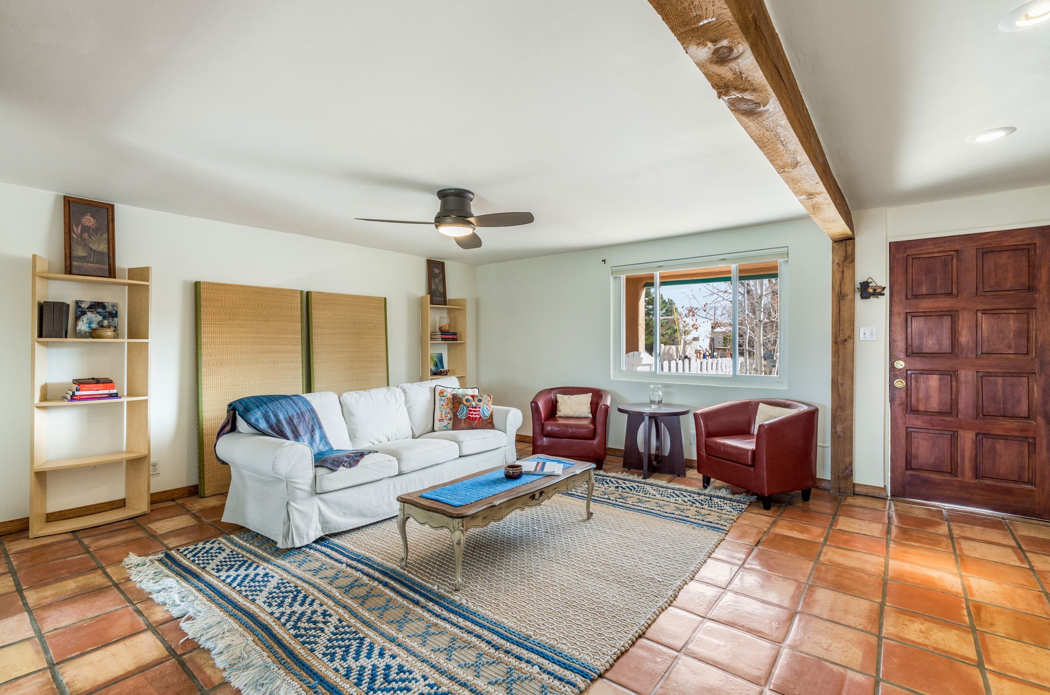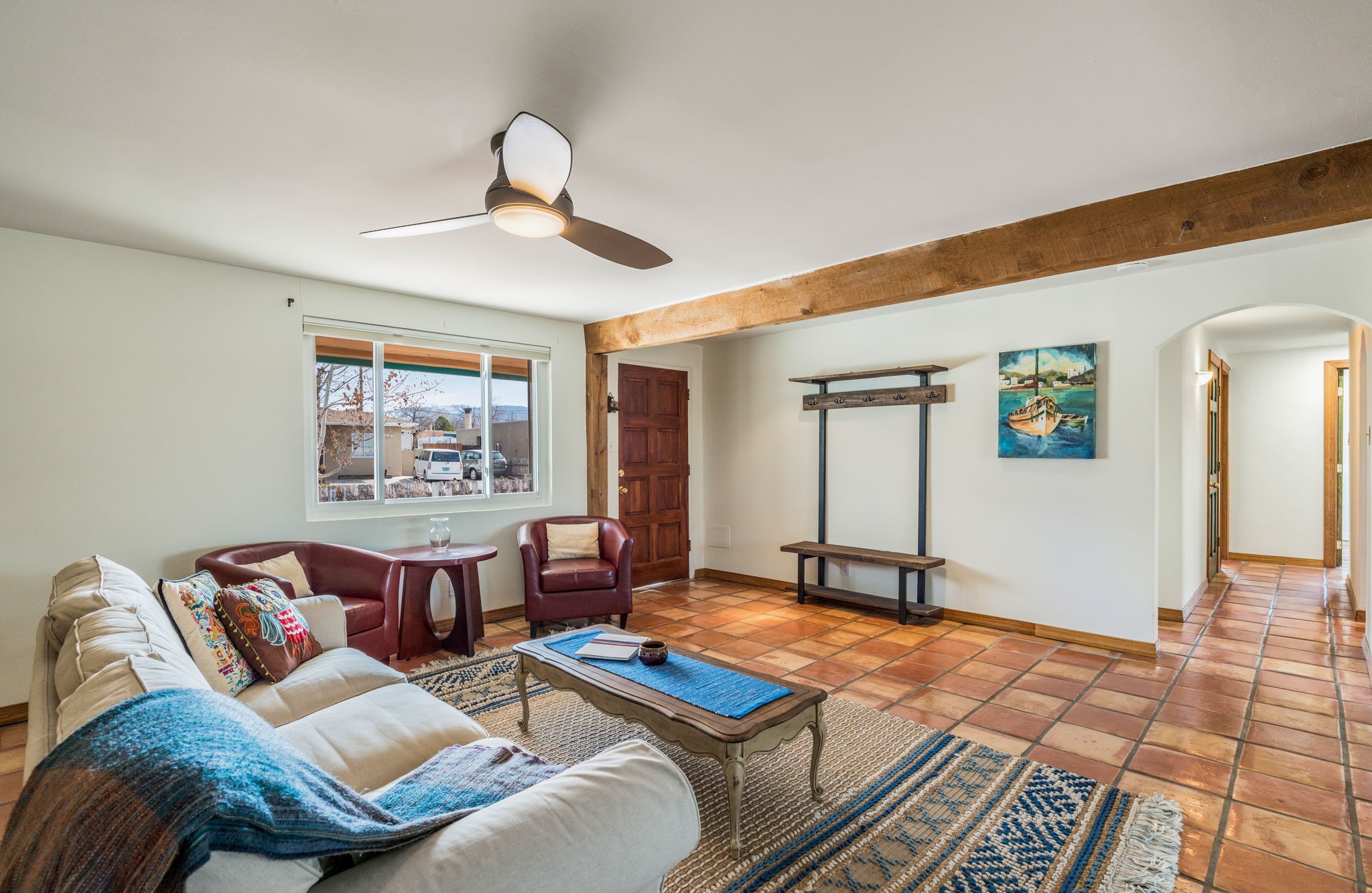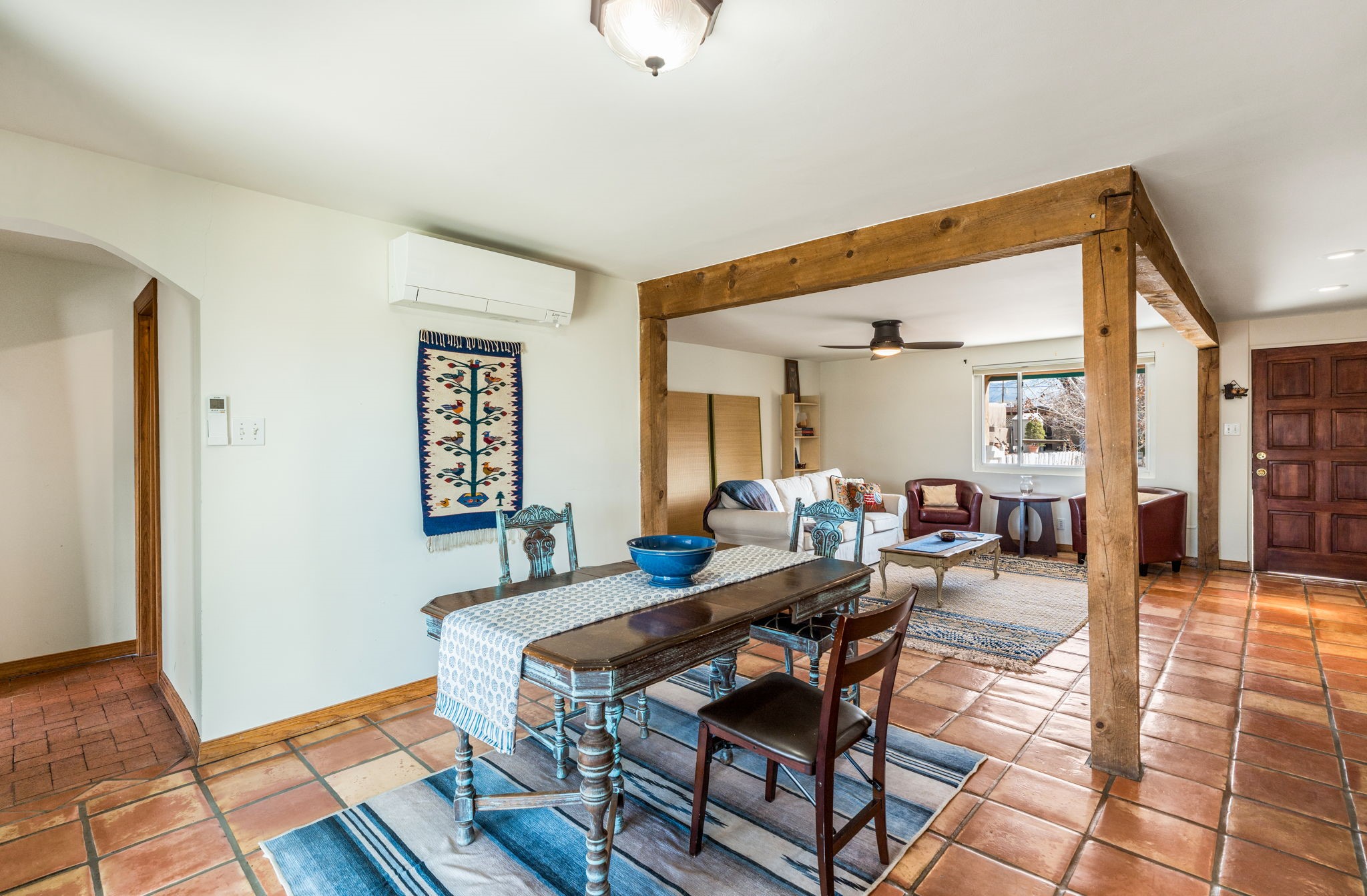 Discover comfort, charm, and versatility in this spacious Casa Solana home, perfectly positioned to enjoy the best of Santa Fe living. With three bright bedrooms and a generous studio space, this home offers the flexibility you've been looking for--ideal for creative pursuits, a home office, or guest accommodations.The inviting studio is a standout feature, showcasing warm brick floors and two sets of elegant French doors that open onto covered portals and a large, fully fenced backyard, replete with apple and peach trees.. Whether you're entertaining, working from home, or simply relaxing, this indoor-outdoor connection creates a wonderful sense of openness and light.Throughout the main living areas, classic Saltillo tile floors add timeless Southwestern character. The expansive living room is beautifully framed by wood posts and beams and offers lovely views of the Sangre de Cristo Mountains--an inspiring backdrop for everyday living. The dining room is filled with natural light and features a sliding glass door that leads directly to the covered portal and backyard, making outdoor dining and gatherings effortless.The updated kitchen is both stylish and functional, with attractive cabinetry and newer stainless steel appliances, including a modern induction stove that home cooks will appreciate.All three bedrooms are filled with natural light and equipped with ceiling fans for comfort. The bathroom has been tastefully updated, and the home also includes newer high-efficiency washer and dryer units. Year-round comfort is ensured with efficient mini-split systems for both heating and cooling.A one-car garage completes the package, while the home's location puts you just moments from the Solana Center, neighborhood coffee shops, restaurants, and city parks.Warm, welcoming, and full of character--this Casa Solana gem is not to be missed.