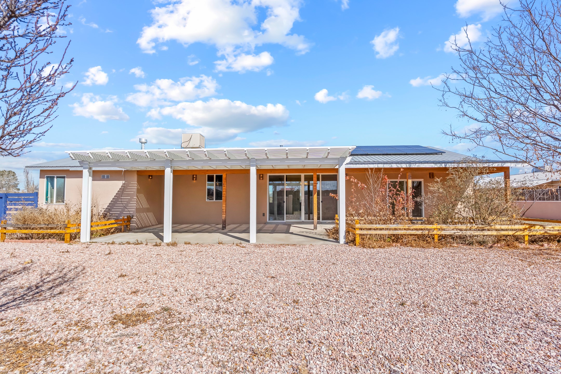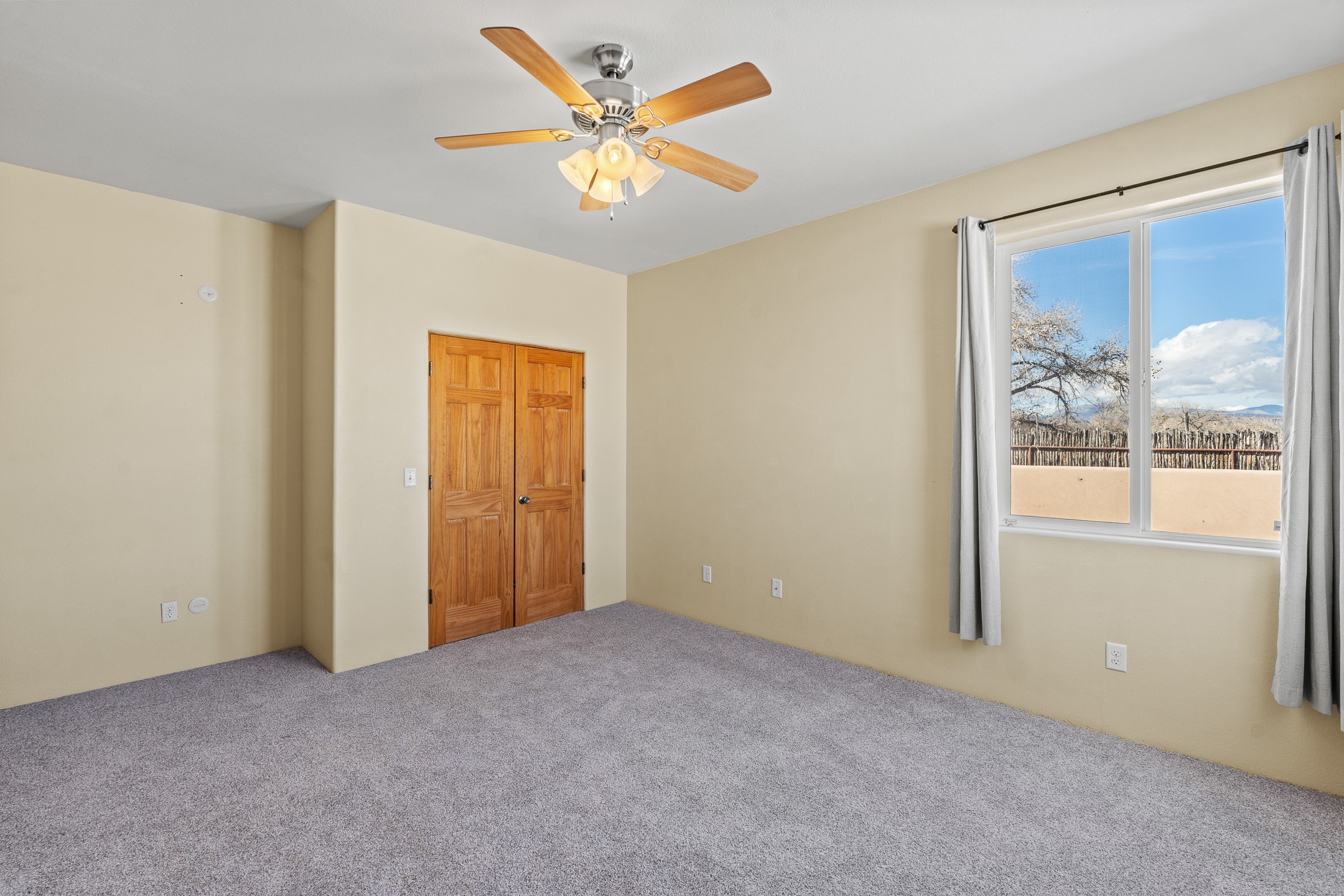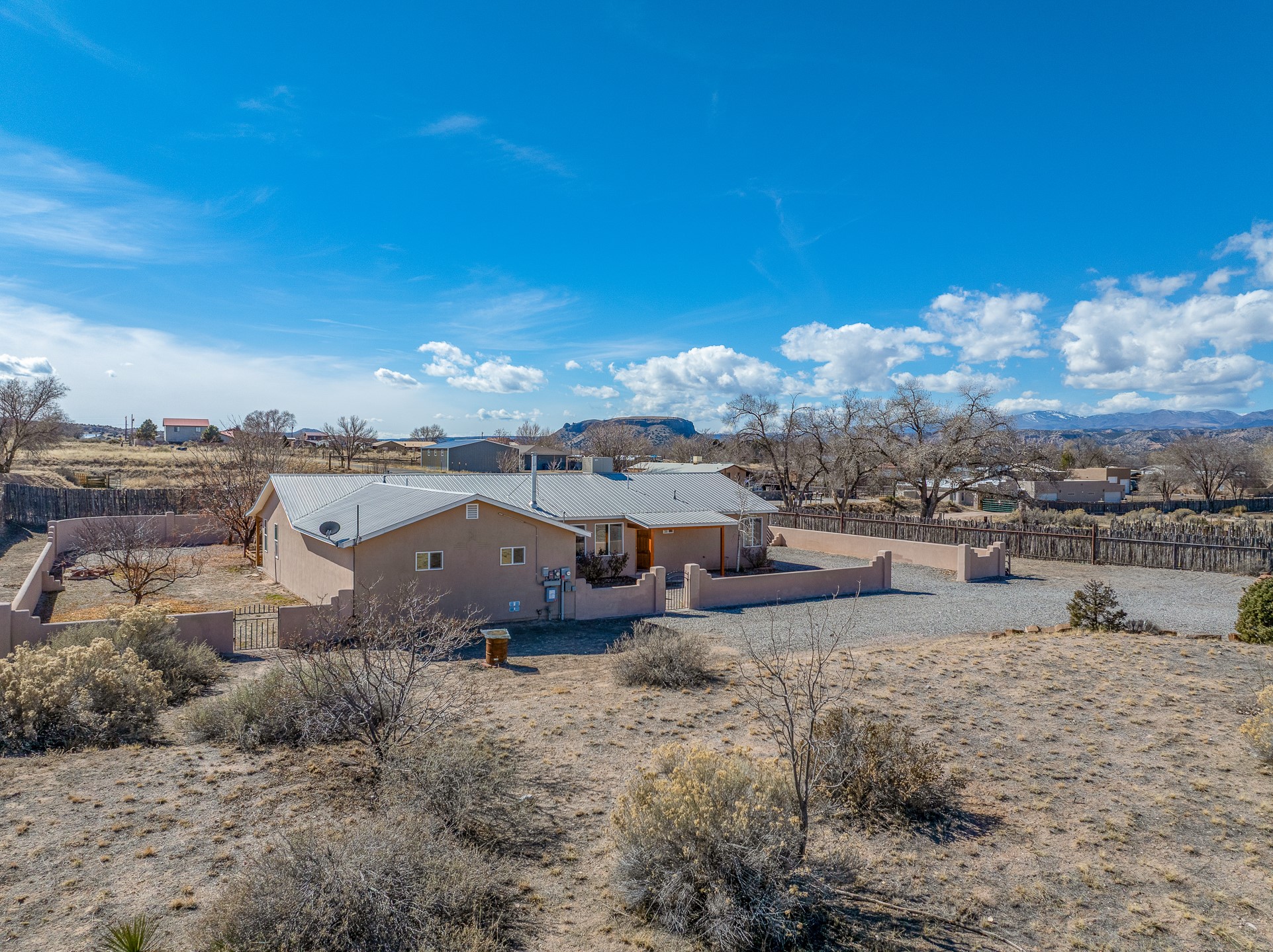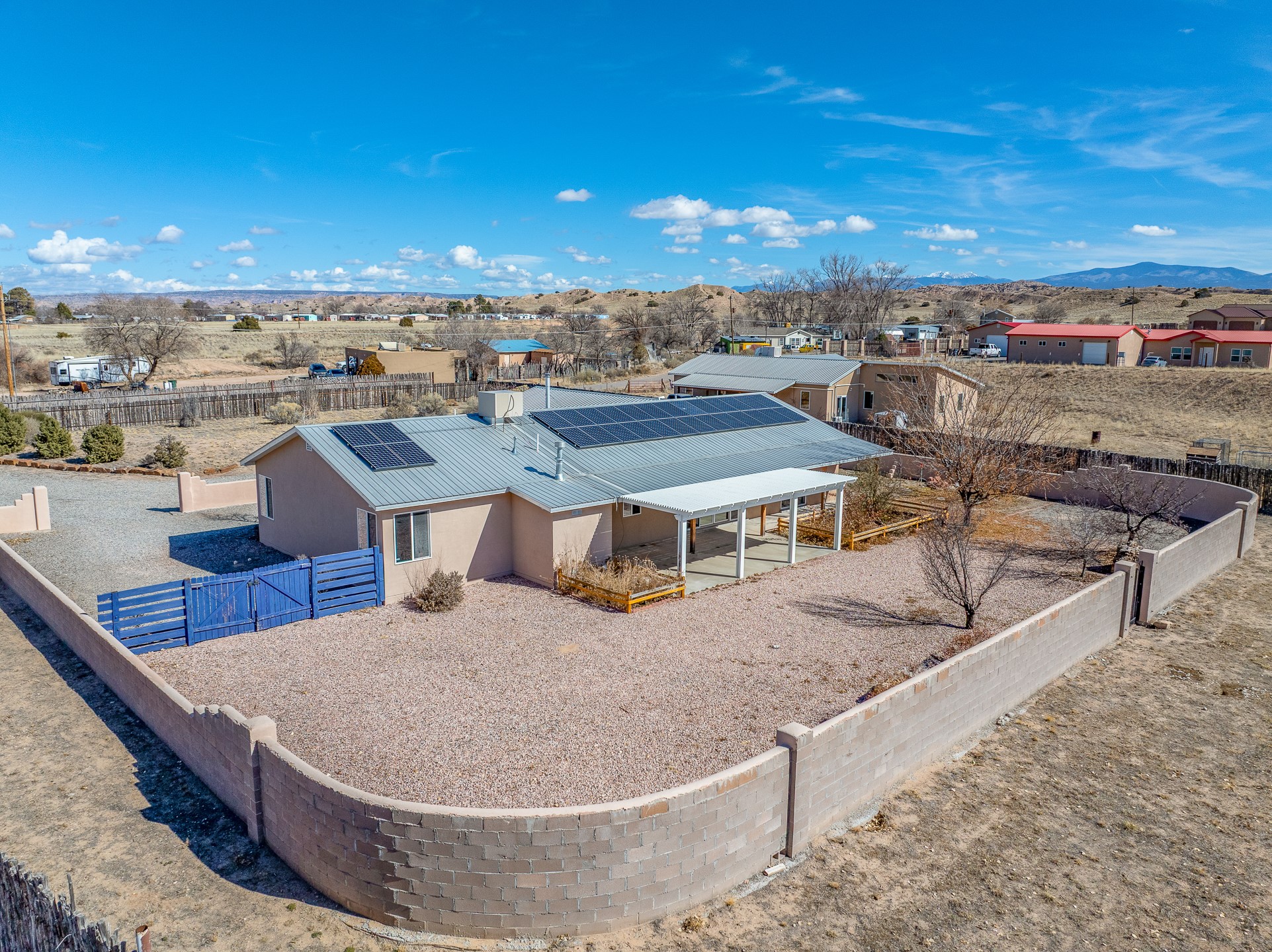 A beautifully maintained home offering comfort, efficiency, and an exceptional Northern New Mexico lifestyle located in the desirable community of La Mesilla. This thoughtfully designed 2,450 square foot residence features three bedrooms and two baths with excellent separation between sleeping spaces, creating privacy and flexibility for family or guests. The open-concept kitchen, dining, and living area forms the heart of the home, ideal for both everyday living and entertaining. Generous natural light and a seamless flow between spaces create an inviting and comfortable atmosphere. The kitchen opens effortlessly to the main living area, allowing you to stay connected while preparing meals or hosting gatherings. Spacious bedrooms and well-appointed baths complement the functional layout, while the oversized two-car garage provides ample room for vehicles, storage, and hobbies. Meticulously maintained inside and out, the property showcases extensive landscaping with seven mature fruit trees, offering beauty, shade, and seasonal harvests. A 10kW solar system adds significant energy efficiency and long-term cost savings. Located in La Mesilla, the home enjoys access to outstanding nearby hiking and outdoor recreation while maintaining an easy commute to both Santa Fe and Los Alamos -- making it an ideal balance of tranquility and convenience. 2 Mesilla Verde is a rare opportunity to enjoy thoughtful design, sustainable living, and the natural beauty that makes Northern New Mexico so special.