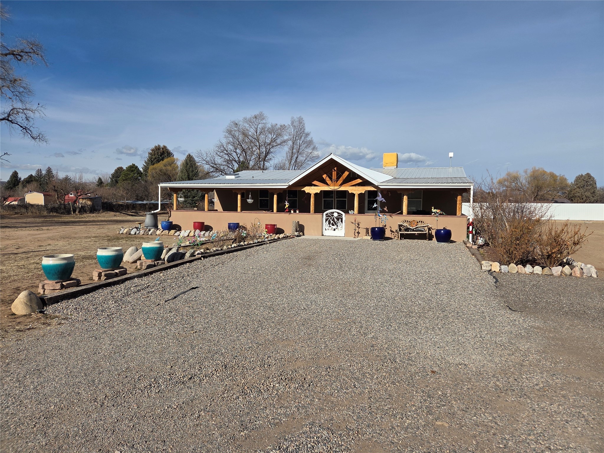 2 Homes on 1.97 acres in beautiful Upper San Pedro. Private location at the end of County Road 24. First home is 3 bedrooms 2 bathrooms with a full-length covered portal. Many updates include a metal roof, stucco, windows, added insulation, laminate flooring, lighting, cabinets and granite countertops. Second home is 2 bedrooms 2 bathrooms with attached decks at front and back entrances. Each residence has its own electric meter, gas meter and septic system. Live in one home and rent the other. Land has a private well, irrigation water rights and storage sheds.