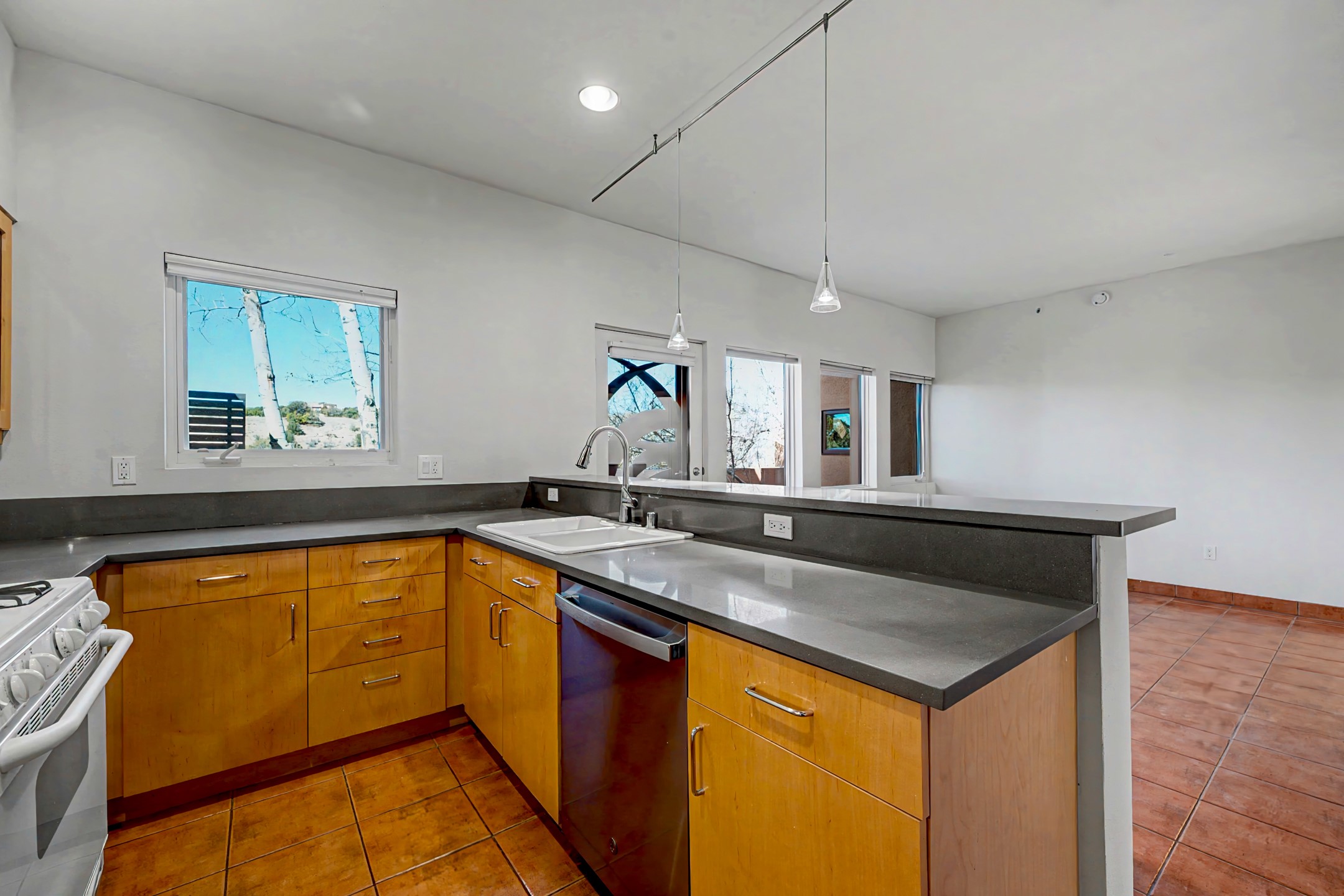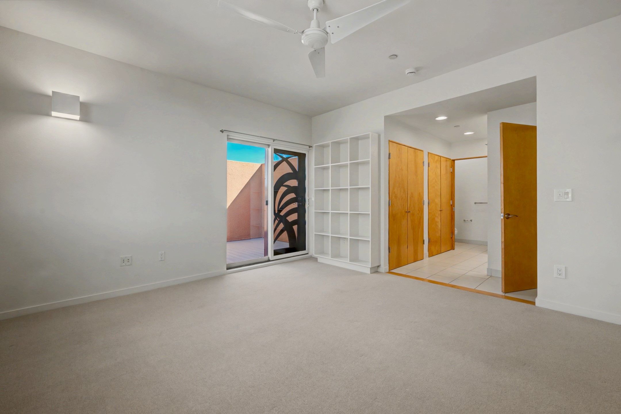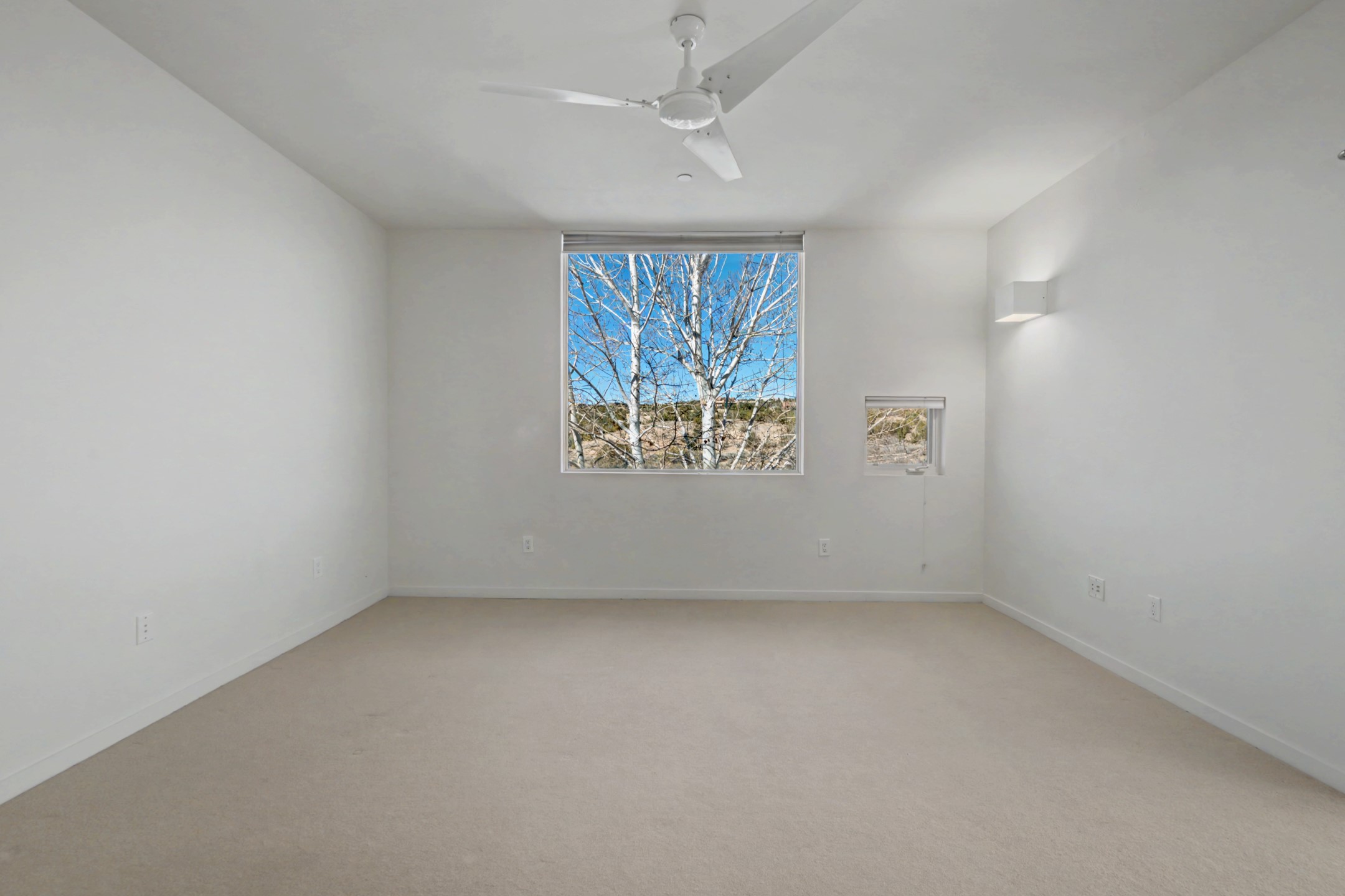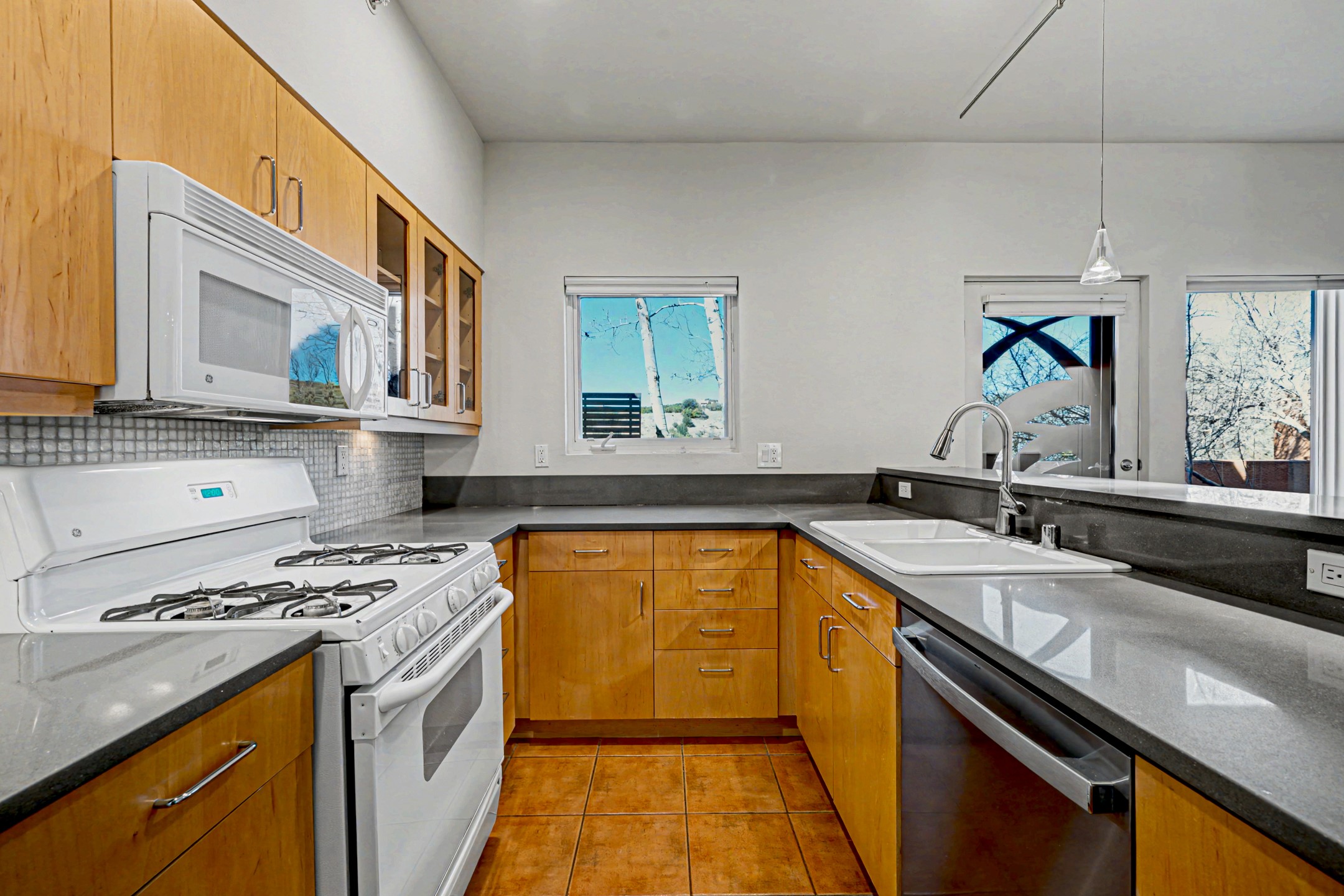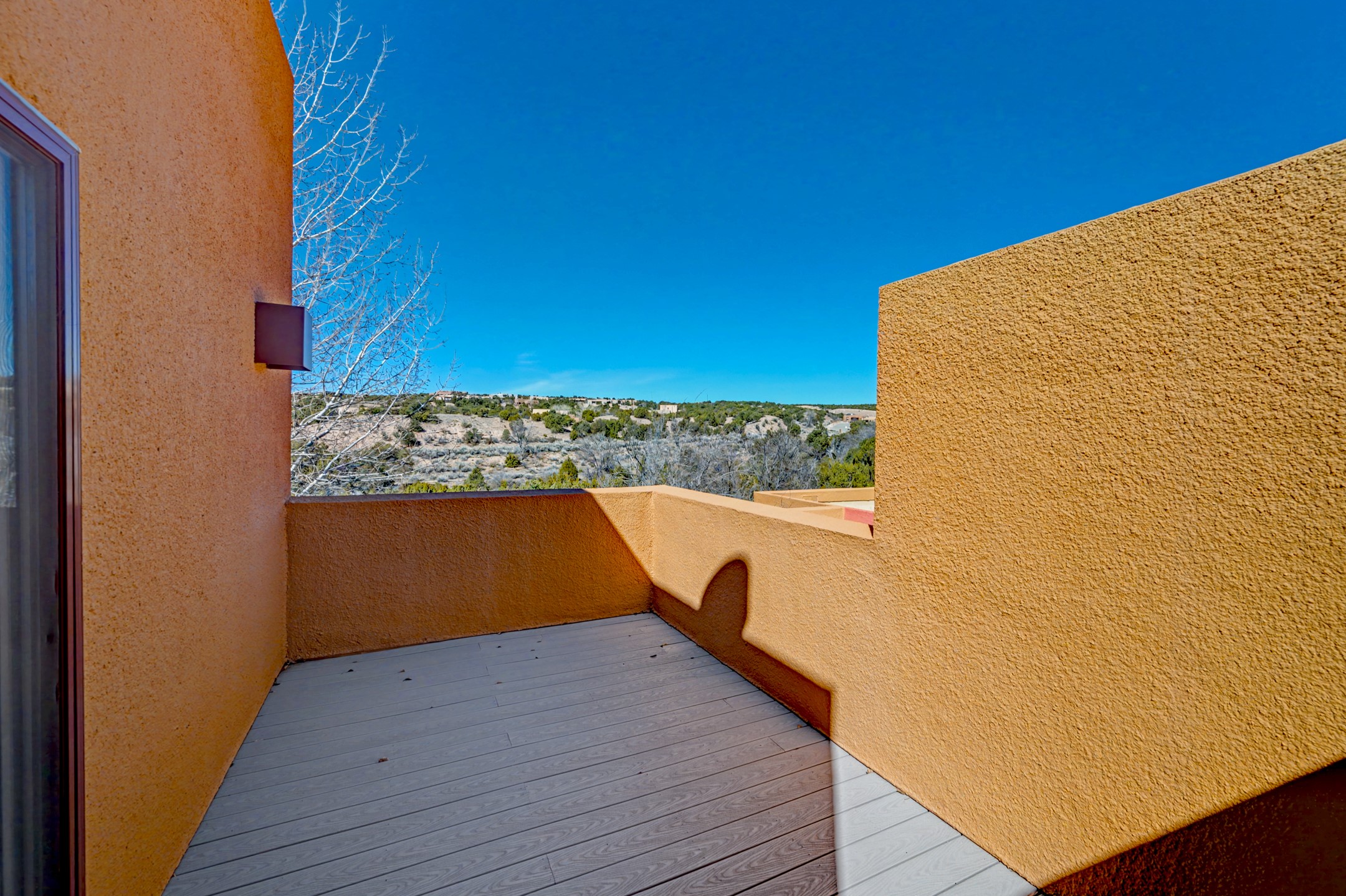 An exceptional offering within the acclaimed Zocalo community, this coveted Barranca floor plan embodies the bold geometry and timeless warmth that define Ricardo Legorreta's architecture. Designed for effortless main-level living, the first floor features a spacious primary suite, an attached two-car garage, open-concept kitchen, dining, and living areas, a powder bath, and direct access to a private patio--creating seamless indoor-outdoor flow. Upstairs, a second primary suite with its own bath offers ideal privacy for guests or multigenerational living. Perfectly positioned to capture sweeping western views over the natural arroyo, the home is bathed in afternoon light and dramatic sunset skies. Elevated finishes and thoughtful enhancements include quartz solid-surface kitchen countertops, luxurious light travertine tile in the primary bath, in-floor radiant heat, built-in shelving, additional security screen doors, and trex decking. Residents of Zocalo enjoy resort-style amenities including a clubhouse, pool, spa, and fitness facilities--all just minutes from the shopping, dining, and cultural vibrancy of downtown Santa Fe. Architecturally significant. Beautifully appointed. Ideally located.