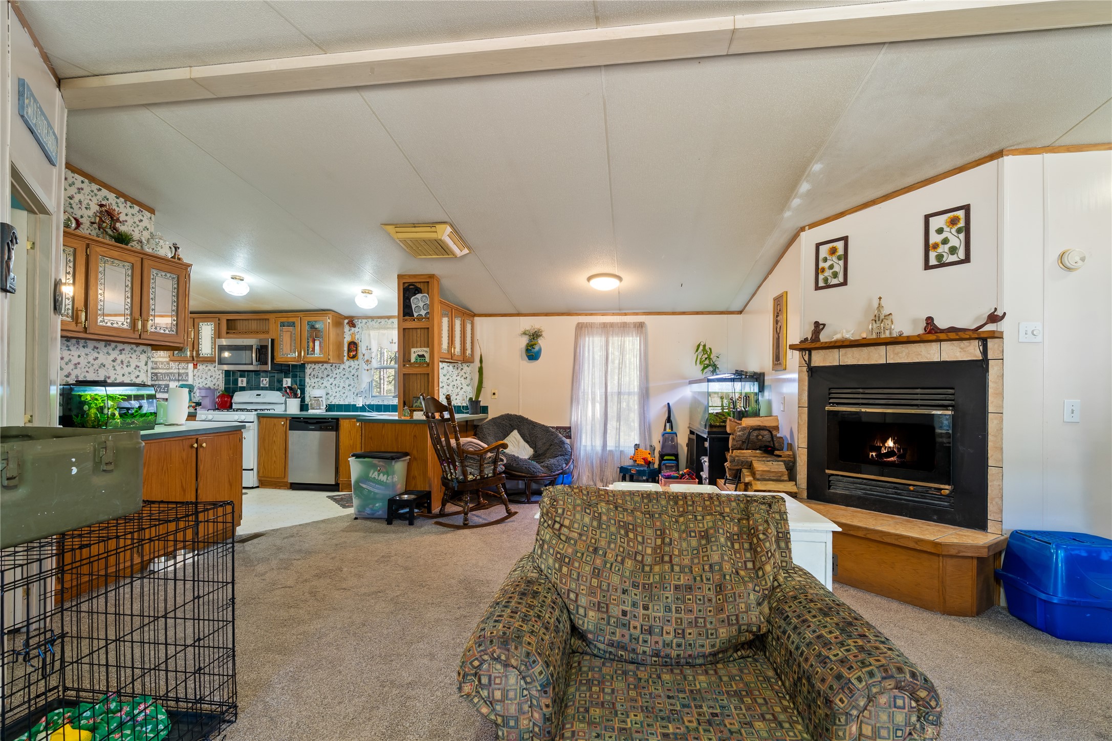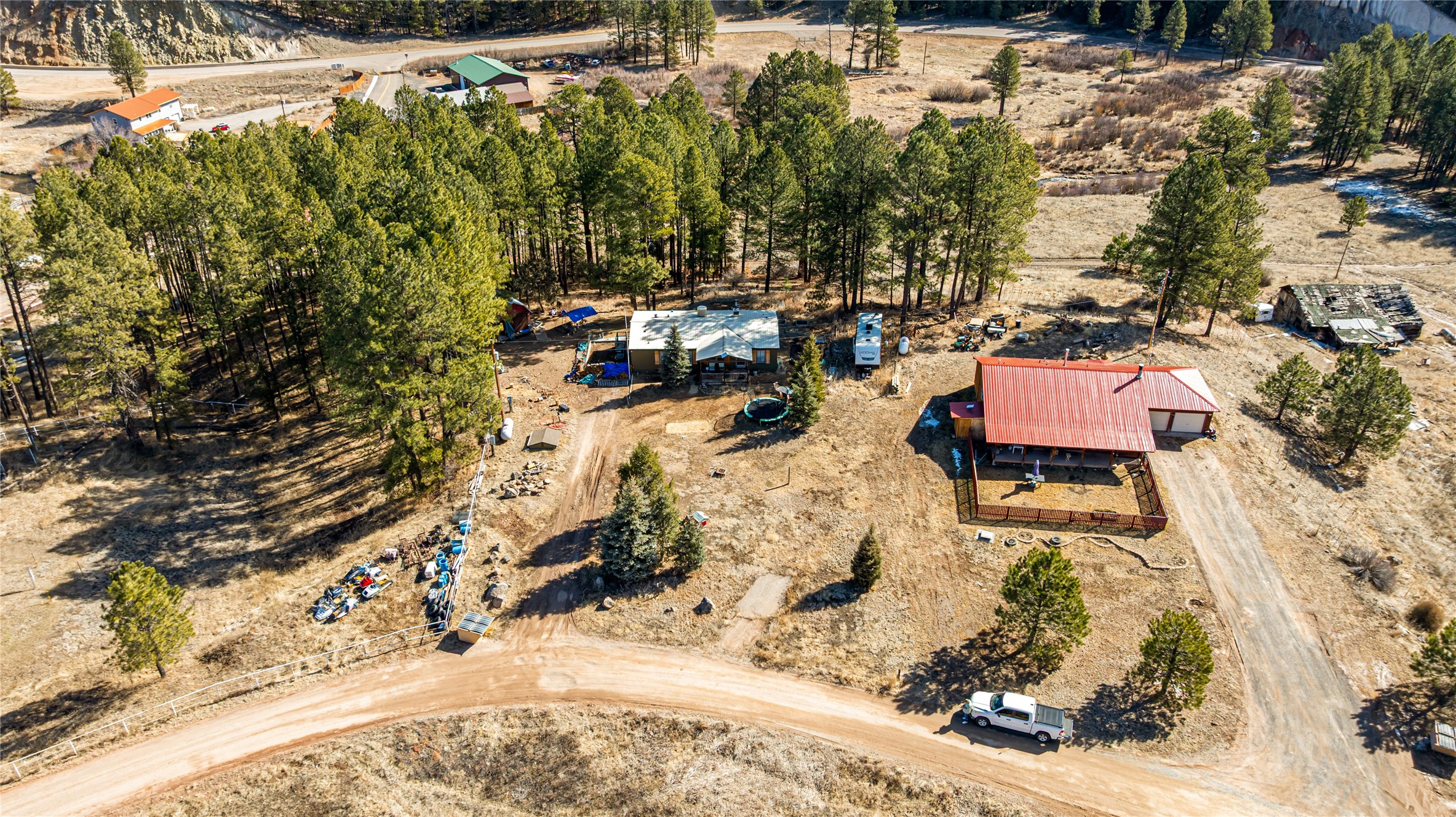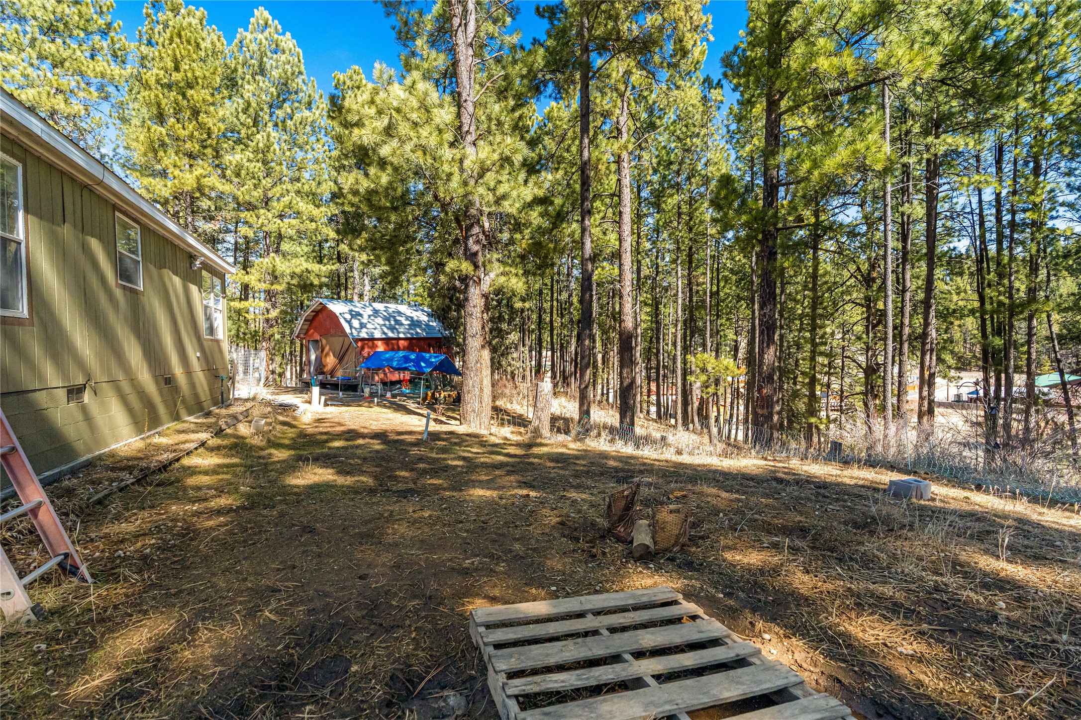 Fabulous Views, Easy Access, and a Great Location! Nestled in the tight-knit community of La Cueva, this home sits on a .84-acre lot overlooking the San Antonio Creek, surrounded by pine trees and nature. The east side of the property backs National Forest. The master bedroom is situated on one side of the home, with two additional bedrooms on the opposite end. Two full baths, including a relaxing garden tub. Open concept living with an efficient fireplace for cozy evenings at home. Country kitchen with plenty of counter space and an attached laundry room/pantry. Fishing and hiking right out your back door! Easy year-round access on a county-maintained road and a reasonable 40-minute commute to Los Alamos.