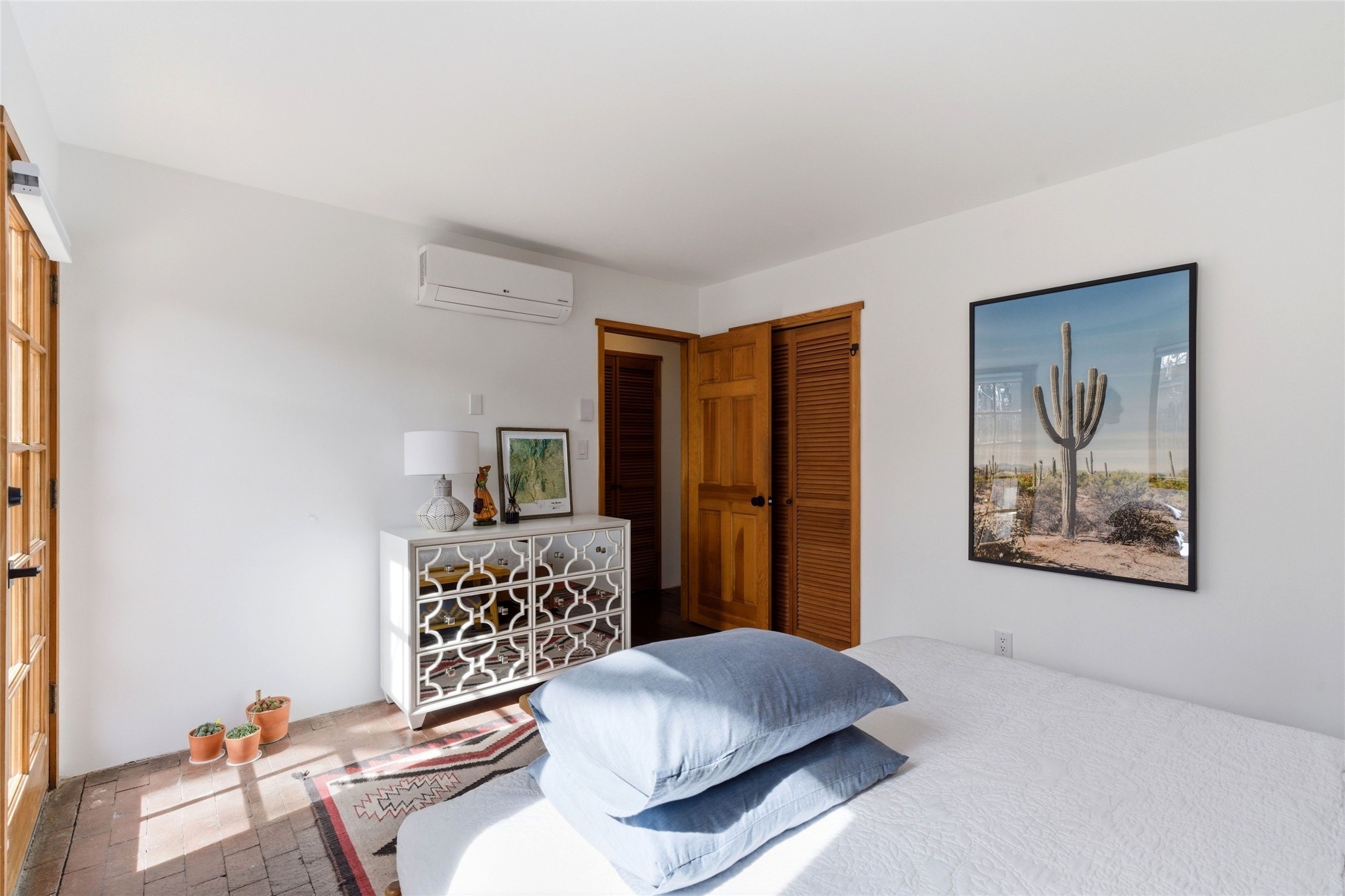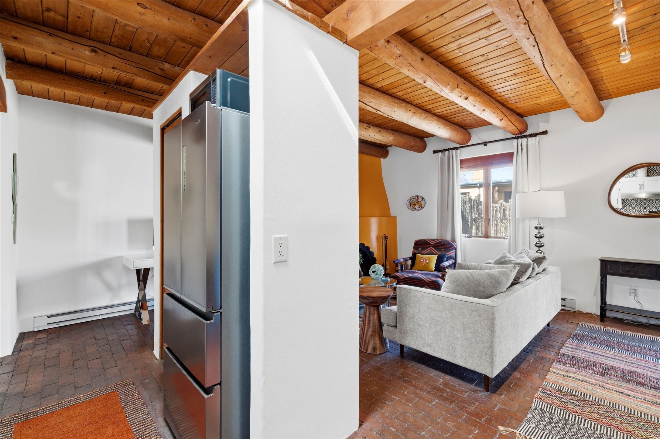 Cheerful, updated South Capitol 1-bedroom, 1-bath condo with a private, shaded courtyard. Whether as a primary residence, a stylish pied--terre, or a potential investment in a sought-after central district, this property represents an opportunity to enjoy the Santa Fe lifestyle. Single level; no interior steps. Iconic Santa Fe touches with wood beamed ceilings, kiva fireplace, and brick floors. Newly renovated kitchen with stainless steel appliances. Bonuses are one designated parking space, deluxe washer/dryer, and a Samsung Frame TV that transforms into a digital art display. Perfect location, close proximity to everything including the Railyard, Canyon Road and the Plaza.