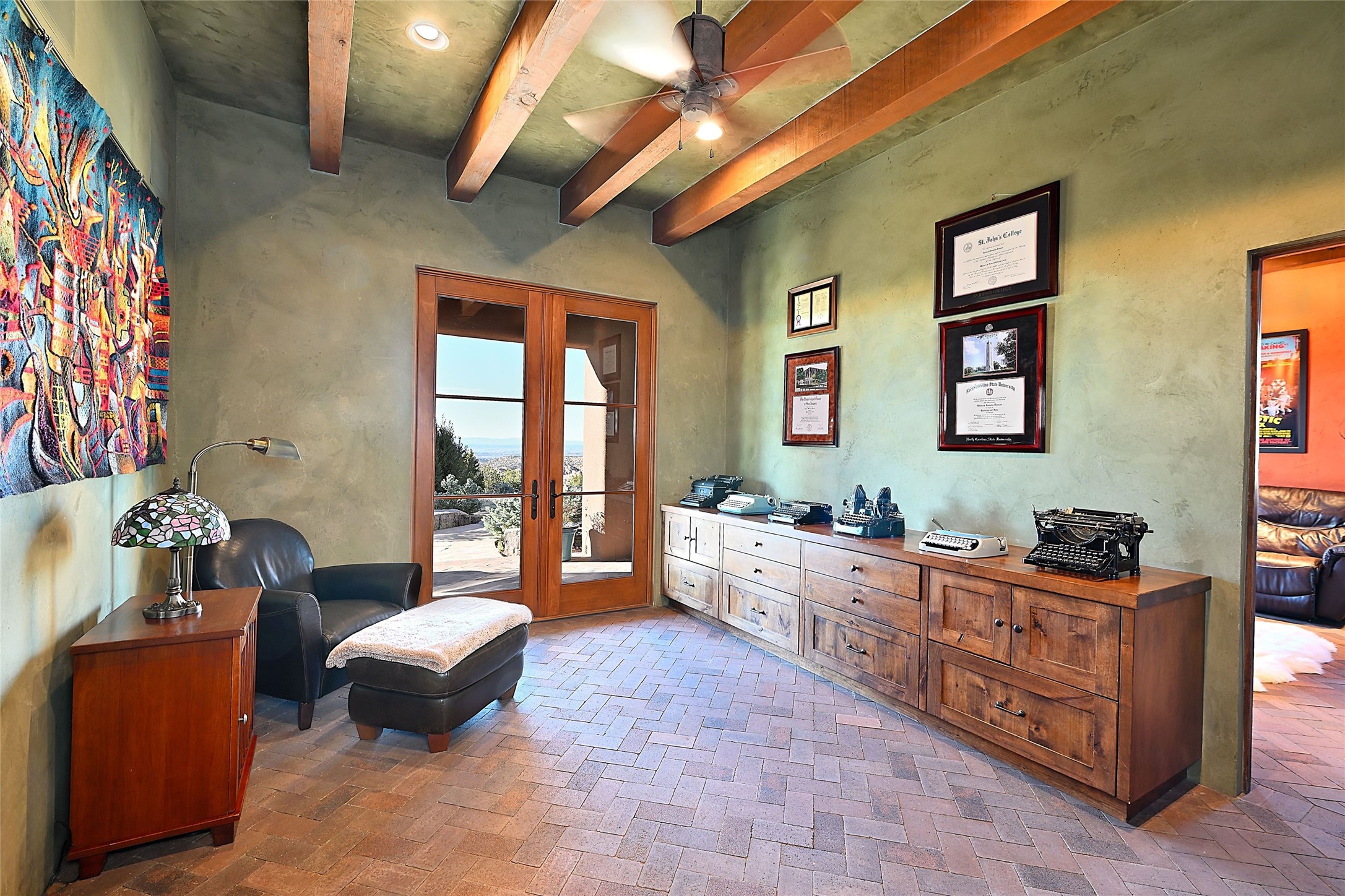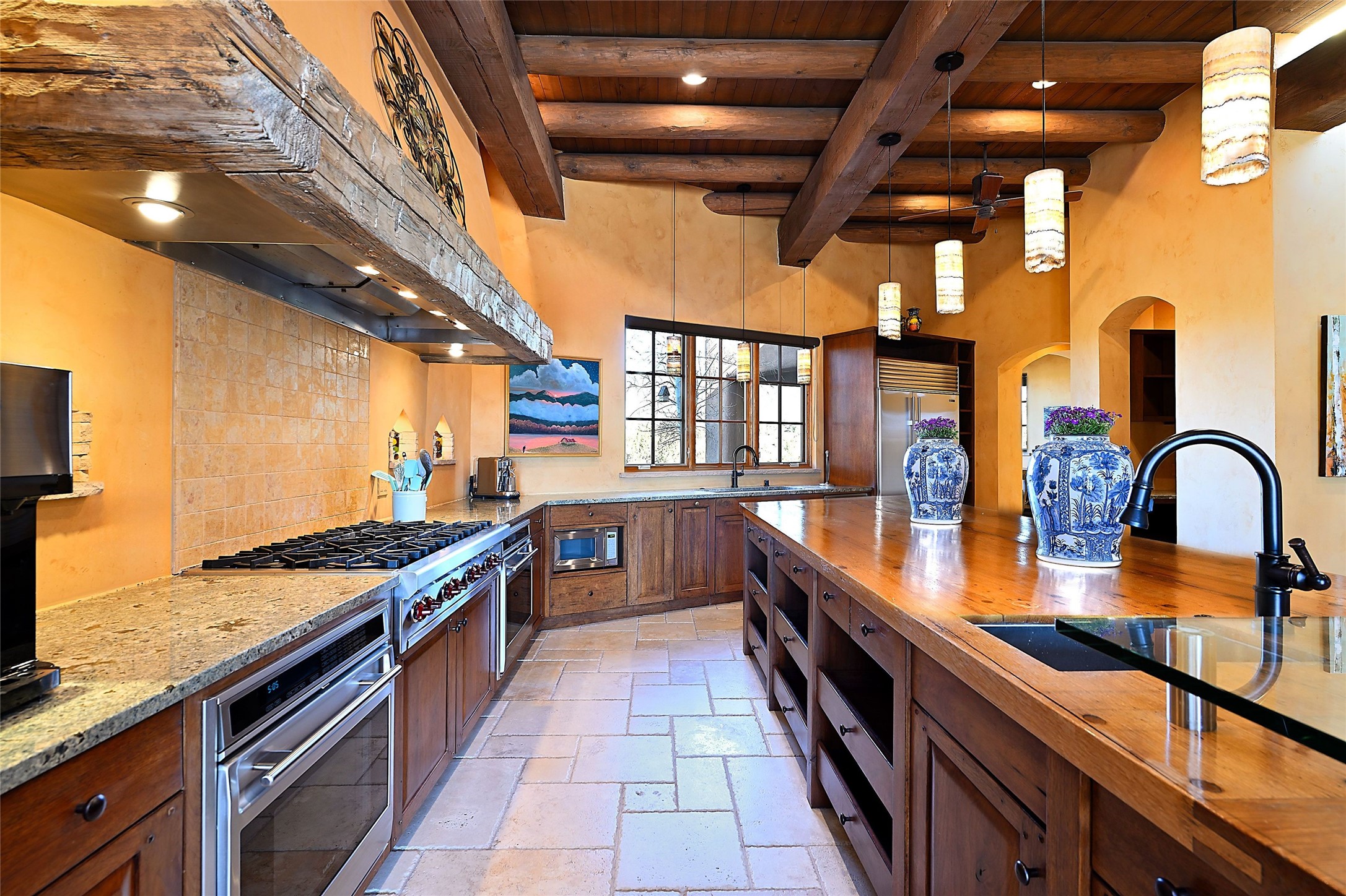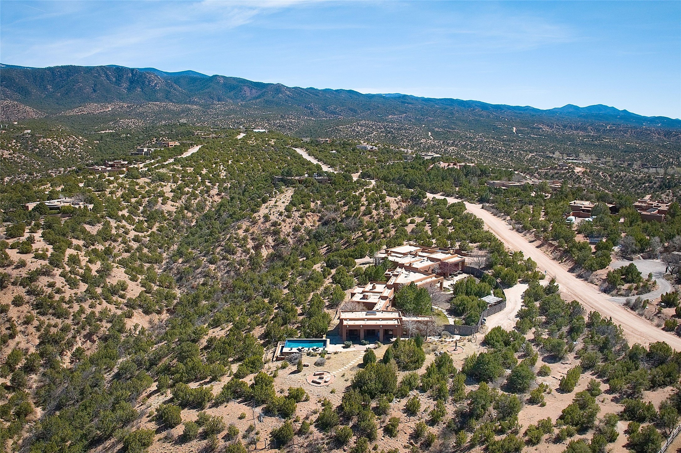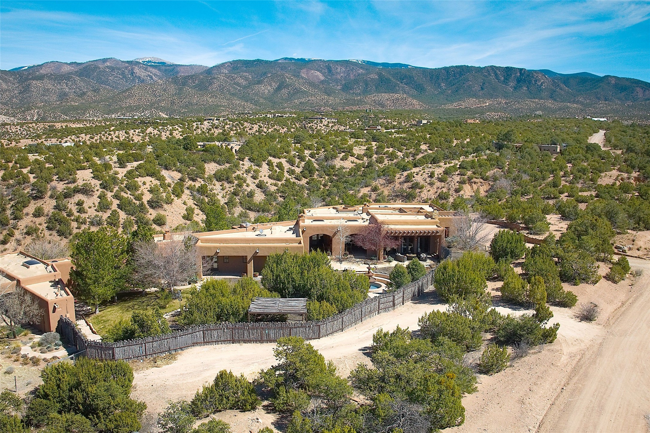 A rare Vista Redonda gem is finally on the market! This extraordinary property offers a rare opportunity to experience the very best of Santa Fe living, where dramatic landscapes, artistic heritage, and profound tranquilityconverge. An elegant retreat, this exceptional Spanish-Pueblo Revival style 4-Bedroom 6-bathroom home boasts unparalleled panoramic views of the JemezandSangre de Christo mountains and offers an exceptional blend of timeless Southwestern architecture and breathtaking natural beauty visible from every window in the home. Across the 5-acre property, become enchanted by the beautiful and thoughtfully manicured landscaping. Feel the serenity of beautifully landscaped grounds as you walk along paths discovering hidden seating areas and privacy amongst the roses and lavender. An infinity edge pool beckons as long lazy Santa Fe summer days explode at dusk into an artist's palette of oranges, purples, and yellows as the sun slowly sets behind the rugged mountain landscape. At the heart of the home is a grand gourmet kitchen, designed for both everyday living and elegant entertaining. A chef's dream, the kitchen features dual Wolf ovens, an 8-burner gas cooktop, two dishwashers, and a Subzero refrigerator. Theadjacent butler's pantry, complete with an additional refrigerator, wine refrigerator, and generous storage, provides exceptional convenience when hosting gatherings. Enjoy indoor/outdoor living at its pinnacle. Beautiful sets of French Doors in every room lead to the property's numerous covered portales and patios. Those on the west side of the property showcase a stunning sunken fountain with surrounding bancos, a perfect spot to relax with friends, soak up the fresh Santa Fe air, or gaze at the night sky free from the lights of the city. This grand home offers a curated slice of elegant Santa Fe living, with exceptional access to Tesuque Village and easy access to downtown Santa Fe..This one of a kind property captures the essence of Santa Fe and truly has everything for the discerning homebuyer.