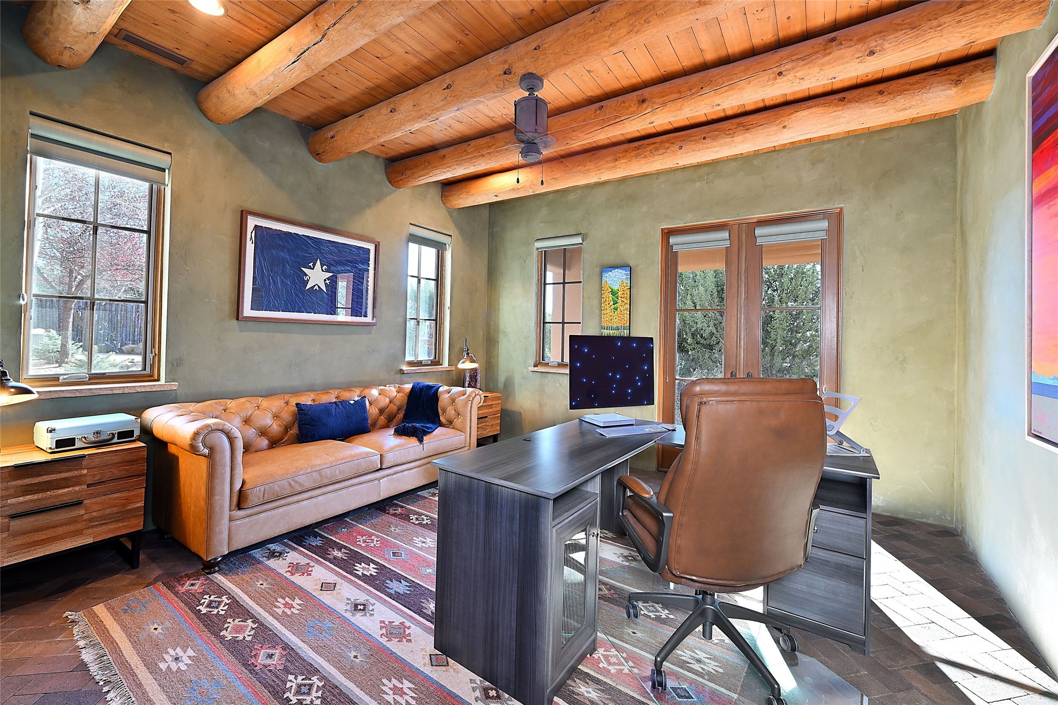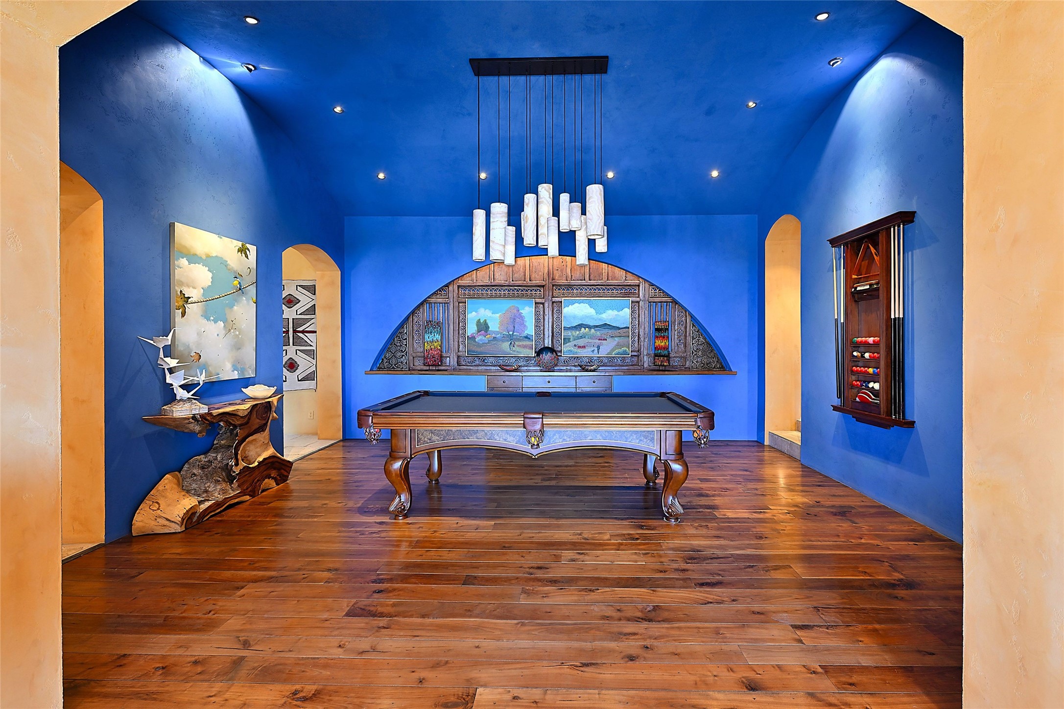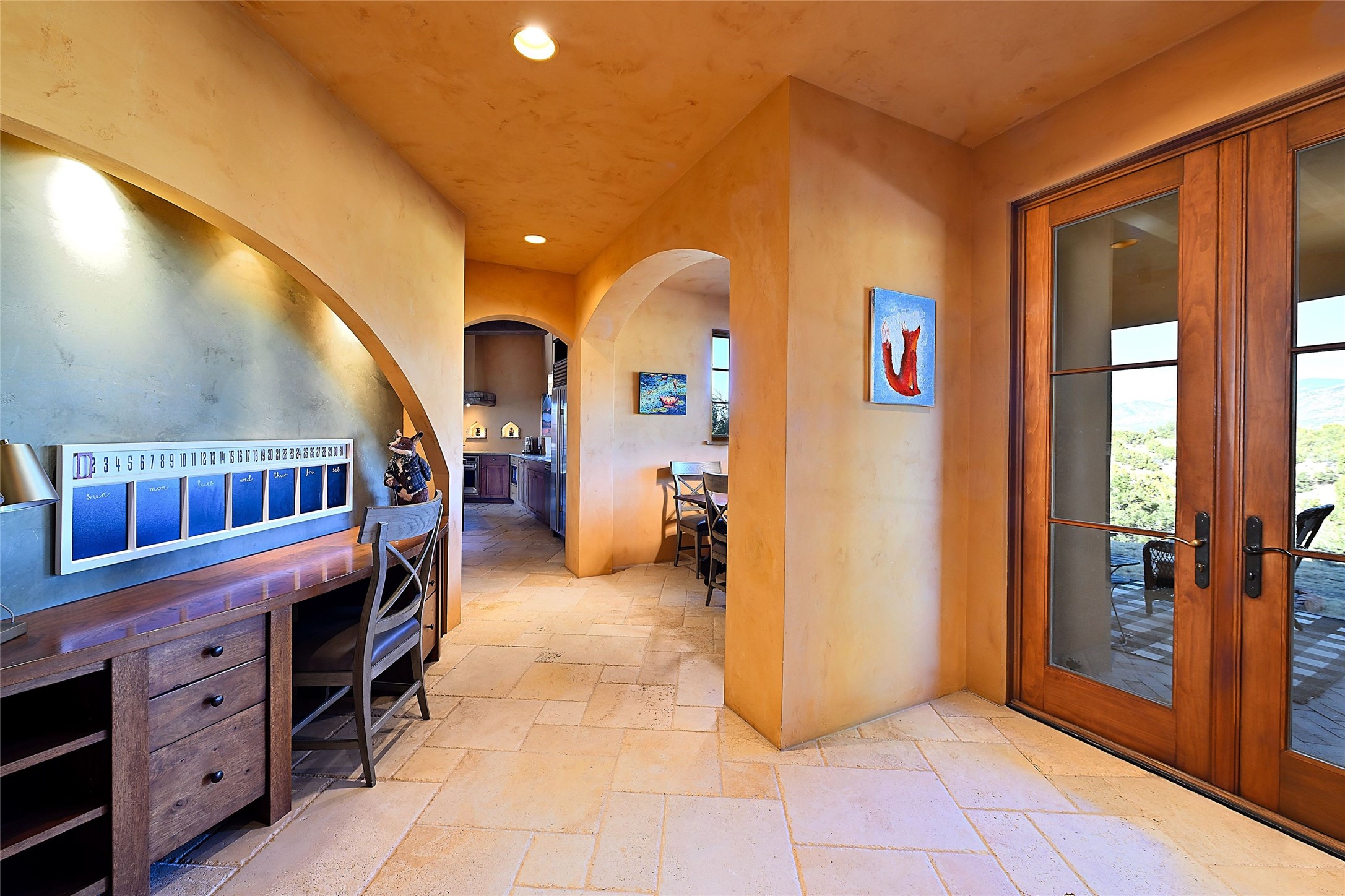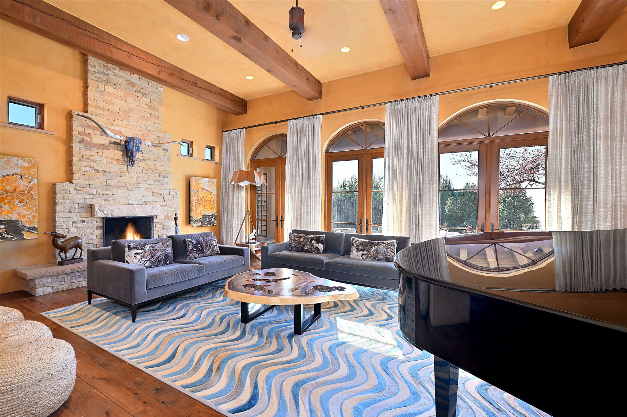 A rare Vista Redonda gem is finally on the market! This extraordinary property offers a rare opportunity to experience the very best of Santa Fe living, where dramatic landscapes, artistic heritage, and profound tranquilityconverge. An elegant retreat, this exceptional Spanish-Pueblo Revival style 4-Bedroom 6-bathroom home boasts unparalleled panoramic views of the JemezandSangre de Christo mountains and offers an exceptional blend of timeless Southwestern architecture and breathtaking natural beauty visible from every window in the home. Across the 5-acre property, become enchanted by the beautiful and thoughtfully manicured landscaping. Feel the serenity of beautifully landscaped grounds as you walk along paths discovering hidden seating areas and privacy amongst the roses and lavender. An infinity edge pool beckons as long lazy Santa Fe summer days explode at dusk into an artist's palette of oranges, purples, and yellows as the sun slowly sets behind the rugged mountain landscape. At the heart of the home is a grand gourmet kitchen, designed for both everyday living and elegant entertaining. A chef's dream, the kitchen features dual Wolf ovens, an 8-burner gas cooktop, two dishwashers, and a Subzero refrigerator. Theadjacent butler's pantry, complete with an additional refrigerator, wine refrigerator, and generous storage, provides exceptional convenience when hosting gatherings. Enjoy indoor/outdoor living at its pinnacle. Beautiful sets of French Doors in every room lead to the property's numerous covered portales and patios. Those on the west side of the property showcase a stunning sunken fountain with surrounding bancos, a perfect spot to relax with friends, soak up the fresh Santa Fe air, or gaze at the night sky free from the lights of the city. This grand home offers a curated slice of elegant Santa Fe living, with exceptional access to Tesuque Village and easy access to downtown Santa Fe..This one of a kind property captures the essence of Santa Fe and truly has everything for the discerning homebuyer.