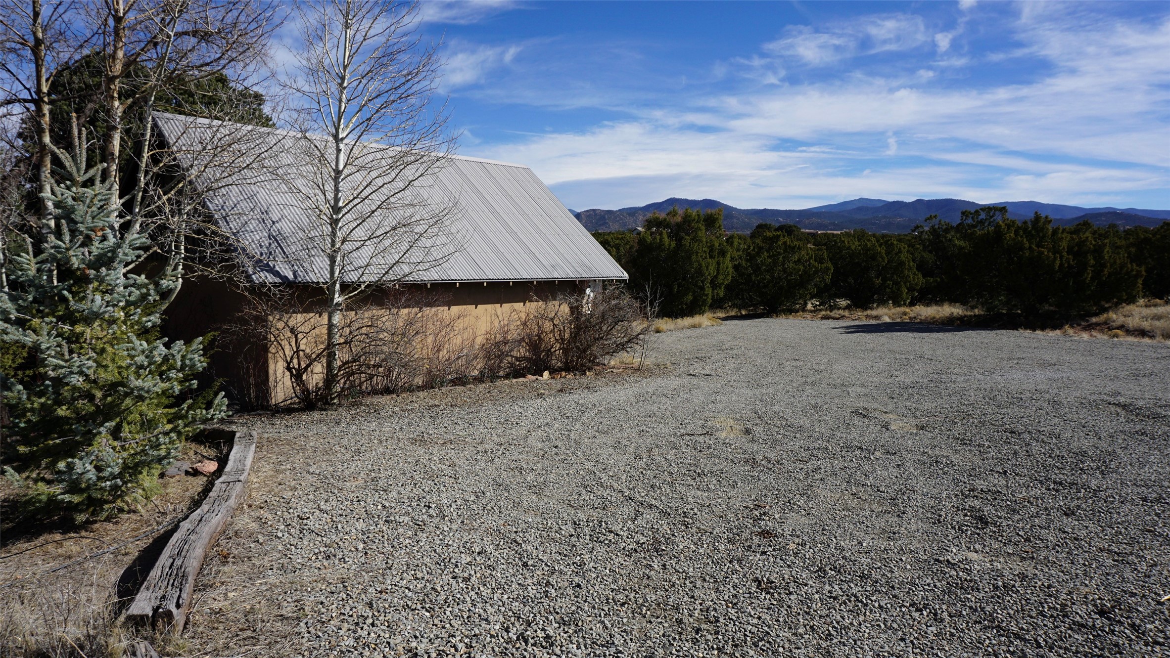 Private country retreat, easy drive to town, a find. This Northern New Mexico sweetheart house on exquisite land has mountain views, a well-kept open barn and corrals and pens. No horses? Park your RV securely in the spacious newly sided barn with heavy-duty remote-operated metal doors or set it up for wonderfully lit workshop space. Got dogs? Lots of room to run in several fenced areas. Love to hike? Great adjacent trails - including the Rail Trail and Arroyo Hondo Open Space trails, no driving necessary. Dining out? Nearby options and just a 15-minute hop to all downtown Santa Fe offers. Love the cathedral ceiling with beams (yes, living room), remodeled bathrooms with custom tiles and sinks, covered porches front-and-back. Fresh paint throughout, new on-demand water heater, mini-splits, upgraded driveway and irrigation systems are just some of the improvements made by current owners that you will appreciate. This property is country living with the flare of style and oozes potential for the existing structures. See for yourself and fall in love.