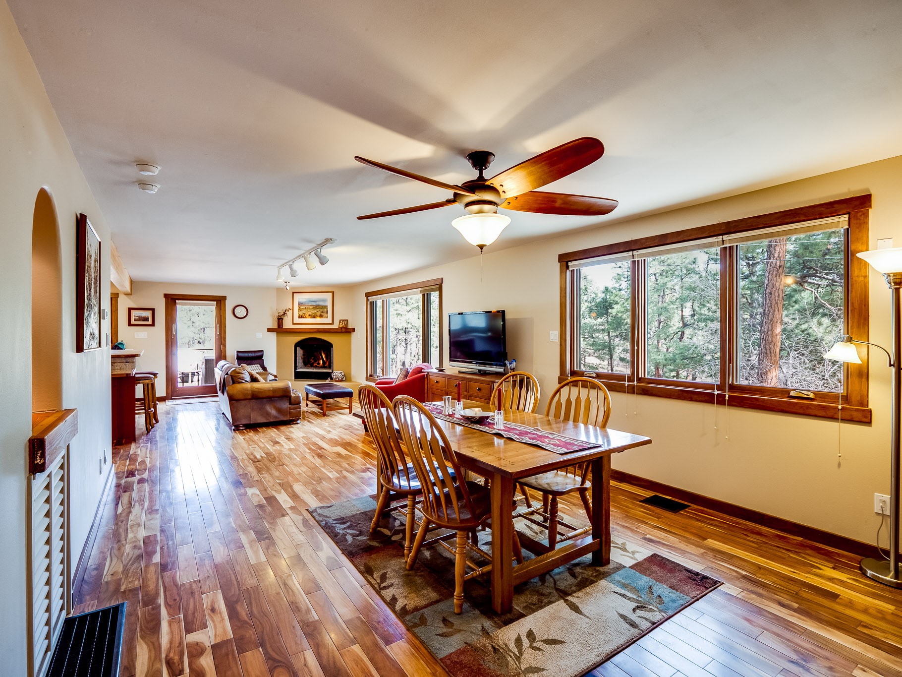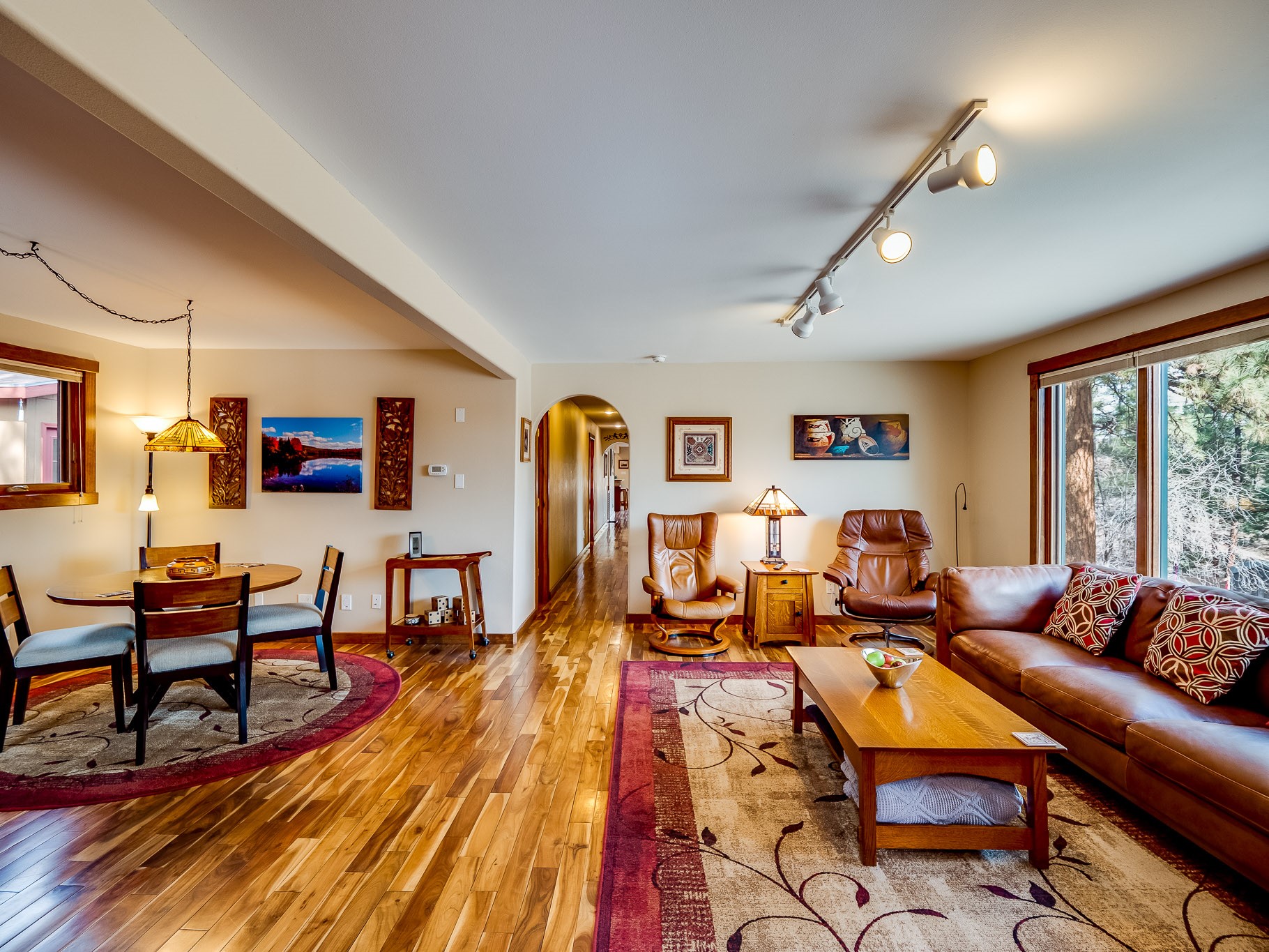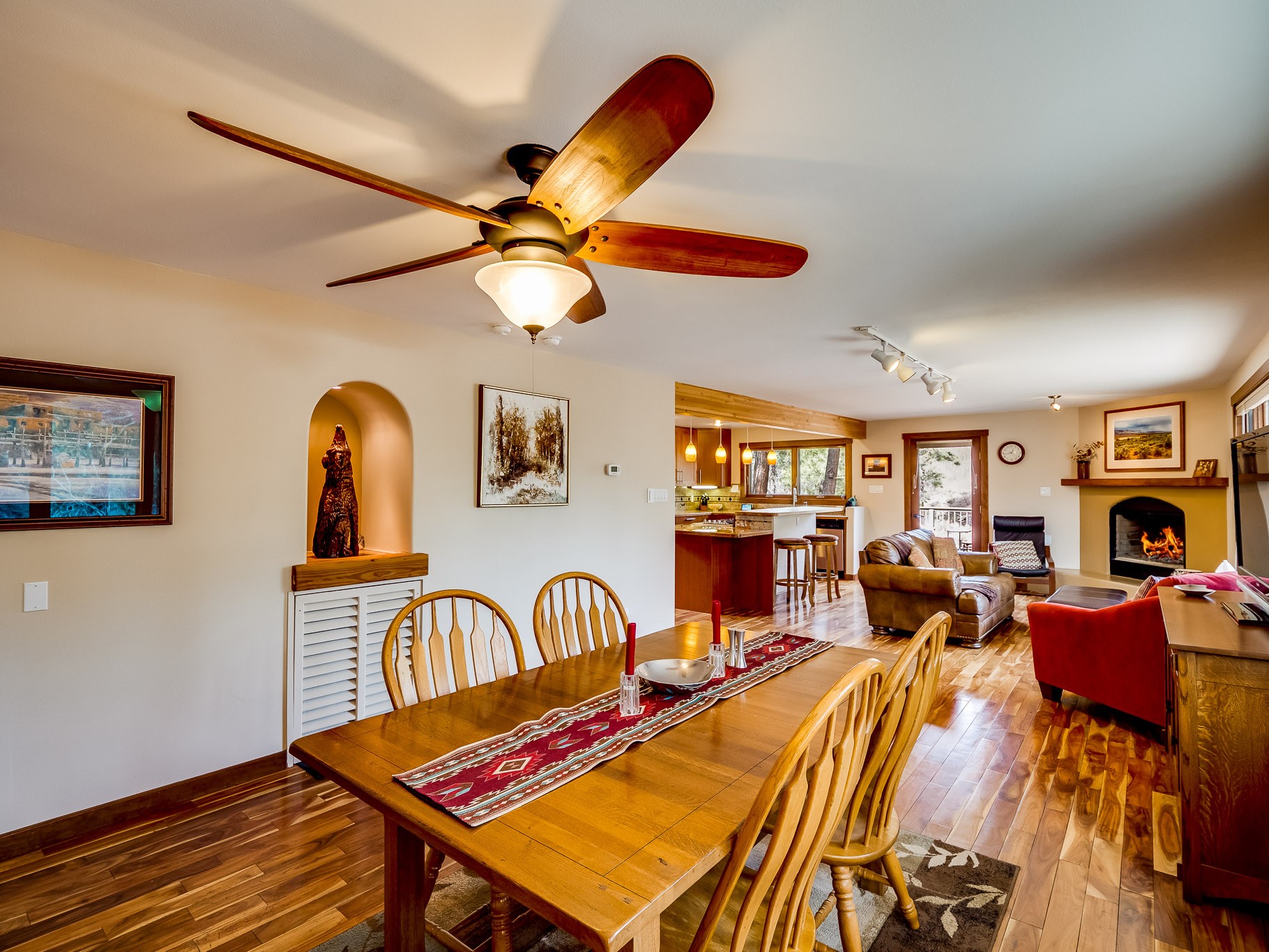 Gorgeous single-story home in N Community! A grass lawn and mature trees guide you to the inviting front porch and into the home's bright entry with tile flooring and convenient access to the laundry room. The spacious living room is warm and inviting, featuring rich wood floors, large windows that fill the space with natural light, and a cozy color palette that flows beautifully throughout the home. With plenty of room for multiple seating areas. Just off the living room is a functional mudroom with access to the two car garage, complete with a dedicated workshop and storage room. Down the hallway are two comfortable guest bedrooms and a stylish full guest bathroom featuring a single sink vanity with tile backsplash and a tiled tub/shower surround. The spacious primary en-suite provides a peaceful retreat with plush carpet flooring and sliding glass doors that open directly to the backyard deck, along with convenient access to the detached studio space, perfect for a home office, creative studio, or private fitness area. The walk-in closet with built-in organizers leads to the spa-inspired bathroom with dual vanities, tile backsplash, and a beautifully tiled walk-in shower. At the back of the home is the true centerpiece--a fabulous chef's kitchen designed for both everyday living and entertaining. Rich wood cabinetry with chrome hardware, granite tile countertops, stainless steel appliances, walk-in pantry and a center island with bar seating and a gas cooktop create a space that is as functional as it is beautiful. The kitchen overlooks a cozy family room with a charming wood-burning fireplace and flows seamlessly into the dining area, making gatherings effortless. Step outside to enjoy the large composite wood deck, perfect for relaxing or hosting while overlooking the expansive tree-lined backyard. With RV parking and close proximity to hiking trails and schools, this wonderful property blends comfort, charm, and convenience in a location you won't want to miss.