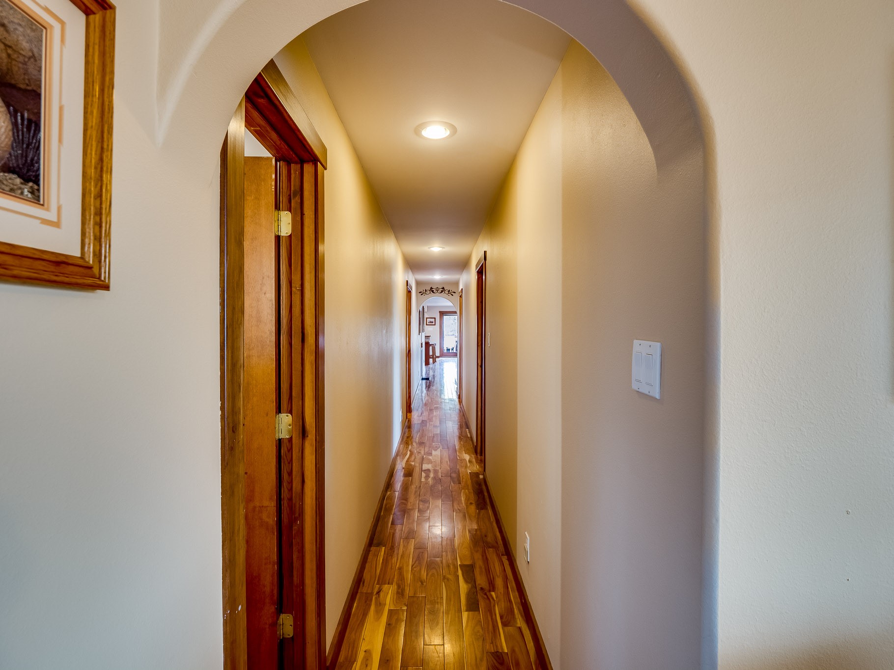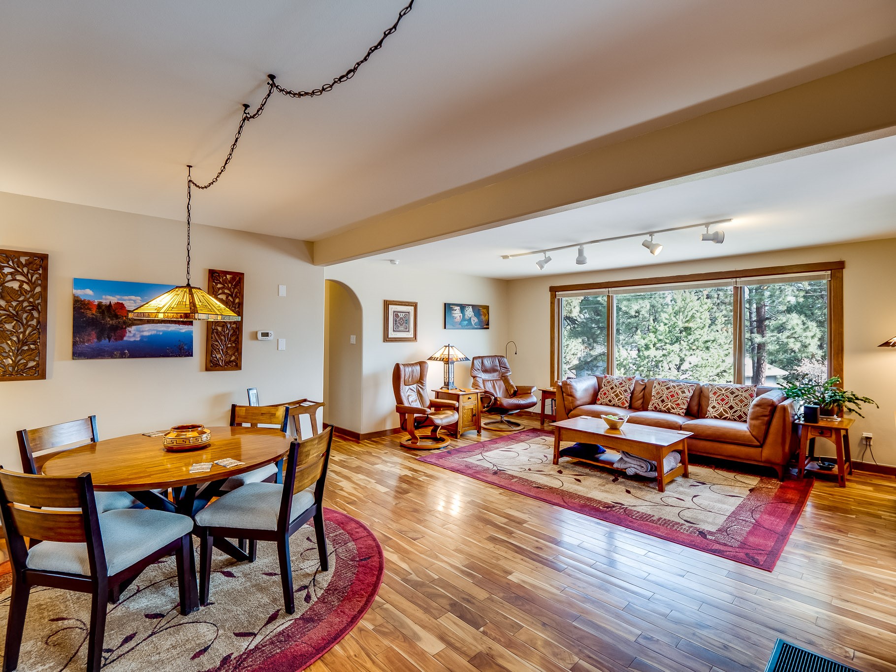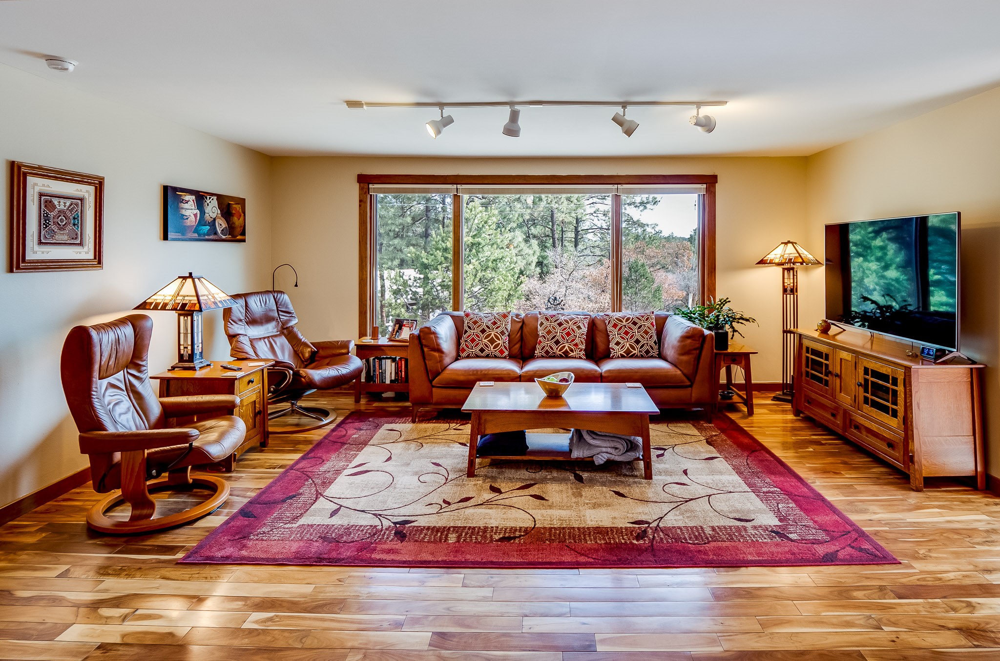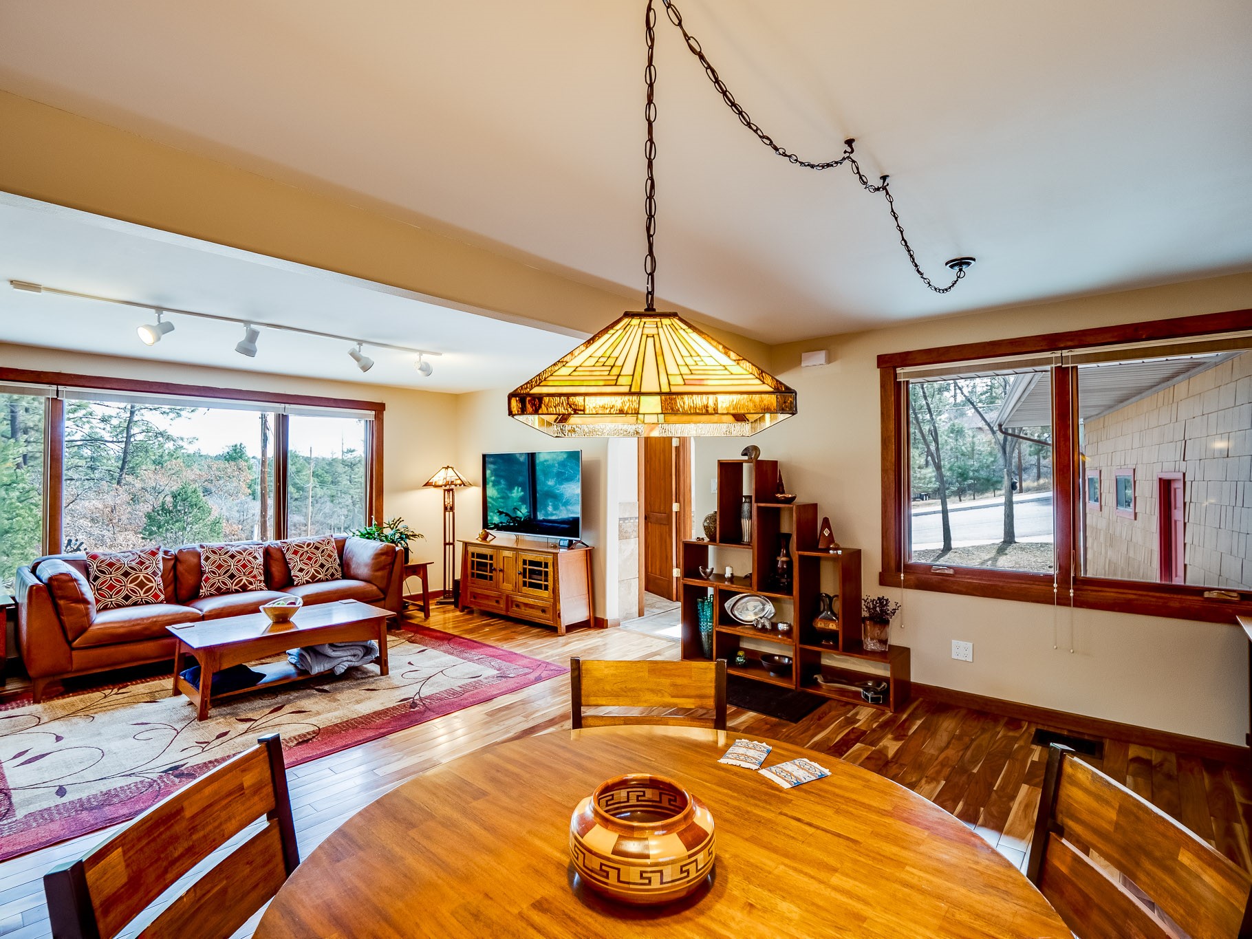 Gorgeous single-story home in N Community! A grass lawn and mature trees guide you to the inviting front porch and into the home's bright entry with tile flooring and convenient access to the laundry room. The spacious living room is warm and inviting, featuring rich wood floors, large windows that fill the space with natural light, and a cozy color palette that flows beautifully throughout the home. With plenty of room for multiple seating areas. Just off the living room is a functional mudroom with access to the two car garage, complete with a dedicated workshop and storage room. Down the hallway are two comfortable guest bedrooms and a stylish full guest bathroom featuring a single sink vanity with tile backsplash and a tiled tub/shower surround. The spacious primary en-suite provides a peaceful retreat with plush carpet flooring and sliding glass doors that open directly to the backyard deck, along with convenient access to the detached studio space, perfect for a home office, creative studio, or private fitness area. The walk-in closet with built-in organizers leads to the spa-inspired bathroom with dual vanities, tile backsplash, and a beautifully tiled walk-in shower. At the back of the home is the true centerpiece--a fabulous chef's kitchen designed for both everyday living and entertaining. Rich wood cabinetry with chrome hardware, granite tile countertops, stainless steel appliances, walk-in pantry and a center island with bar seating and a gas cooktop create a space that is as functional as it is beautiful. The kitchen overlooks a cozy family room with a charming wood-burning fireplace and flows seamlessly into the dining area, making gatherings effortless. Step outside to enjoy the large composite wood deck, perfect for relaxing or hosting while overlooking the expansive tree-lined backyard. With RV parking and close proximity to hiking trails and schools, this wonderful property blends comfort, charm, and convenience in a location you won't want to miss.