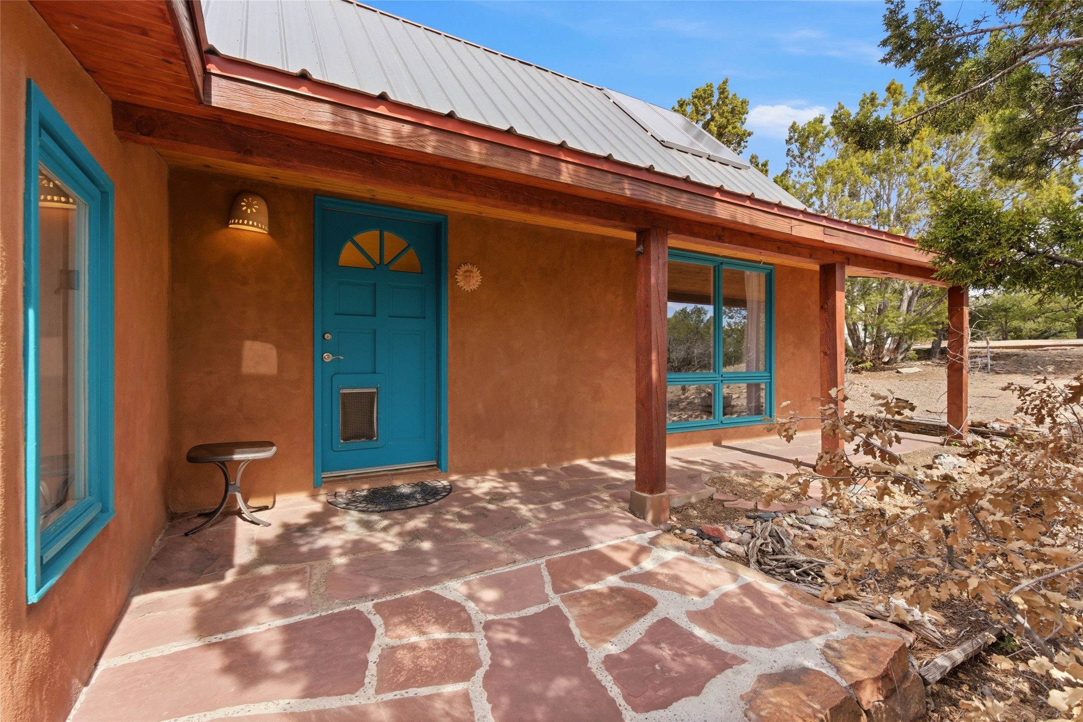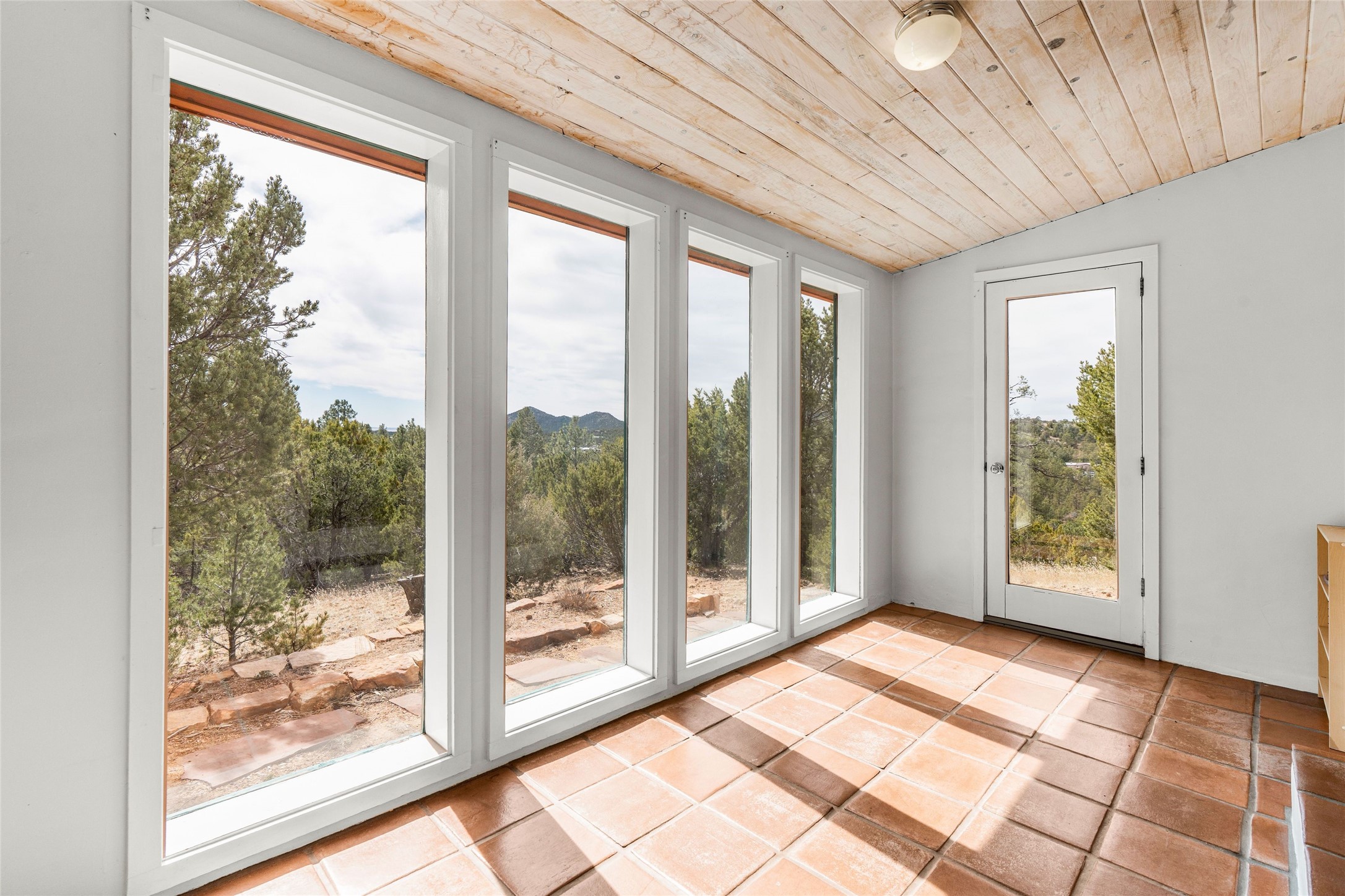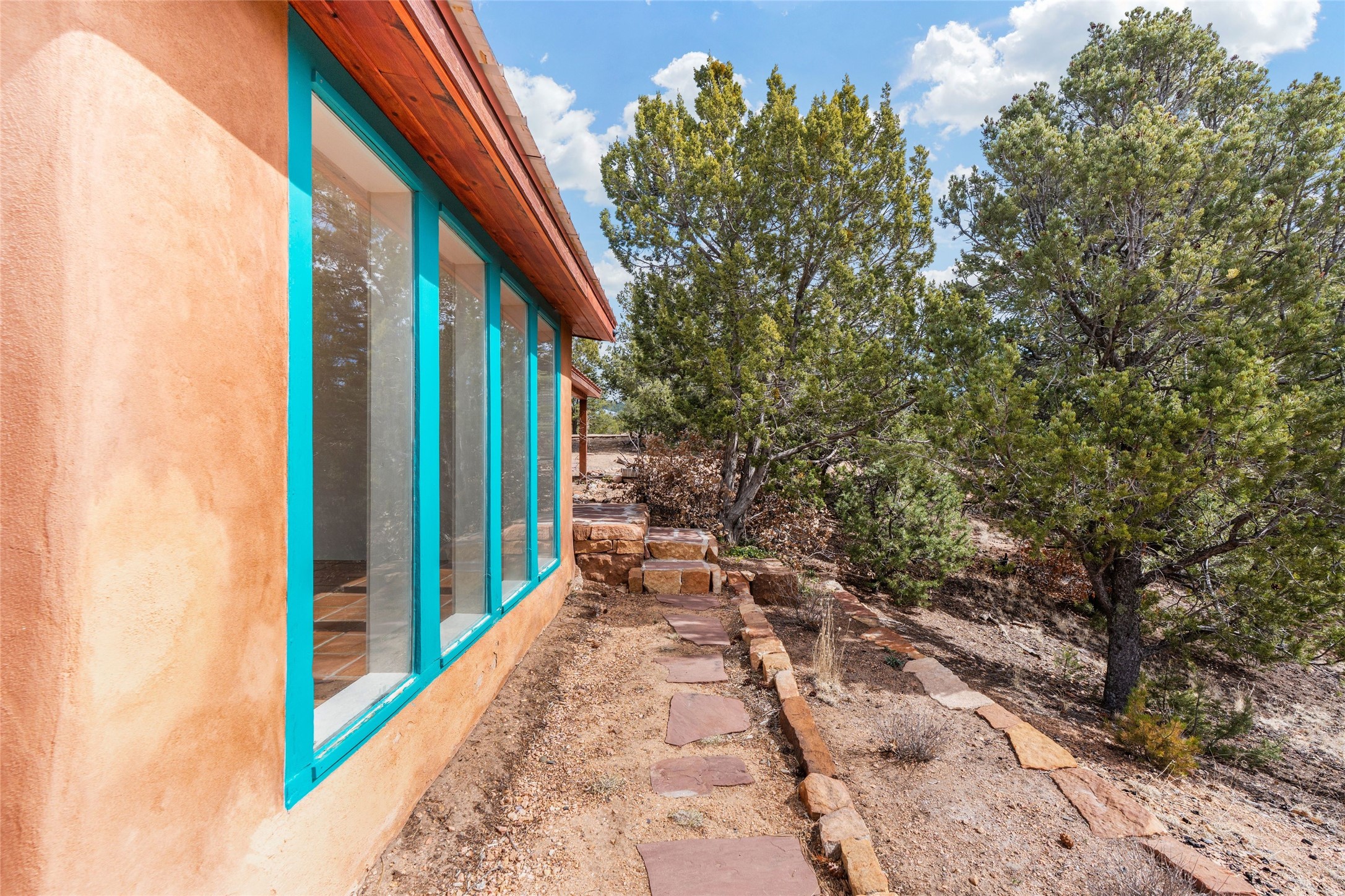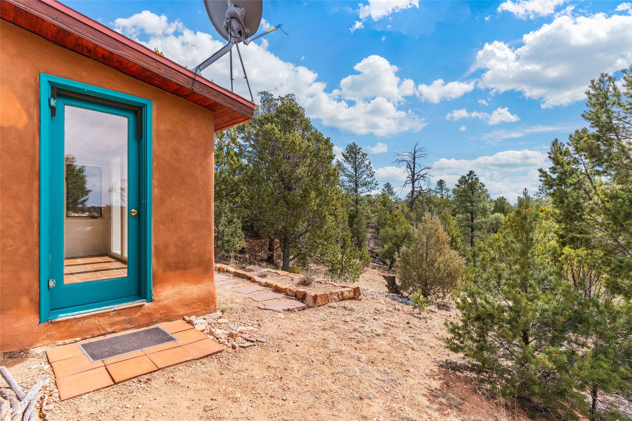 Nestled among the quiet hills of Caada de los Alamos, this tranquil 1-bedroom, 1-bathroom retreat sits atop 5 private acres overlooking a sweeping green valley of ponderosa pines and juniper, with Cerros Negros rising softly in the distance. Positioned to take in both light and long views, the 1,138-square-foot home opens with a charming living room centered around a cozy wood-burning fireplace--the heart of the space.Step down into the sun-drenched bonus room, an inviting space perfect for morning coffee, an afternoon read, or a peaceful work-from-home hideaway. Thoughtful storage is found throughout, including a usable attic and a standalone shed. The pitched roof features a solar hot water panel that helps support energy-efficient water heating.Outside, the property is defined by quiet and natural beauty--the soft wind moving through the forest, wildlife passing by, and clear night skies stretching overhead. Though wonderfully secluded, the home sits just about 25 minutes from the Plaza, offering a rare balance of mountain-retreat living with convenient access to Santa Fe's amenities and nearby National Forest trails.A calming high-desert getaway with space, privacy, and possibility--ready for its next owner to make it their own.