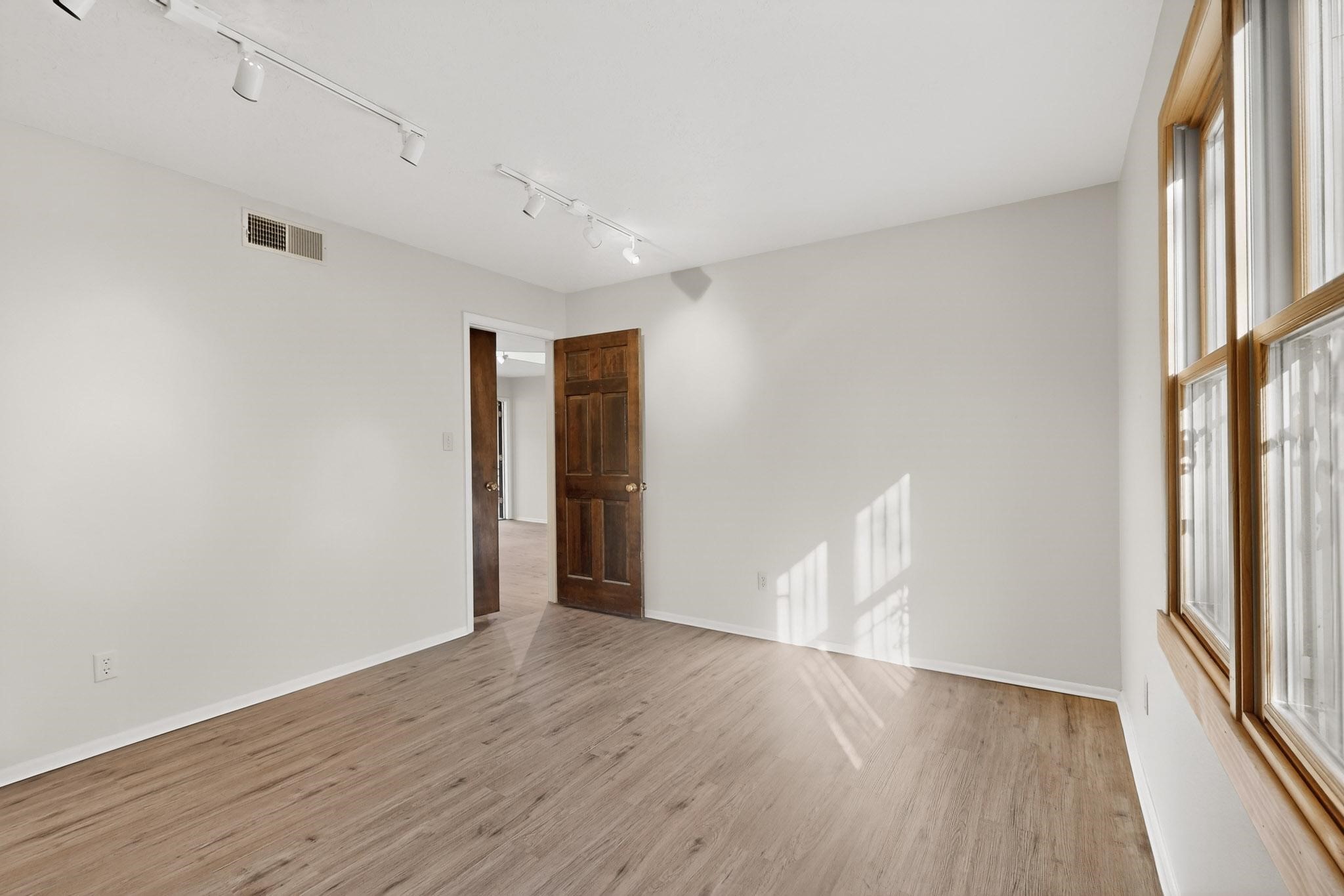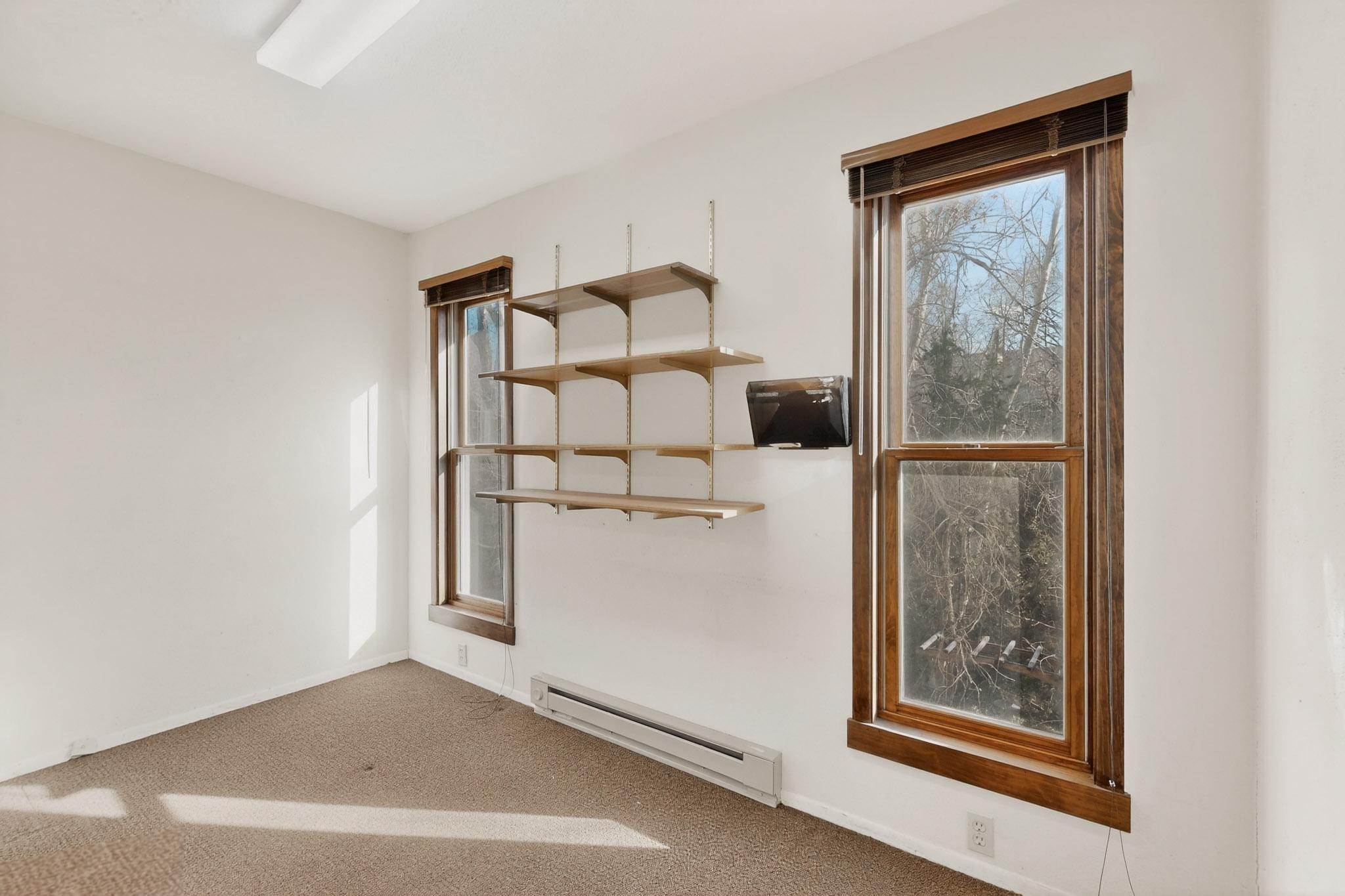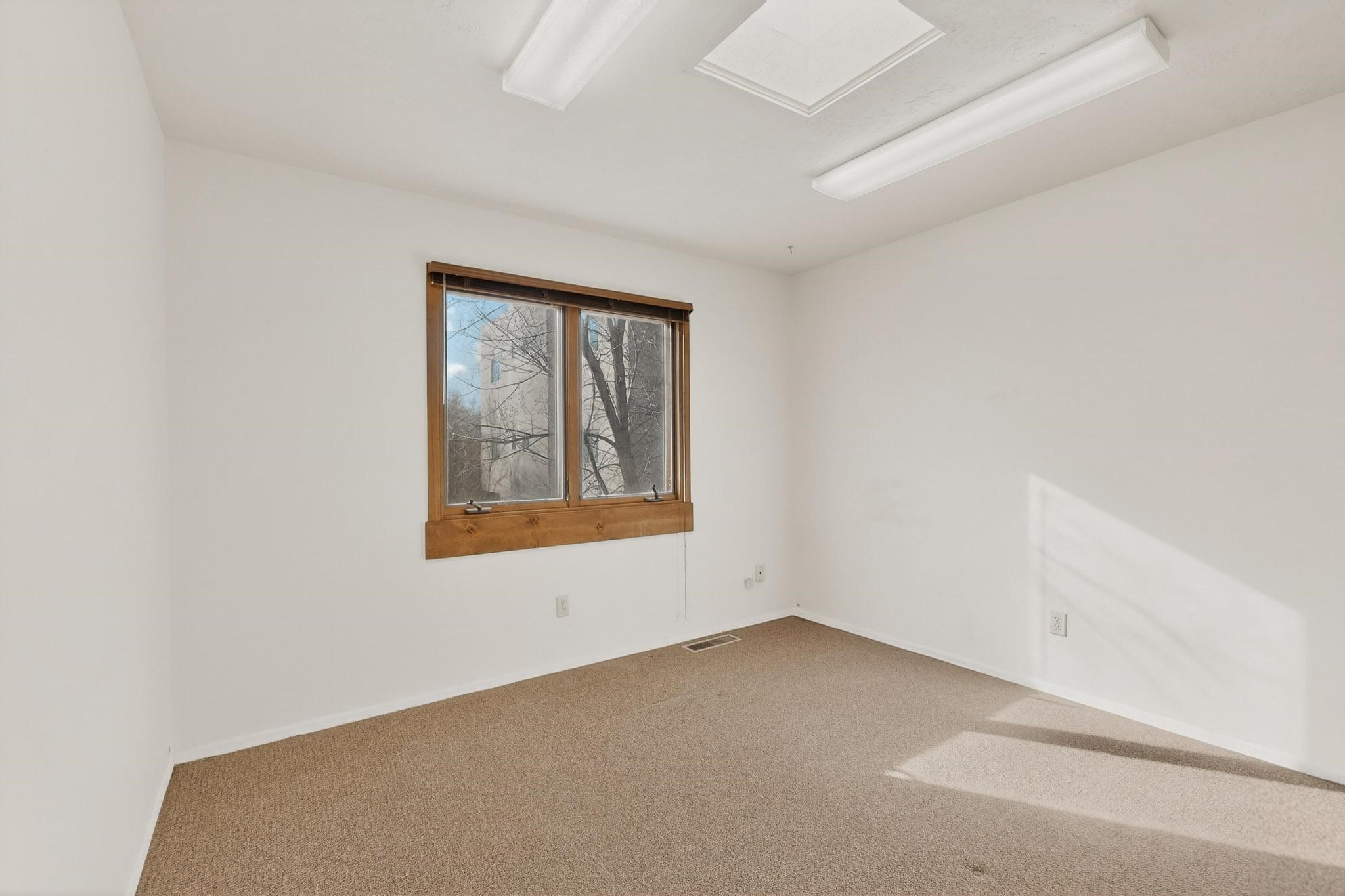 Excellent opportunity to purchase flexible office space in St. Francis Professional Center. Well located in the complex with great visibility, the space had been configured as two separate suites, which provided excellent flexibility. There are a total of 7 private offices, 2 bathrooms, 1 kitchenette, 2 large storage rooms, and 2 waiting areas. Great layout for wellness practitioners or professional offices (legal, accounting, etc). The section that was used as the larger suite has offices on two floors, a kitchenette, bathroom, waiting area and a very large multi-use space for storage, open concept workspace etc.