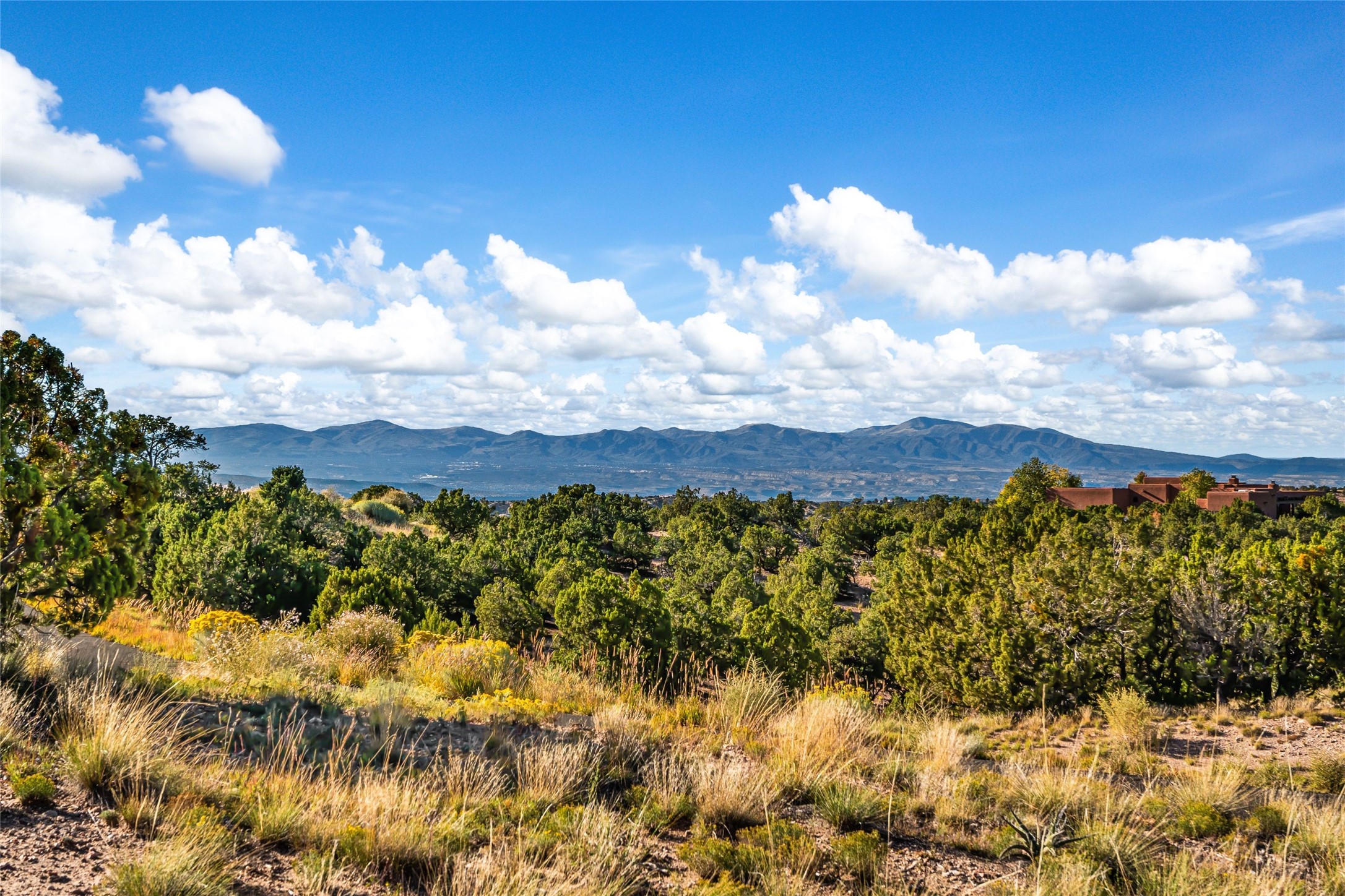 This stunning, soon to be completed, 3-bedroom 3.5 bath single-level Contemporary home by award-winning Montoya Custom Builders is located in the exclusive Las Cordilleras community, offering sweeping views of the Jemez Mountains. Set on 2.9+ acres, the home is elevated to maximize panoramic vistas and provide an ideal balance of privacy and modern luxury. The open-concept living area is flooded with natural light and features warm wood flooring, exposed beams, and smooth plaster walls that blend contemporary style with timeless charm. The chef's kitchen will be appointed with top-tier Wolf and Sub-Zero appliances, perfect for culinary creations. Featuring 3 spacious bedrooms, each with its own en-suite bath, the home is designed for both comfort and privacy. The primary suite is a true sanctuary, complete with a gas fireplace insert, a soaking tub with mountain views, and radiant floor heating. The thoughtfully designed floor plan separates the owner's suite from the guest bedrooms, ensuring a peaceful, private retreat. The home is equipped with radiant floor heating, forced air cooling, and a gas fireplace inserts to ensure year-round comfort. An enclosed courtyard provides a peaceful outdoor escape, while the elevated positioning of the home offers unmatched vistas. Located just 15 minutes from Santa Fe, this property combines the tranquility of rural living with easy access to city amenities. A new septic system, shared well, and a two-car garage add to the home's convenience and sustainability. This exceptional new build is the perfect blend of modern luxury and natural beauty.