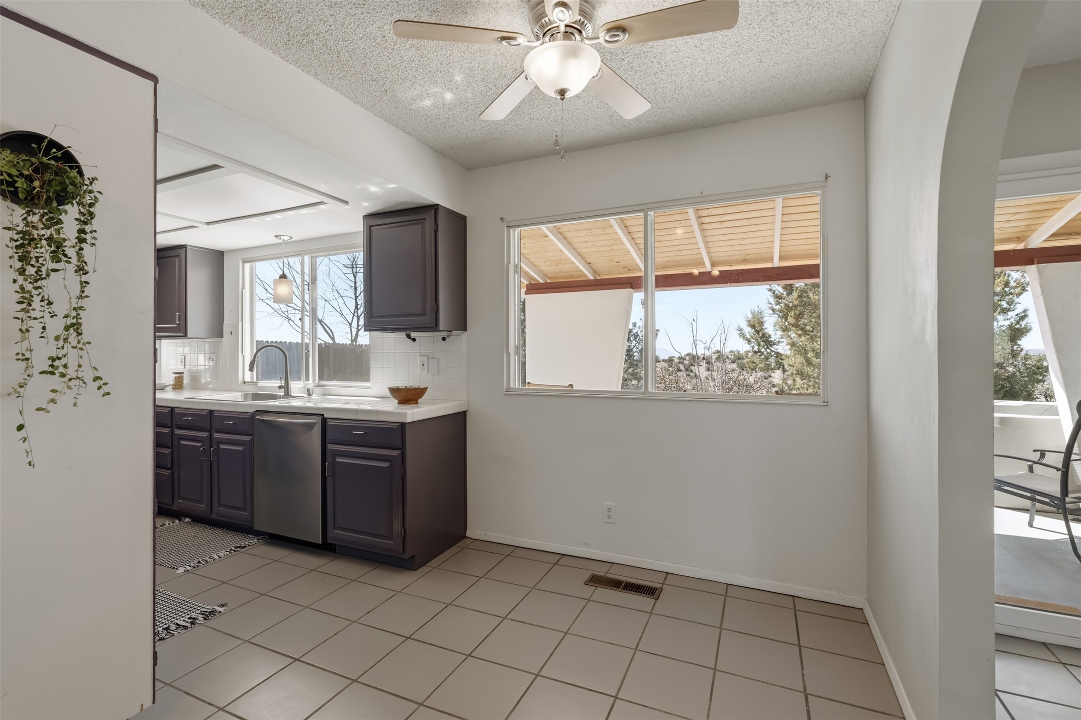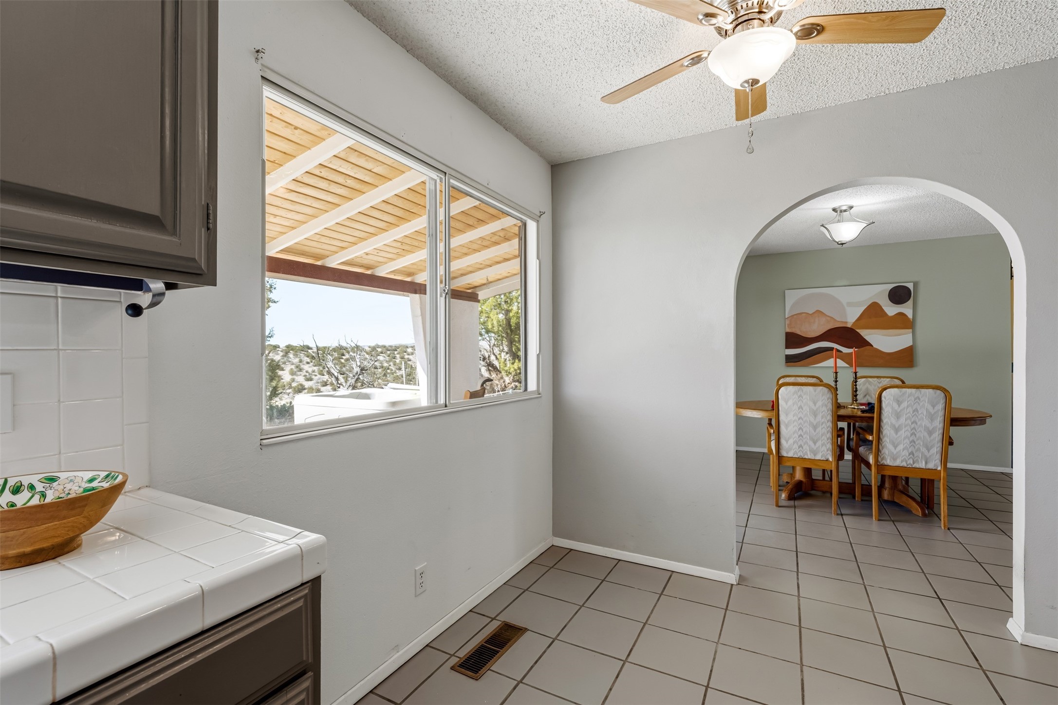 At 6445 Vooscane, the view is the headline. The backyard opens east toward the Sandia Mountains, where the landscape stretches across the Rio Grande valley in a wide, uninterrupted sweep of desert and sky. Morning light reaches the peaks first, and evenings bring the deep pink and purple hues the Sandias are known for.The move-in ready home offers approximately 1,250 square feet of comfortable, easy-to-maintain living space. Large windows frame the surrounding landscape, keeping the mountains present in everyday life. The scale is manageable yet comfortable, creating a home that feels easy to live in and connected to its remarkable natural setting.A covered rear portal provides a perfect place to take in the view--morning coffee, a quiet afternoon with a book, or dinner outside as the mountains shift color in the evening light. An adjacent hot tub, which conveys with the property, is the perfect place to unwind. Raised garden beds and a small gardening hutch add a practical outdoor touch.Cochiti Lake is a quiet, established community between Santa Fe and Albuquerque known for its open skies, dramatic scenery, and access to hiking, the lake, and nearby destinations like Tent Rocks and Bandelier National Monument.