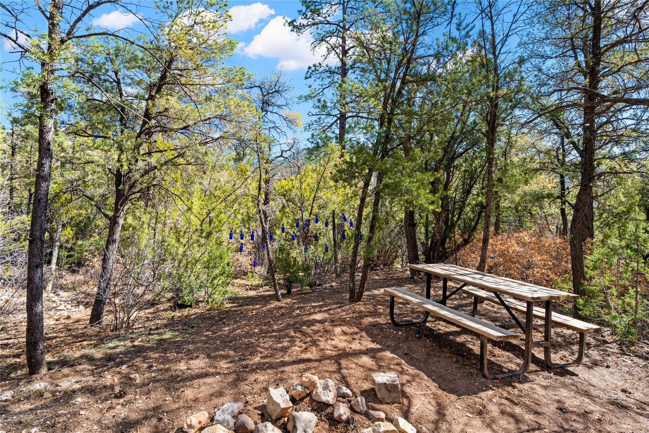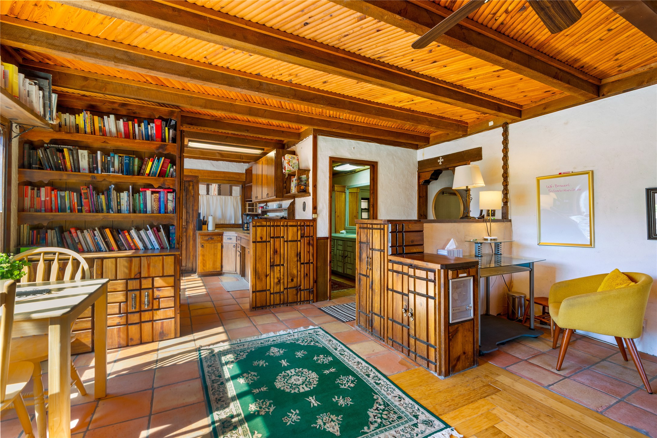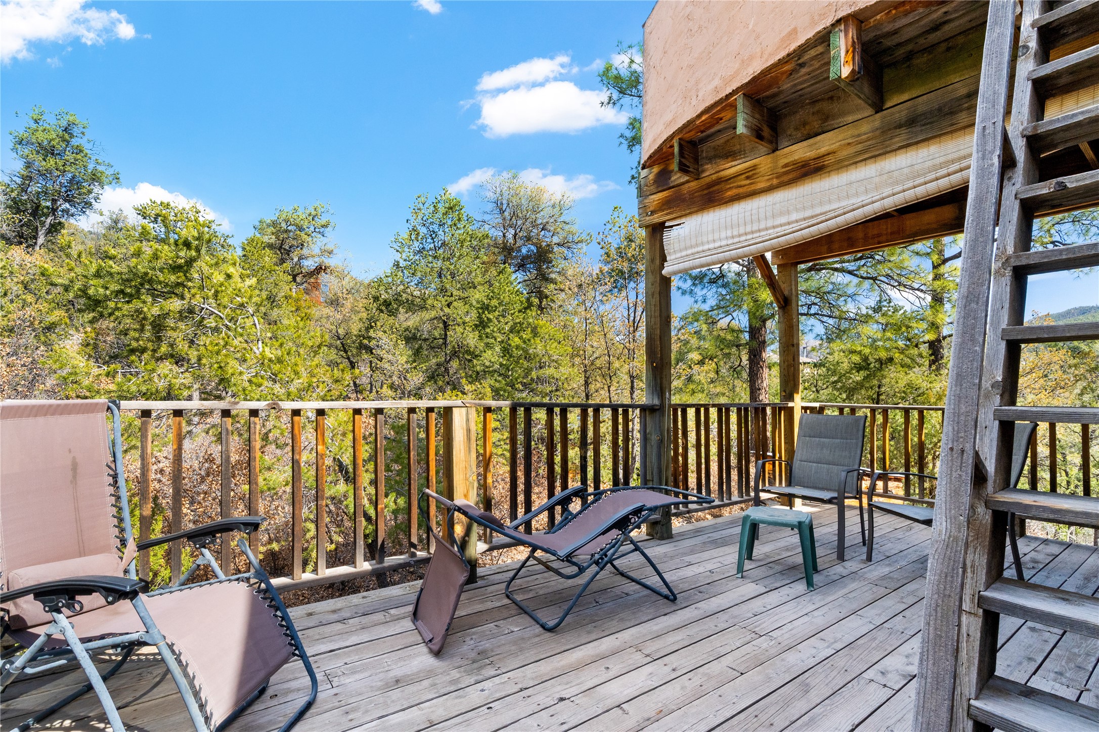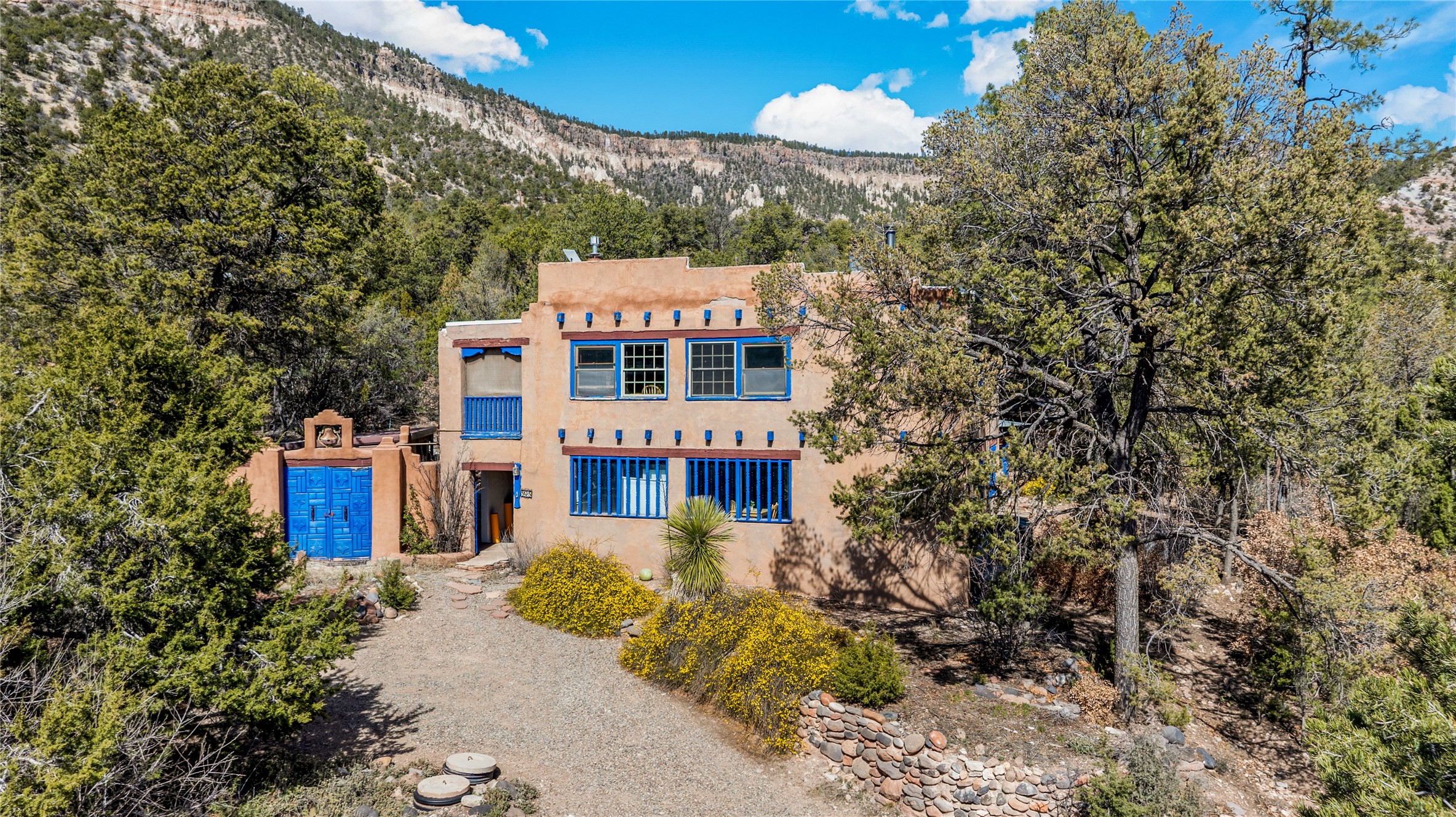 The Sweet Style of Santa Fe...in the Jemez! Just north of Jemez Springs and minutes from Soda Dam, this unique home blends Southwestern charm with proven income potential. Currently operating as a successful Airbnb, it offers a turn-key short-term rental opportunity in one of the most desirable areas of the Jemez. Upper and lower levels each feature their own living space with kitchen. Custom tile work, hand-carved wood doors, and warm Southwestern character throughout. Enjoy mountain views from the partially covered deck or shaded portal. Separate 370 sq ft studio, meditation space, and sand star-gazing platform. Recent upgrades include new propane heaters on both floors, new water heater, electrical grounding upgrades, and stucco repainting in 2025. Most furnishings convey.