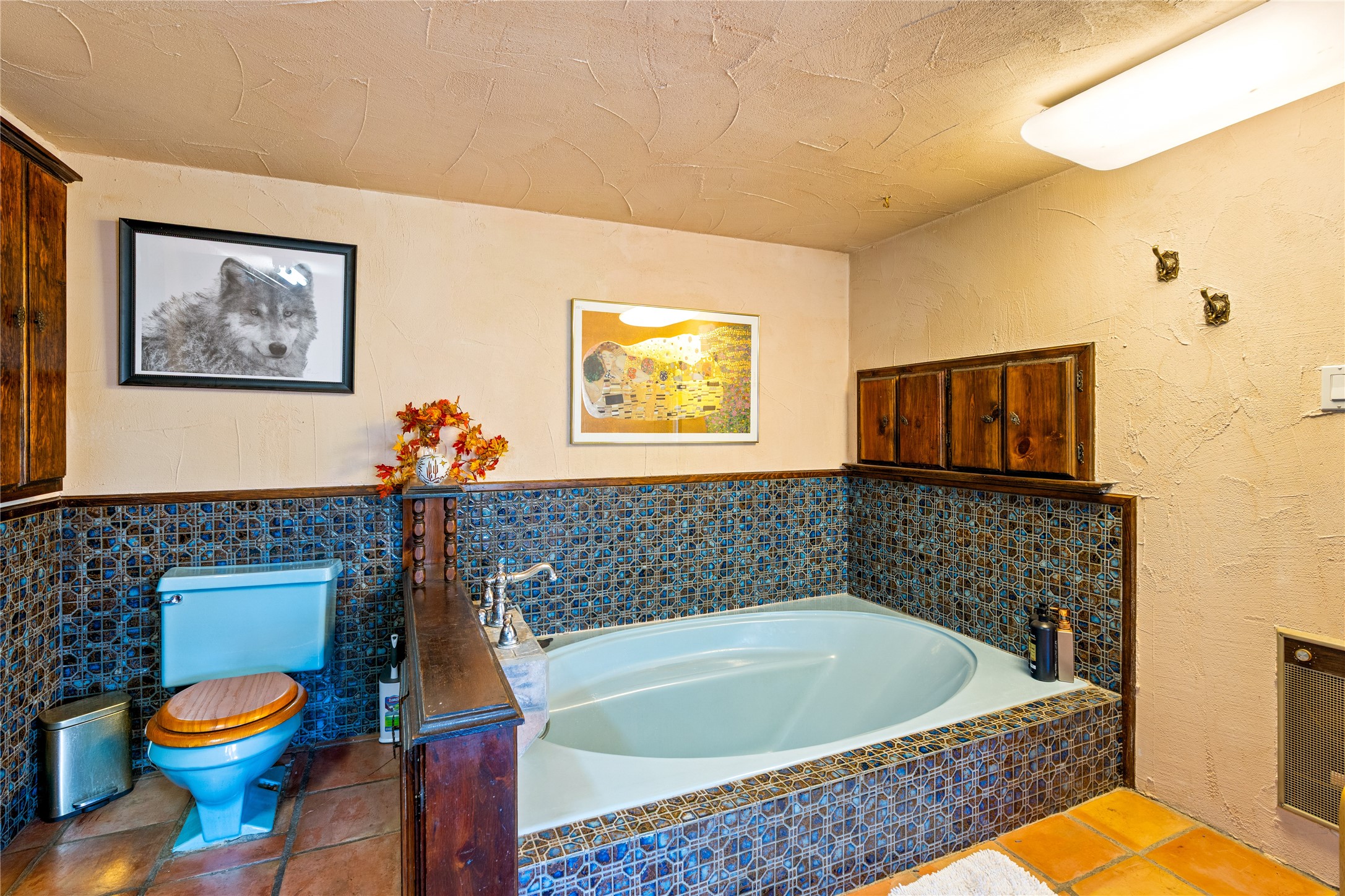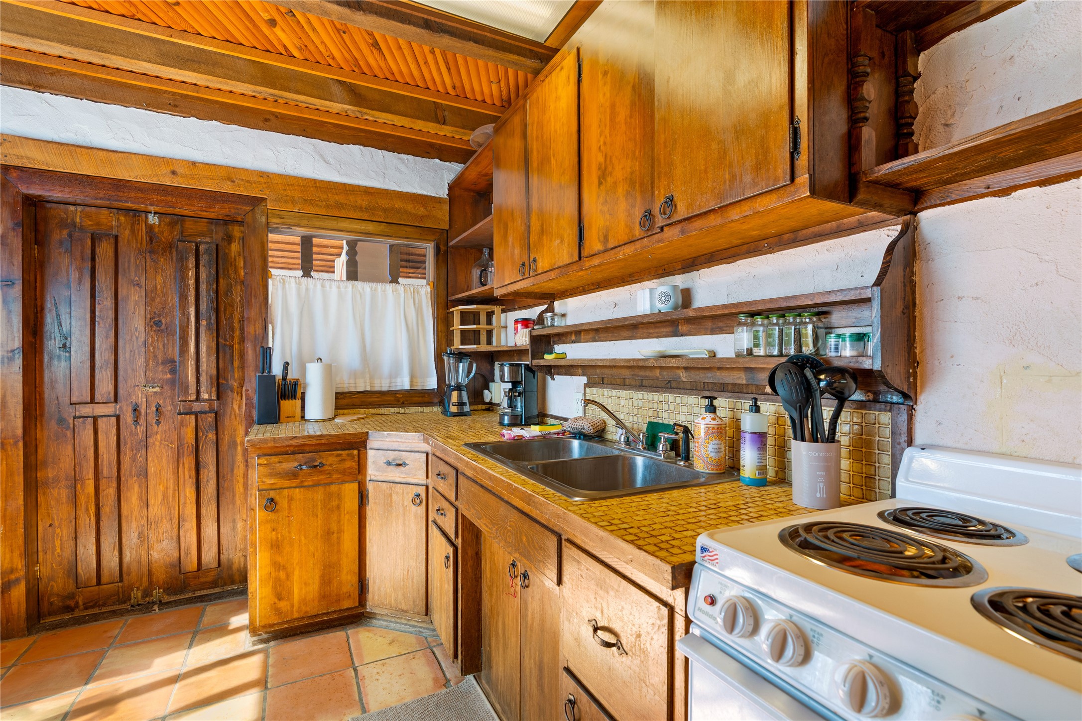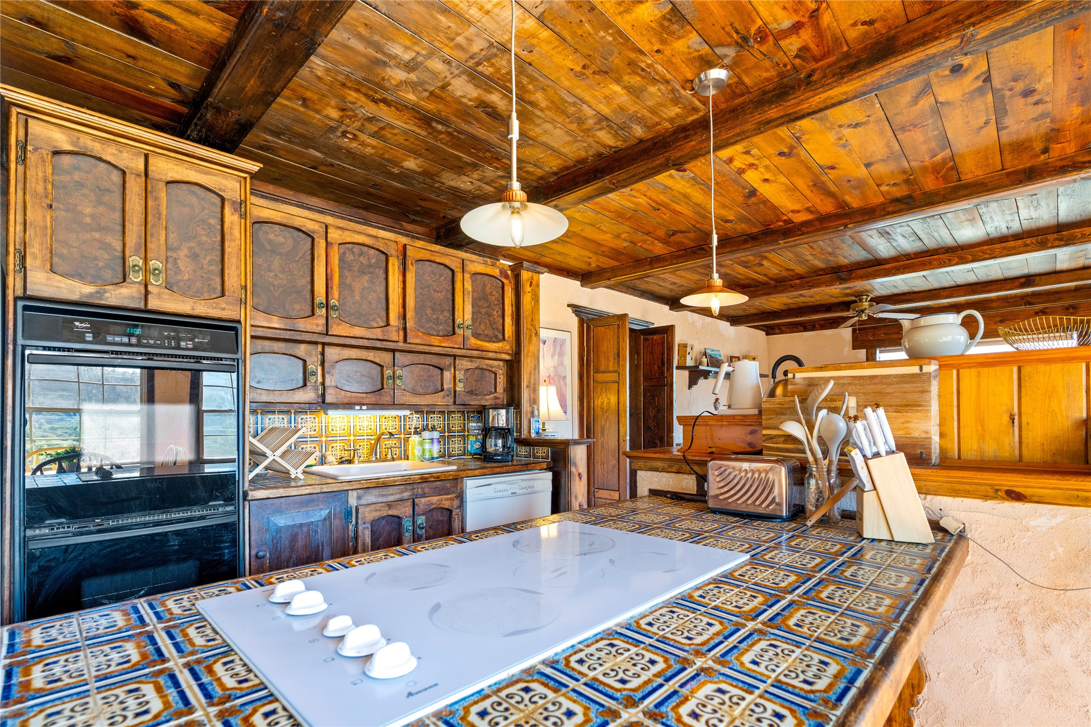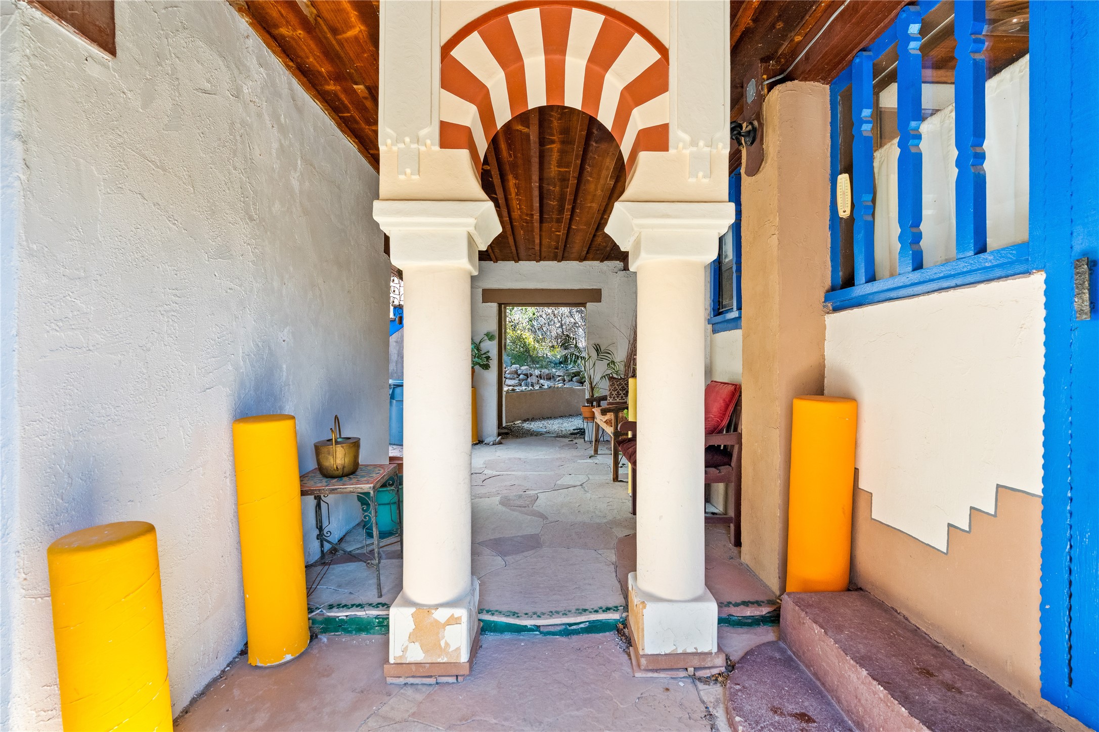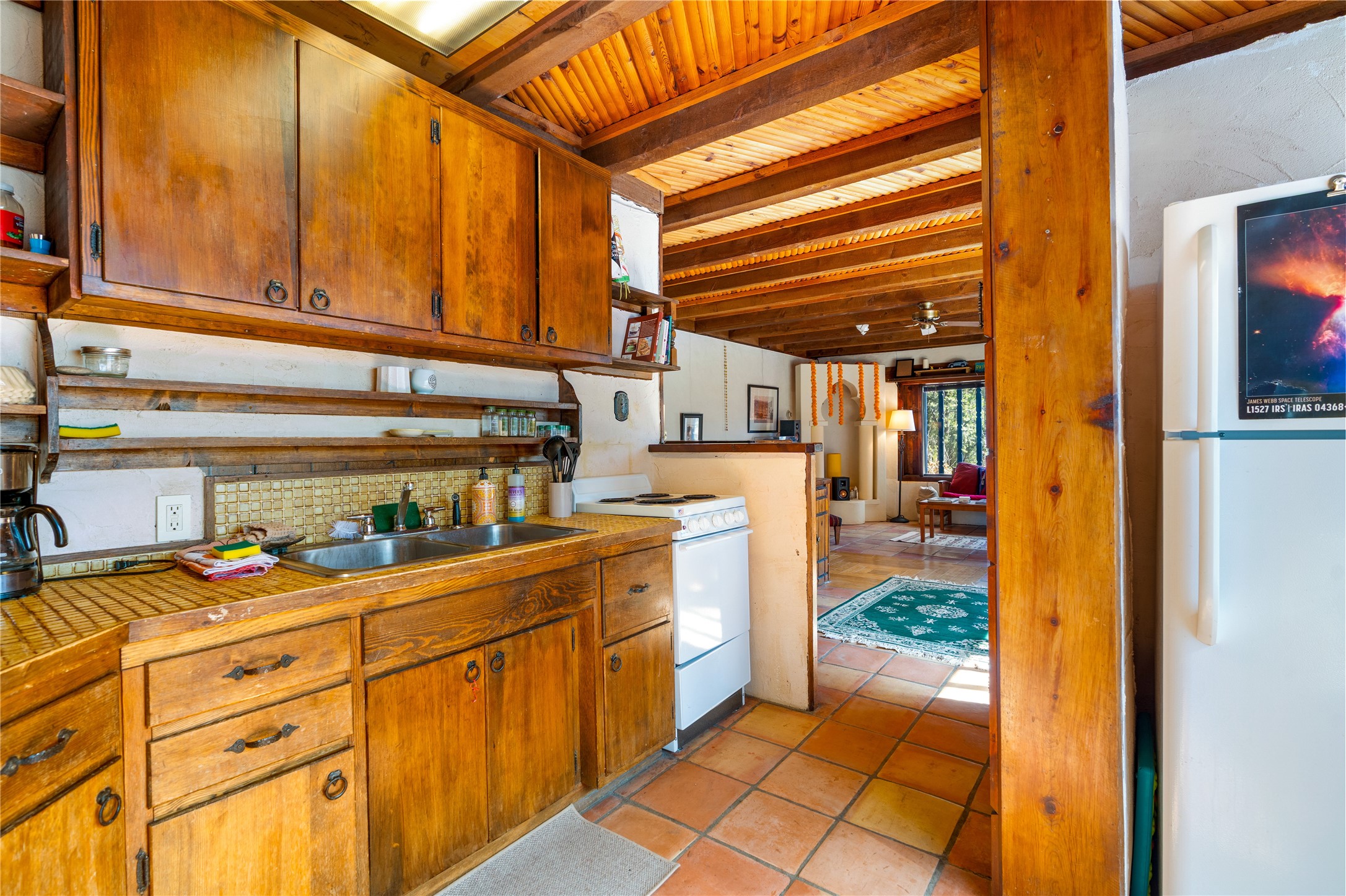 The Sweet Style of Santa Fe...in the Jemez! Just north of Jemez Springs and minutes from Soda Dam, this unique home blends Southwestern charm with proven income potential. Currently operating as a successful Airbnb, it offers a turn-key short-term rental opportunity in one of the most desirable areas of the Jemez. Upper and lower levels each feature their own living space with kitchen. Custom tile work, hand-carved wood doors, and warm Southwestern character throughout. Enjoy mountain views from the partially covered deck or shaded portal. Separate 370 sq ft studio, meditation space, and sand star-gazing platform. Recent upgrades include new propane heaters on both floors, new water heater, electrical grounding upgrades, and stucco repainting in 2025. Most furnishings convey.