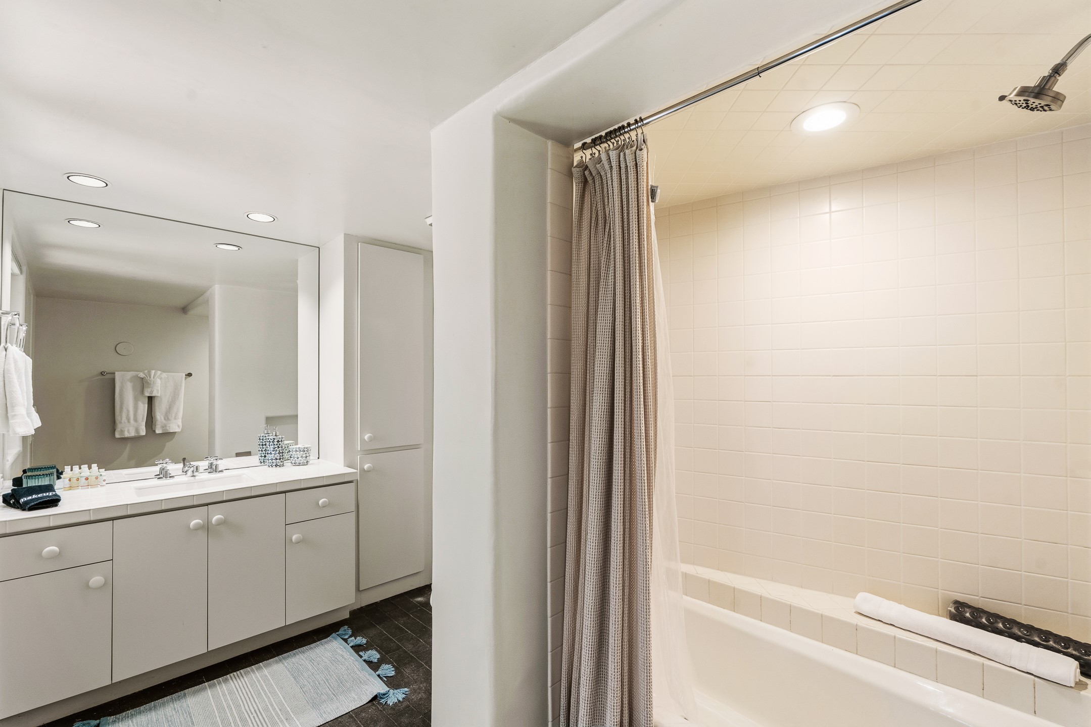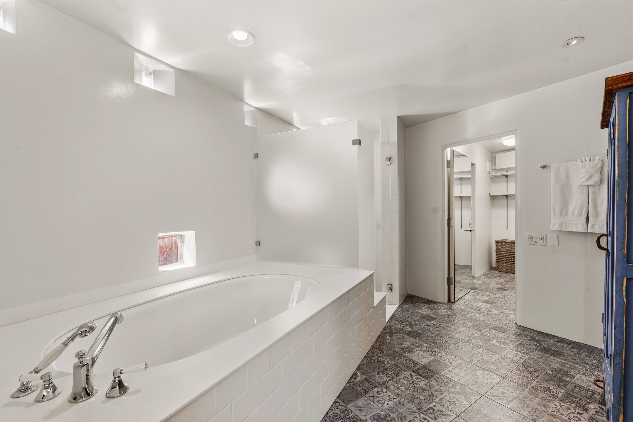 An exceptional offering on Santa Fe's coveted Eastside, moments from Canyon Road, this refined residence on Camino del Monte Sol embodies contemporary design and timeless Santa Fe style. Designed by the award-winning Texas based Lake Flato Architects, the home is a study in light, form, and seamless indoor-outdoor living. The interiors unfold with effortless elegance, with soaring wood-beamed ceilings, a striking modern fireplace, and an artful circular den anchored by a built-in banco beneath a dramatic skylight that draws the sky inward. Expansive glass doors bathe the open living space in natural light, framing tranquil views of the surrounding landscape. The thoughtfully designed kitchen is both light-filled and inviting, with generous windows that connect you to the serenity of the outdoors. Three well-appointed bedrooms and two and a half baths offer comfort and privacy, including a serene primary suite with a spa-inspired bath, soaking tub, and oversized shower. Outdoors, a private sanctuary awaits with lush mature juniper and pion, a gently cascading fountain over river rock, and a peaceful pond that invites quiet reflection. A rooftop terrace, complete with a traditional kiva fireplace, captures sweeping views of the Sangre de Cristo Mountains and the surrounding historic neighborhood. Currently operating as a successful short-term rental, this extraordinary property presents a rare opportunity to own an artful retreat in one of Santa Fe's most treasured locations.
