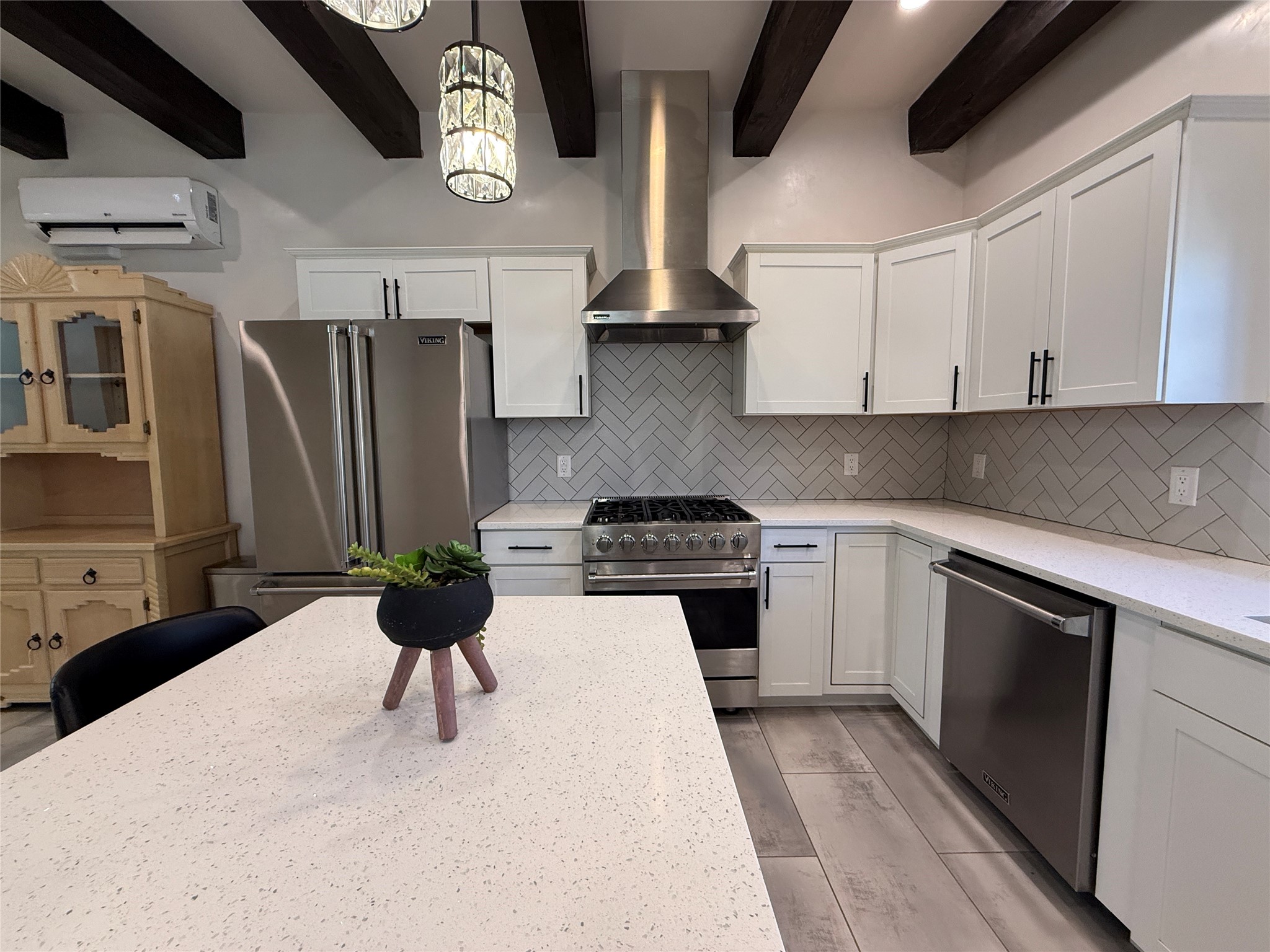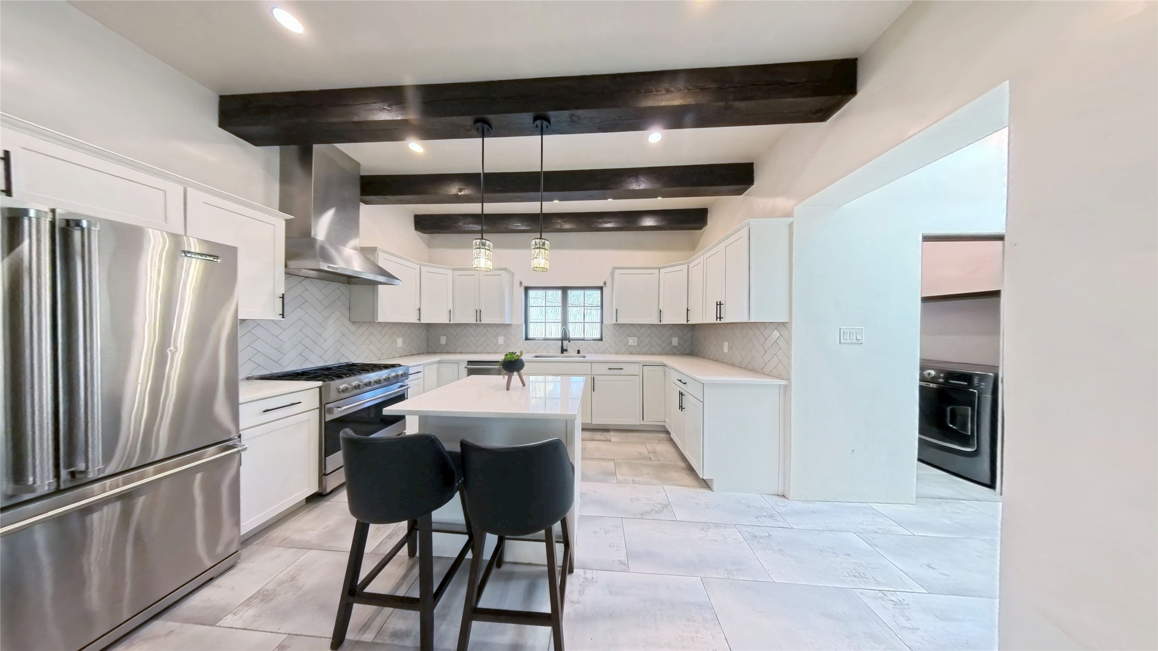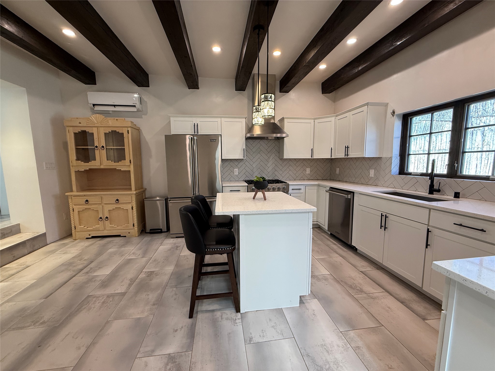 Located in the highly desirable Hillside area on Santa Fe's coveted Eastside, this beautifully renovated adobe home blends classic Santa Fe charm with modern comfort just minutes from downtown. Completely gutted and thoughtfully remodeled, the home showcases authentic Southwestern character with hard-troweled plaster walls, vigas, wood and tile floors, and abundant natural light throughout.The stunning kitchen features Viking appliances, while the beautifully designed bathrooms highlight impeccable finishes and craftsmanship. Skylights bring in natural light and enhance the fresh, updated feel of the home. Ductless mini-split systems provide efficient heating and cooling for year-round comfort.Situated on a large lot in an exceptional neighborhood, the property offers wonderful outdoor space with tasteful landscaping and classic stucco finishes that complement the timeless adobe architecture. Best of all, there is no HOA, giving you flexibility and freedom in one of Santa Fe's most sought-after locations.With its prime Eastside setting, beautiful renovations, and authentic Santa Fe details, this property offers endless possibilities in the heart of town.