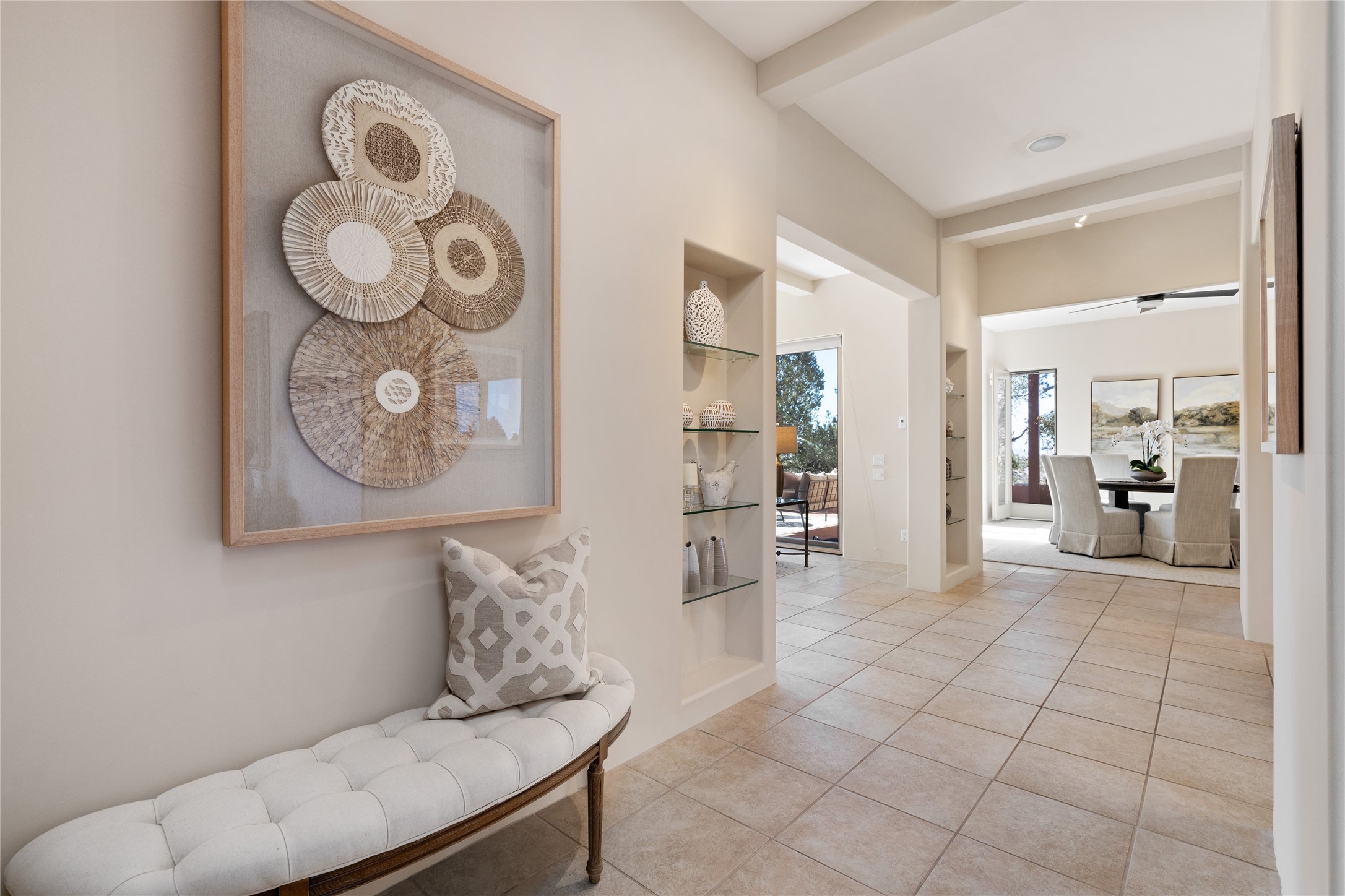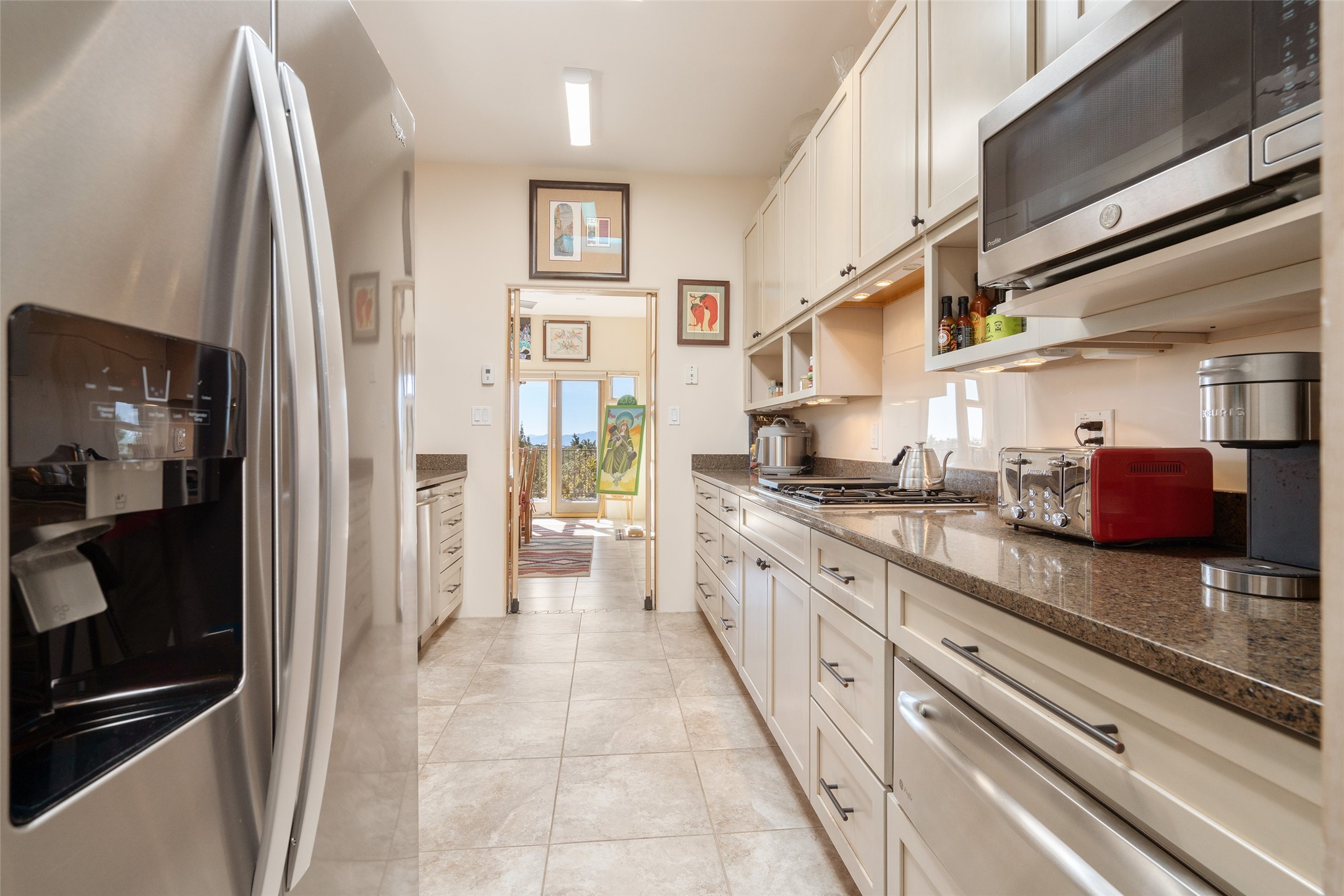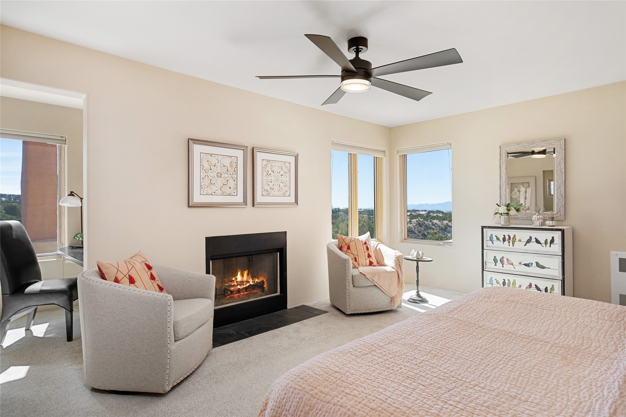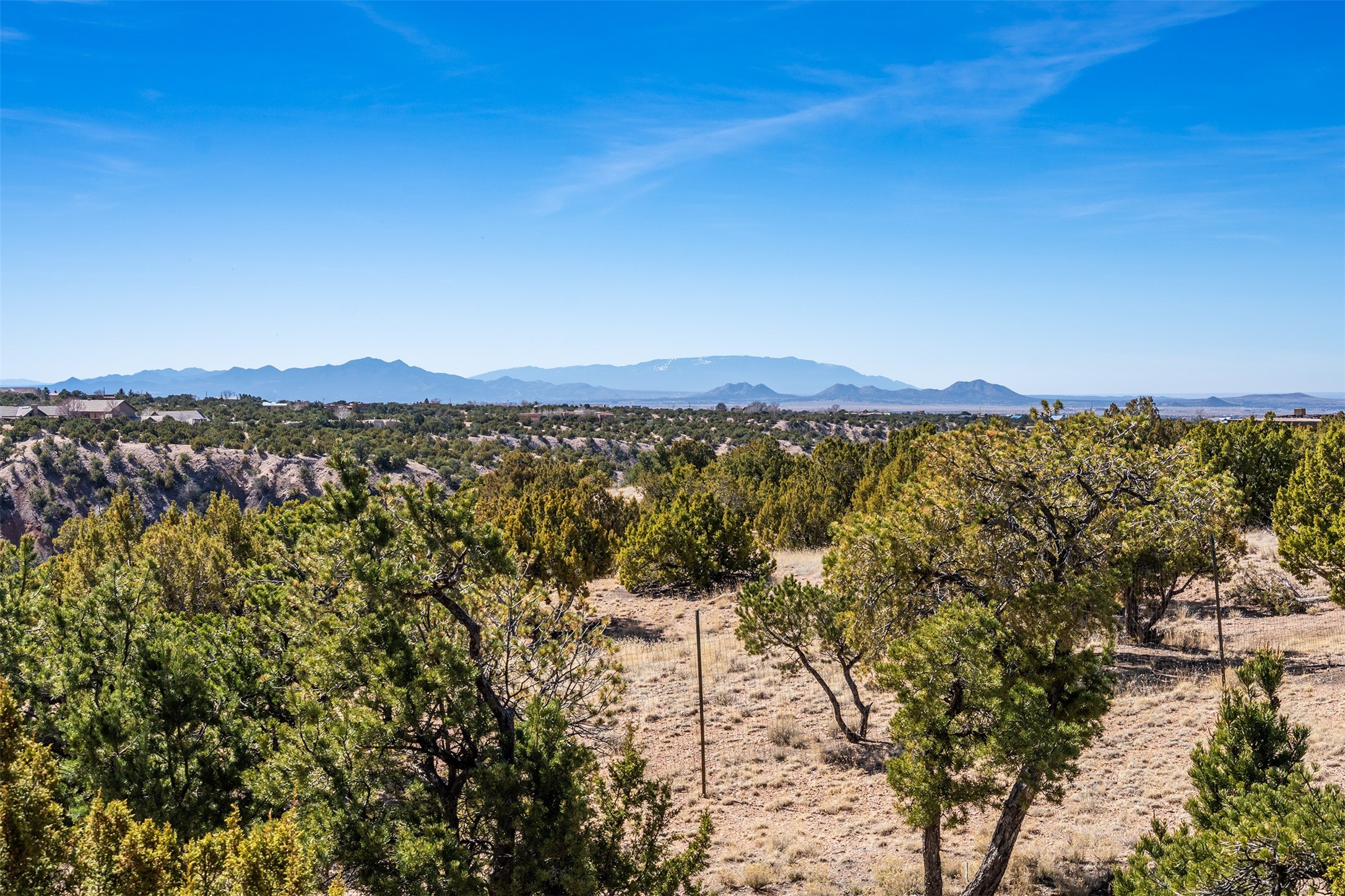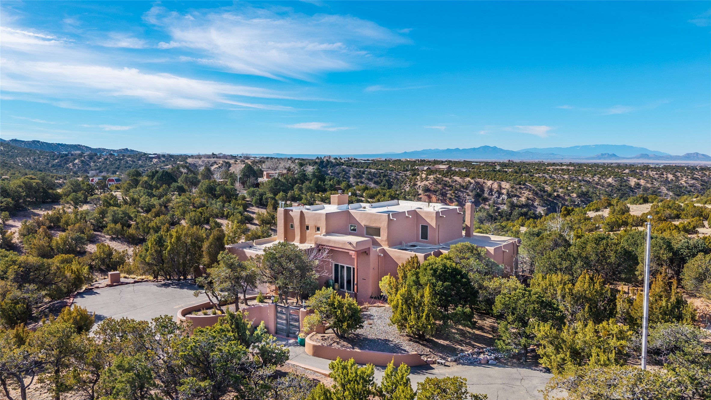 Santa Fe Compound Minutes From Plaza. This gated 8+ acre Santa Fe estate with two homes and sweeping southern views is tucked away along Old Agua Fria Road at the end of Old Pecos Trail and offers privacy and exceptional convenience. Located less than 5 miles from the Historic Santa Fe Plaza and moments from the I-25 Old Pecos Trail exit, this gated property feels peaceful and secluded while remaining incredibly accessible. The estate includes two residences with separate addresses, creating an ideal setup for multi-generational living, guests, rental potential, or a private retreat. Expansive views, big skies, and multiple outdoor living areas provide the perfect setting for entertaining or enjoying a beautiful sunset. The main residence (approx. 3,300 sq ft) features 3 bedrooms and 3.5 baths, with ensuite baths in every bedroom. The thoughtful layout includes a spacious main-level bedroom suite and two additional bedrooms upstairs, providing flexibility and privacy. The separate casita (approx. 1,200 sq ft) offers 2 bedrooms and 1.5 baths and opens to a large south-facing deck with panoramic views--an ideal space for gatherings, sunset dinners or relaxing under star-filled skies. Arroyo Hondo open space and archaeological easements run through the back of the property, which help to preserve the natural landscape, history of the area, and sight-lines. Recent improvements include new roofs with transferable warranties, a new boiler, and updated & repainted stucco. Experience the privacy, views, and convenience of this distinctive Santa Fe compound. Be sure to watch the drone video over the arroyo and property here https://youtu.be/qAOJMNmIgfY