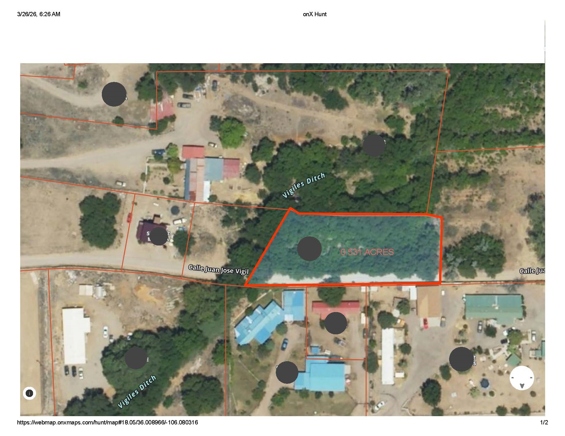 Available for purchase is a rare parcel (0.531 acres) located within the Espanola city limits. The west boundary of this property meanders along the "Vigiles ditch." The area below the acequia is flat and was formerly a garden, a use it could easily be restored to.