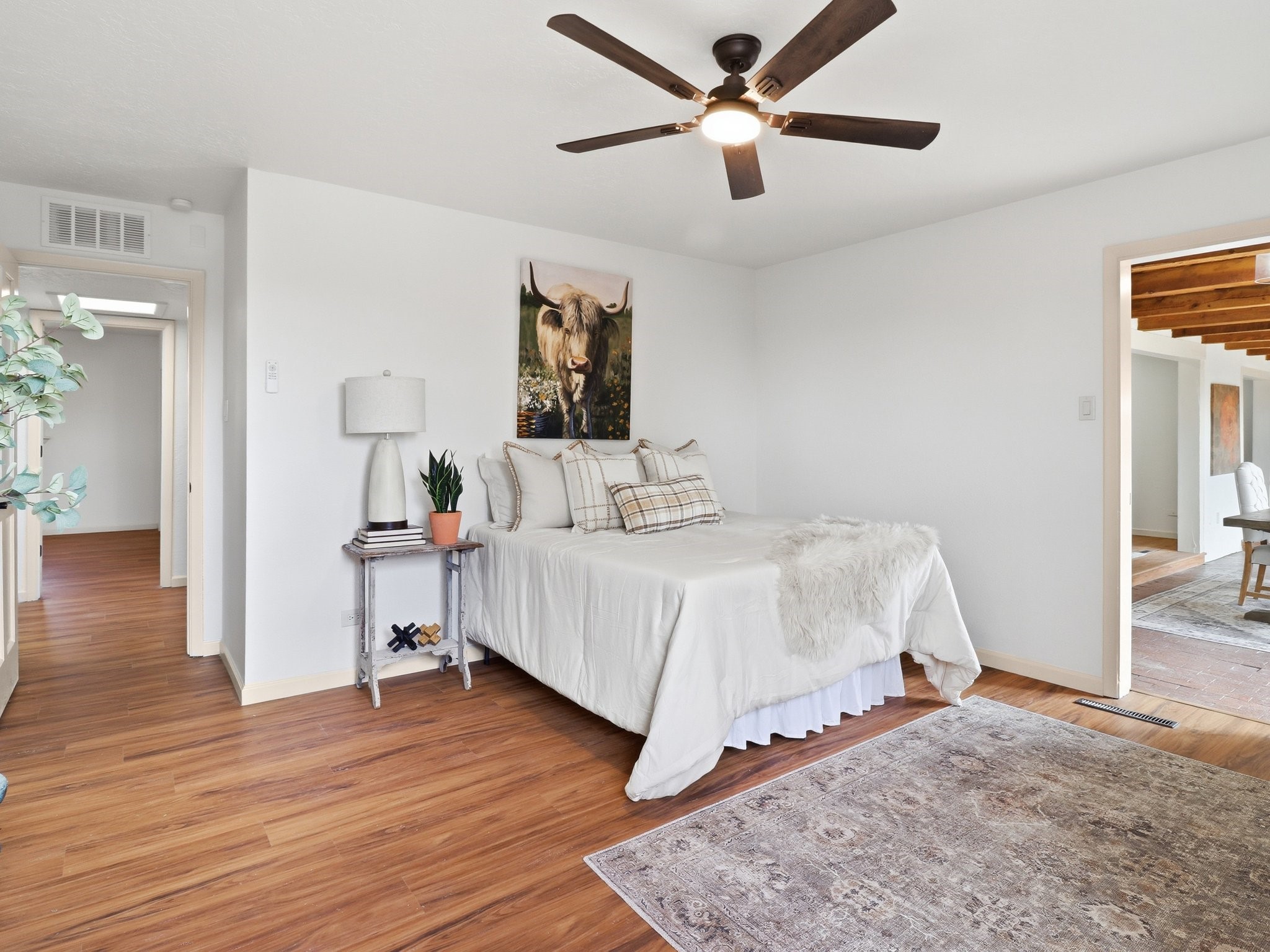 Welcome to your beautiful home in Santa Fe! 2575 Calle Delfino is an elegantly updated Santa Fe residence where comfort, function, and multigenerational living come together seamlessly. Built in 1978 and thoughtfully modernized, this 2,332 sq ft home sits on a beautifully manicured .29-acre lot framed by mature landscaping and stately pine trees that create an inviting sense of privacy from the moment you arrive. Inside, the home has been refreshed with brand-new appliances and tasteful updates throughout, offering a warm, contemporary atmosphere. The flexible floor plan includes 3 bedrooms plus a potential 4th bedroom or fully private in-law suite, giving families, guests, or extended living arrangements the space they need. With 2 three-quarter baths, generous natural light, and multiple living areas, the home balances character and livability with ease. The oversized 2-car garage provides abundant storage, while the additional crawl space expands the home's functionality even further. Outdoors, the expansive backyard offers room to relax, entertain, or garden, an ideal extension of Santa Fe's coveted indoor-outdoor lifestyle. Perfectly positioned near the heart of the city yet tucked into a quiet and established neighborhood, this property delivers an exceptional blend of convenience, comfort, and possibility. Fully updated, move-in ready, and rich with potential, this is a rare offering in one of Santa Fe's most desirable areas.