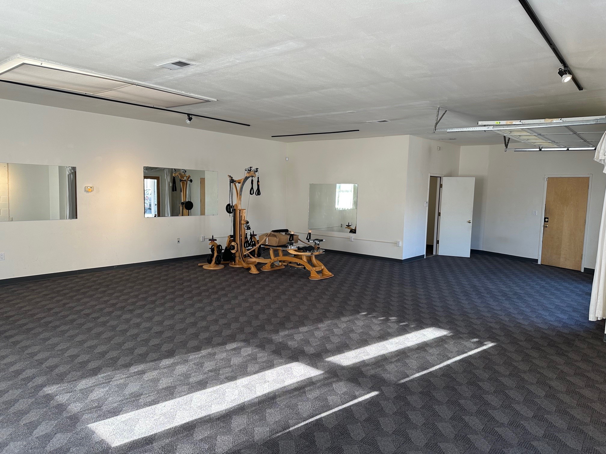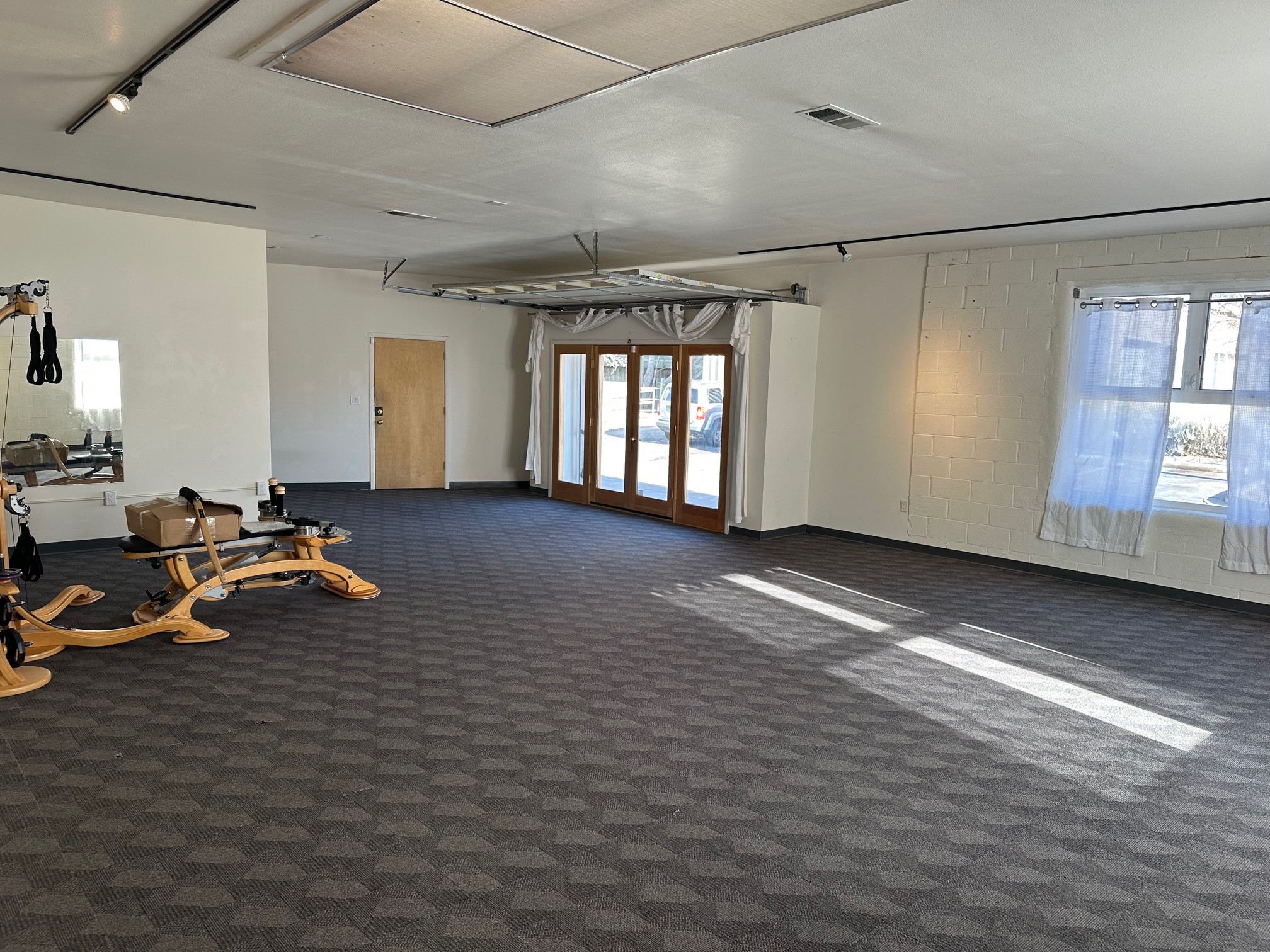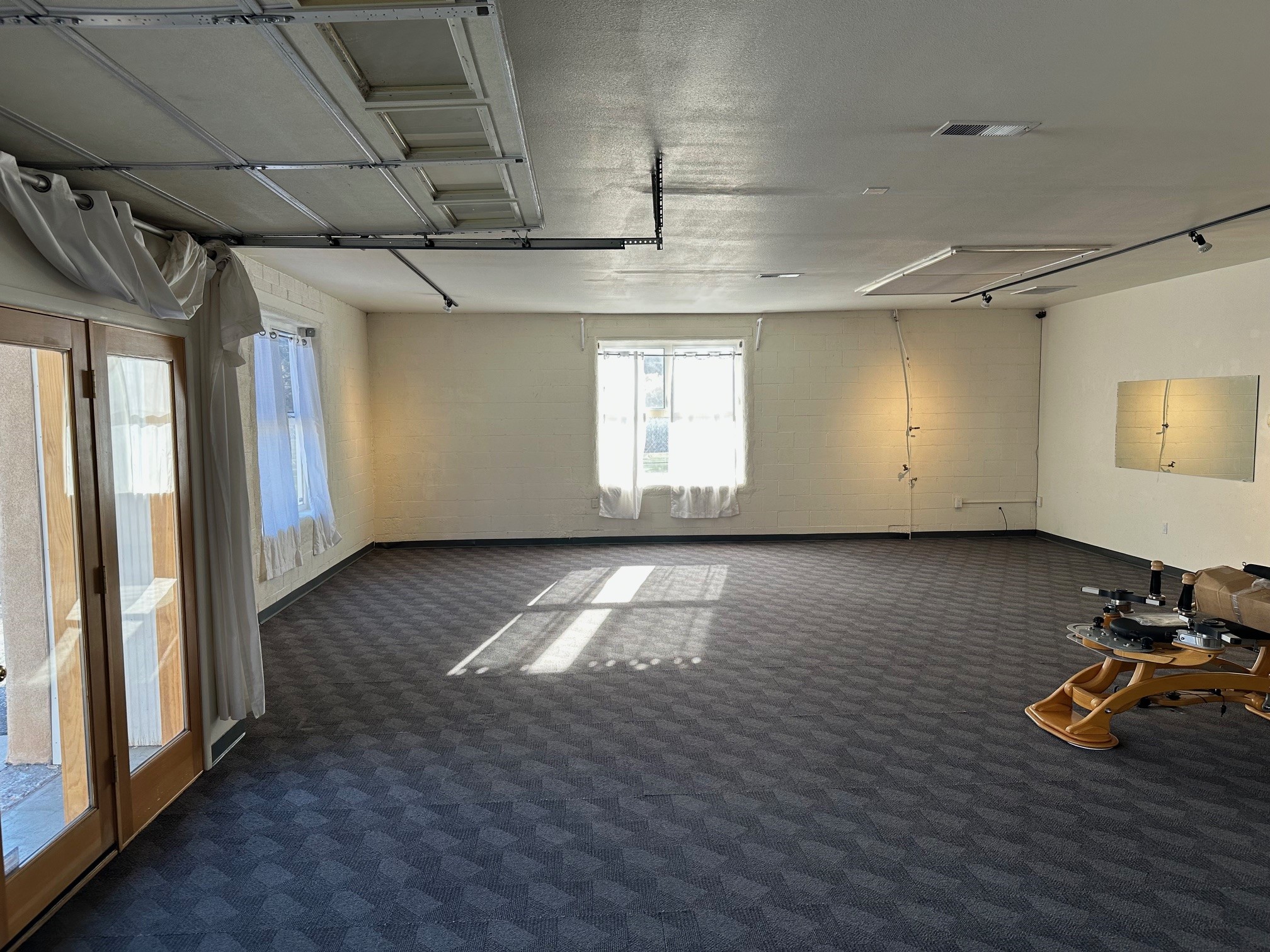 Second Street Studios is a pioneering live/work studio compound in Santa Fe designed primarily for artists, makers, and small businesses who want to live and work in the same space. It is widely considered Santa Fe's original purpose-built live/work artist community, first developed around 1990. The compound is arranged as a cluster of studio buildings around landscaped courtyards, creating a small creative campus atmosphere. Tenants historically include a mix of artists, artisans, entrepreneurs, and small businesses, creating a diverse creative ecosystem.Suite 103A is a large open space with one office / storage room. The roll-up garage door at the entry affords added security as well as accessibility for larger work. The interior is bathed in natural light from the large windows.